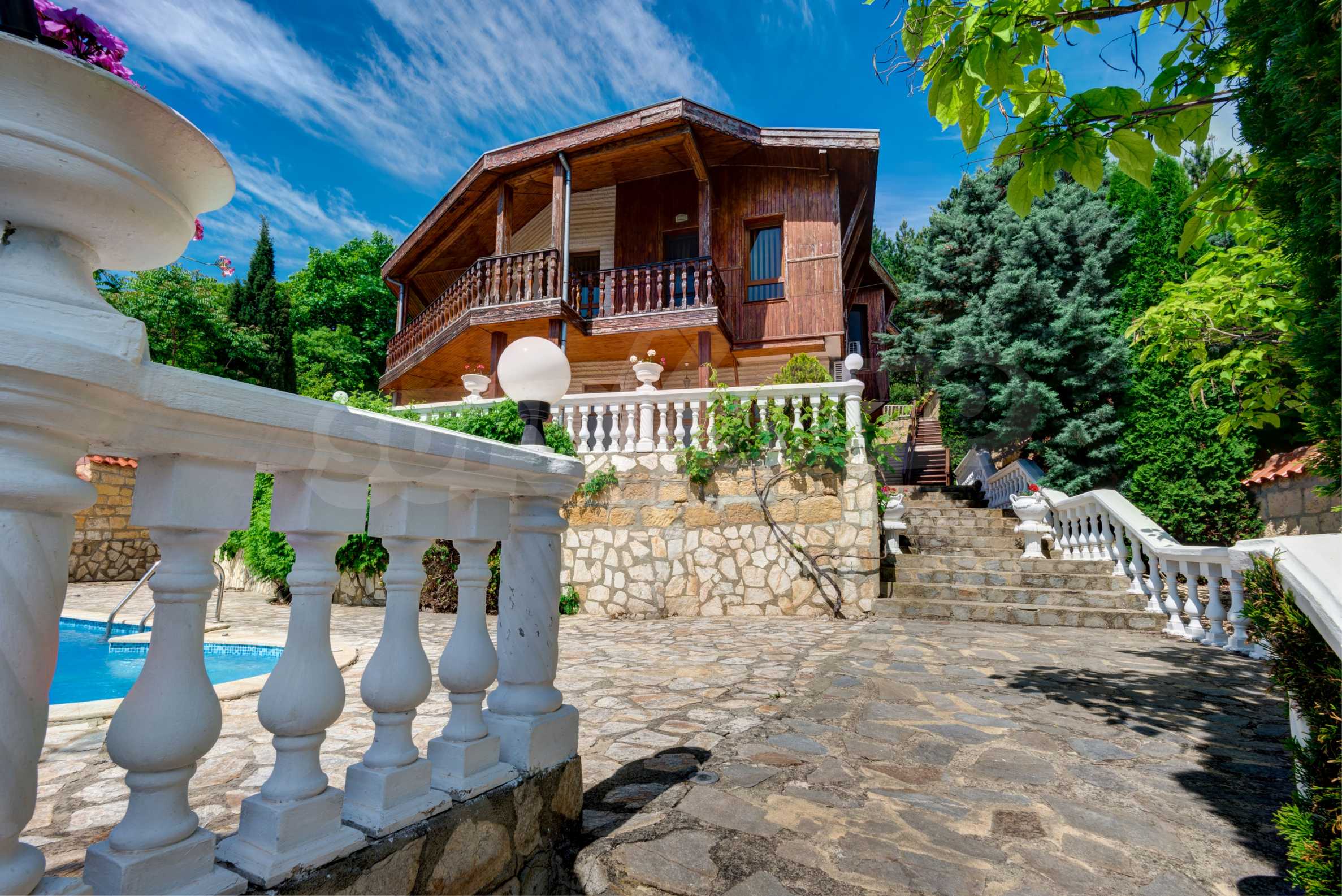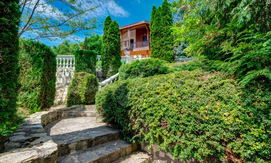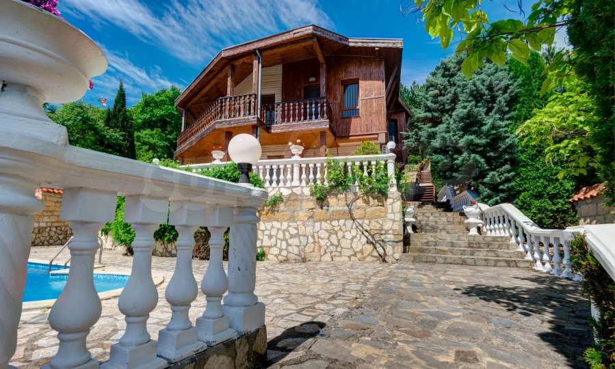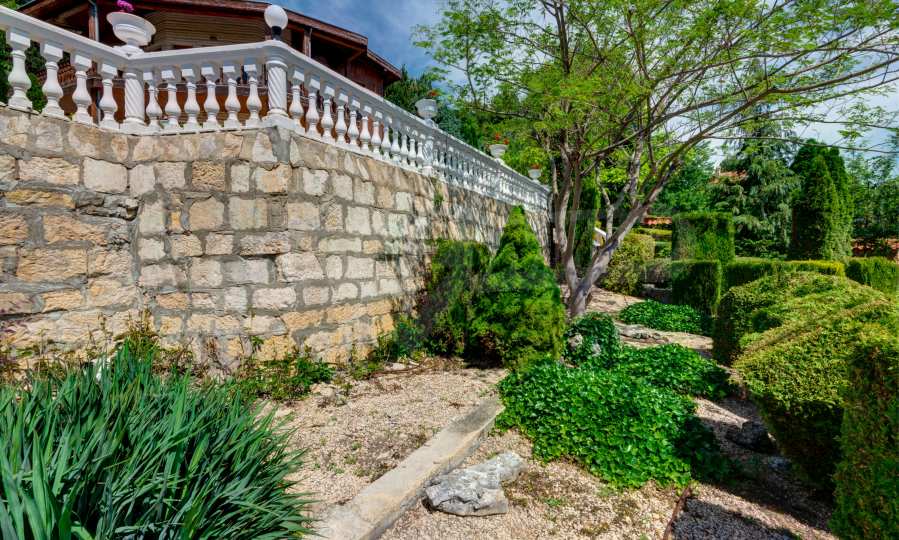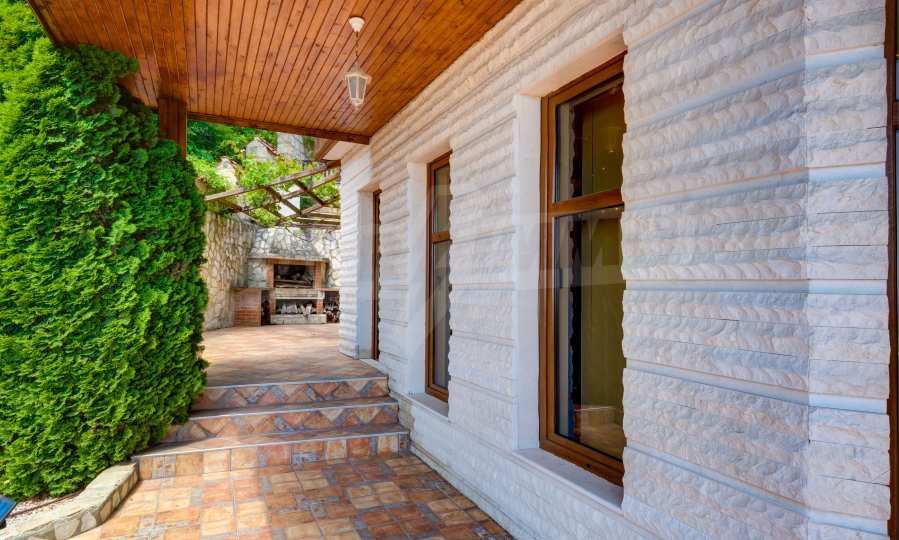 Das Streben nach natürlichen Materialien wie Holz und Stein, ein Wahrzeichen für die Aussicht und gleichzeitig mit einem klassischen Look, das ist der erste Eindruck dieses Panoramahauses. Erbaut mit Zugang zur schönen Treppe mit weißen Balustraden im Außenbereich und mit beeindruckendem Blick auf die gesamte Meeresbucht und den Wald, bietet dieses Anwesen Komfort und Wärme, Harmonie mit der Natur und wunderbare Annehmlichkeiten für modernes Wohnen.