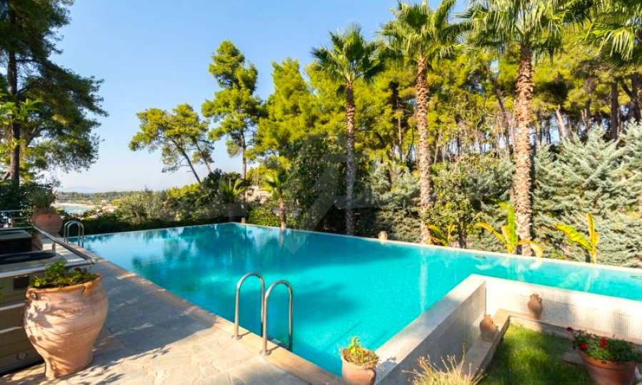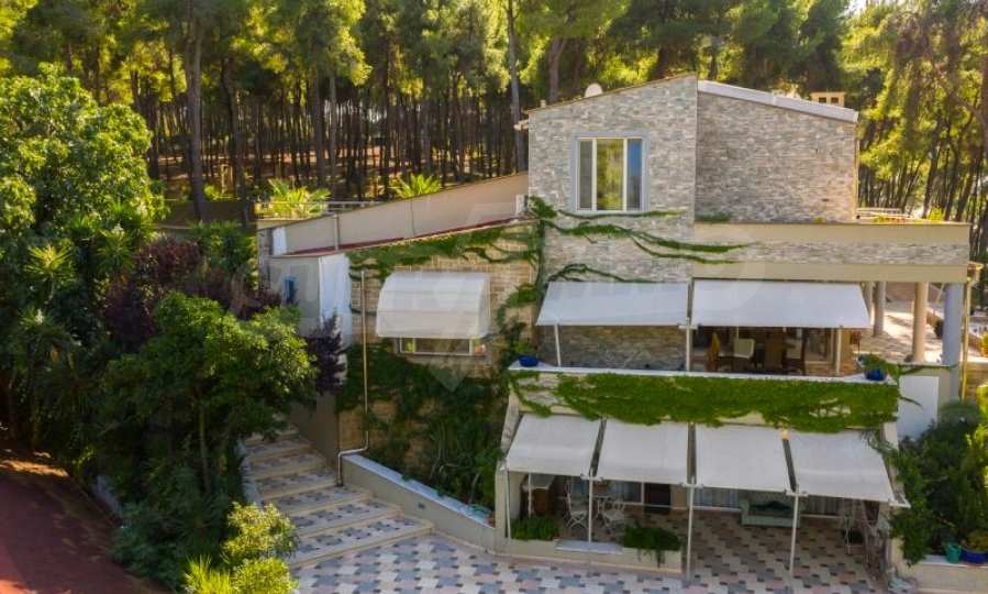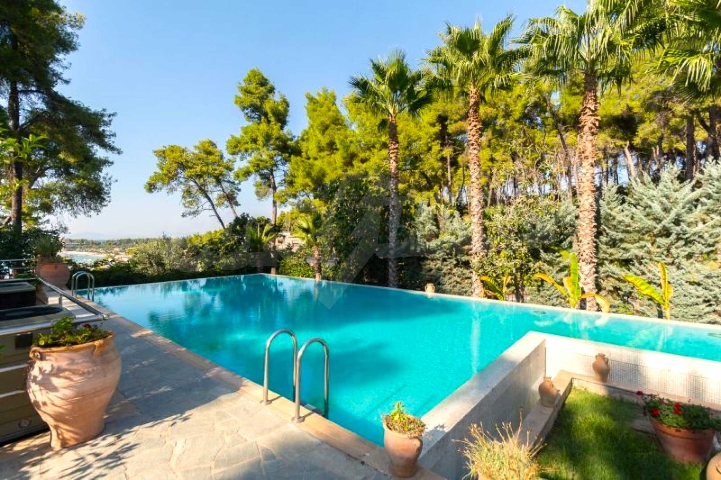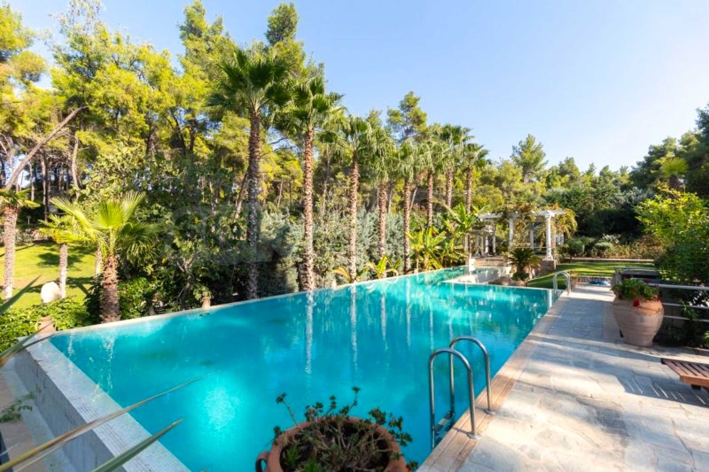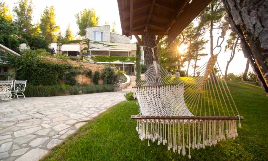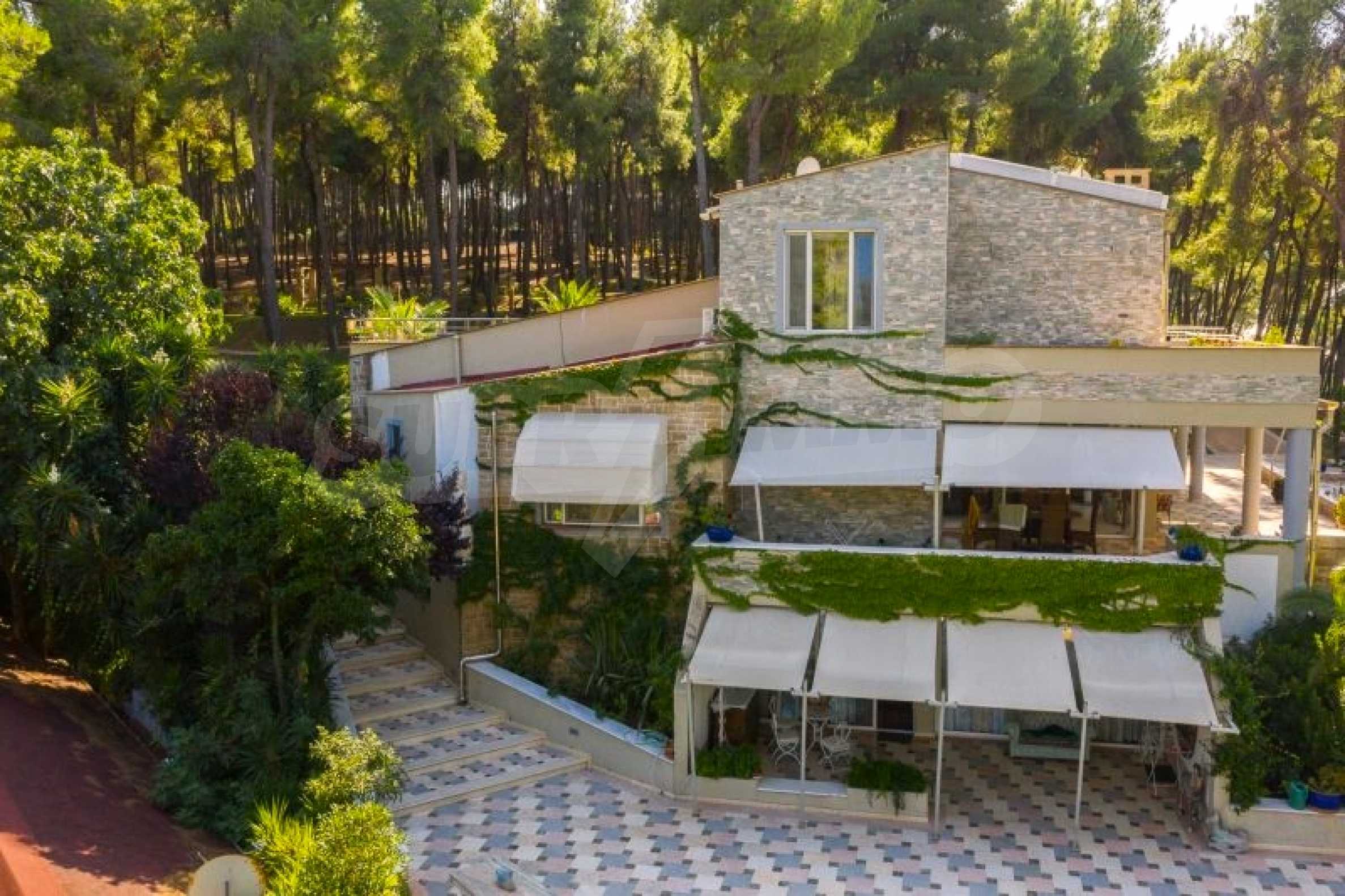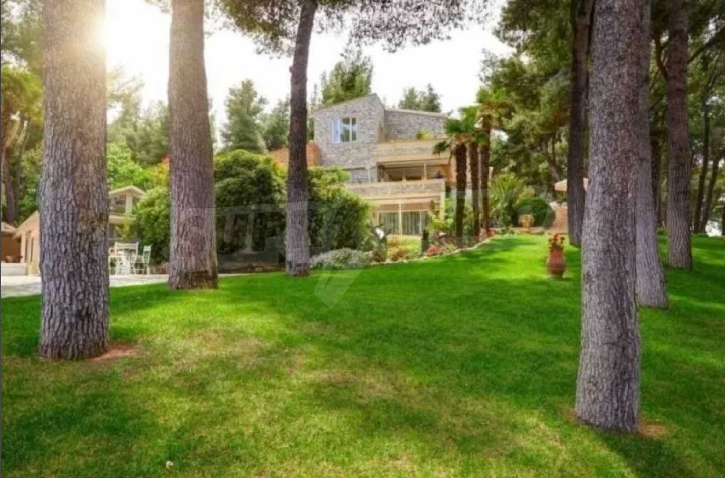 Die Residenz besteht aus insgesamt 1000 Quadratmetern Wohnfläche, Hauptvilla und zusätzlichen Gästegebäuden sowie Hilfspersonal und befindet sich in einem 18 Hektar großen, perfekt gepflegten privaten Waldpark. Die Residenz ist etwa 200 Meter von den Stränden des \"Sani Resort\" und allen Annehmlichkeiten des Komplexes entfernt und genießt viele Privilegien, die das \"Sani Resort\" bietet.
