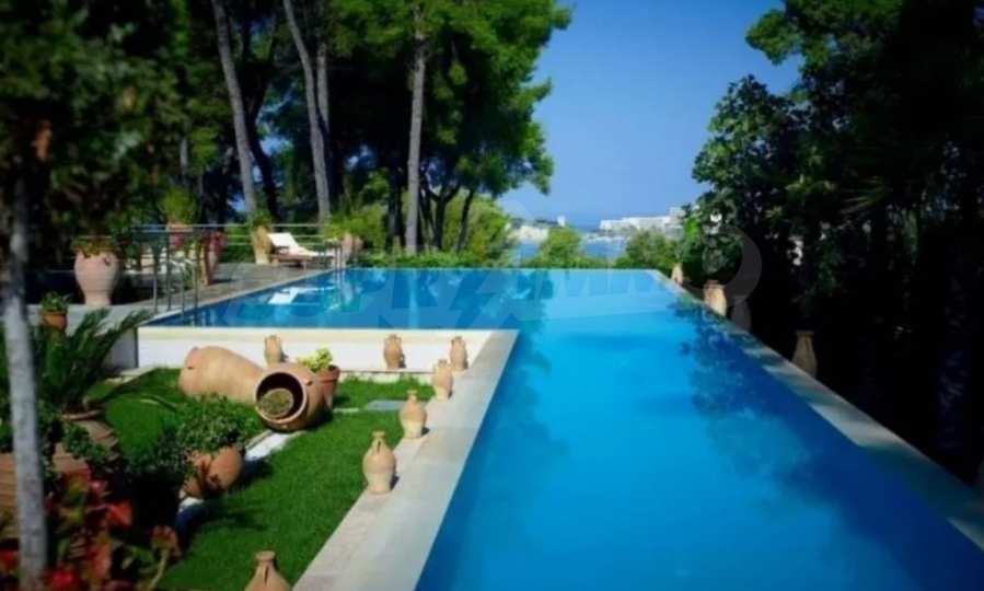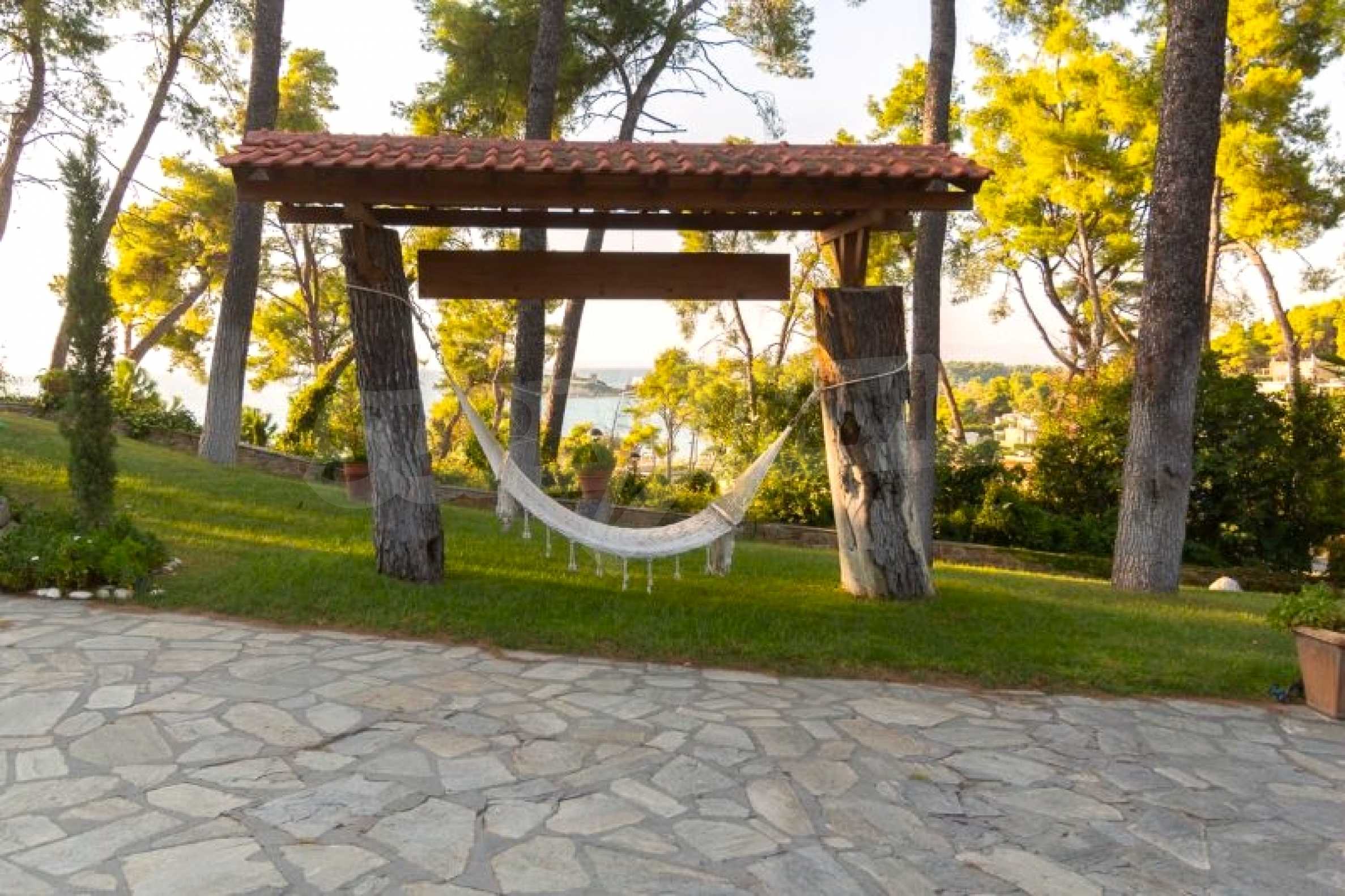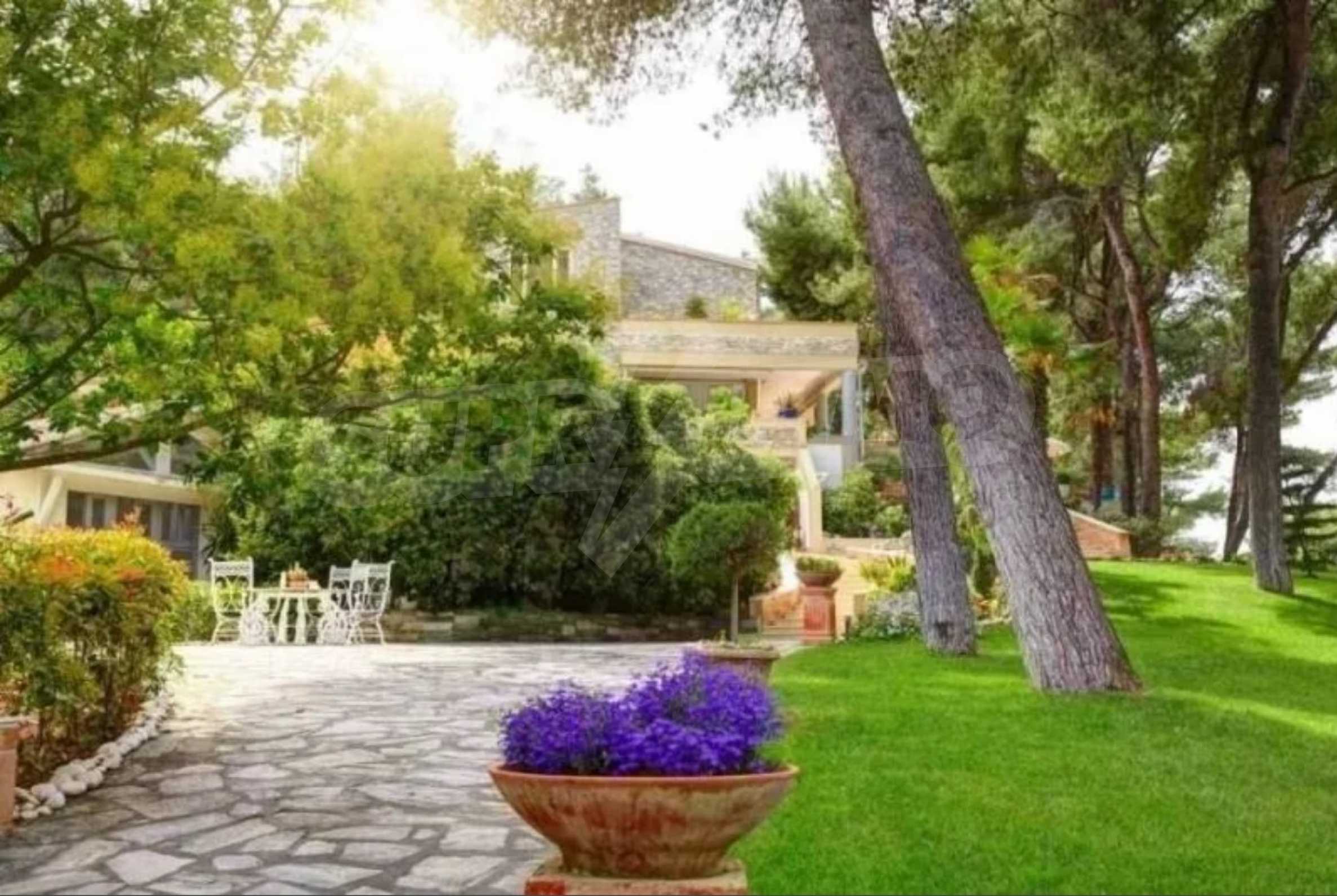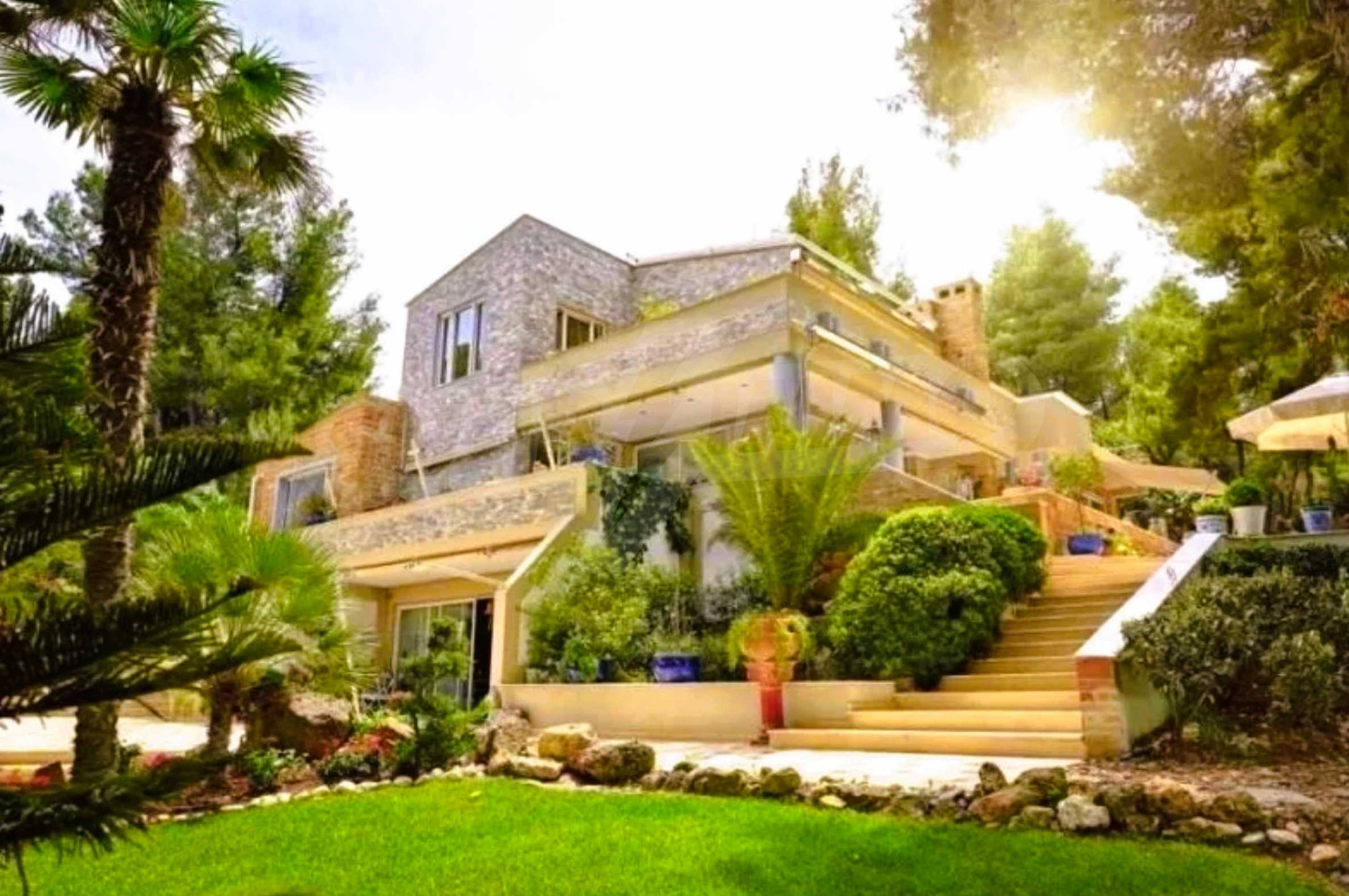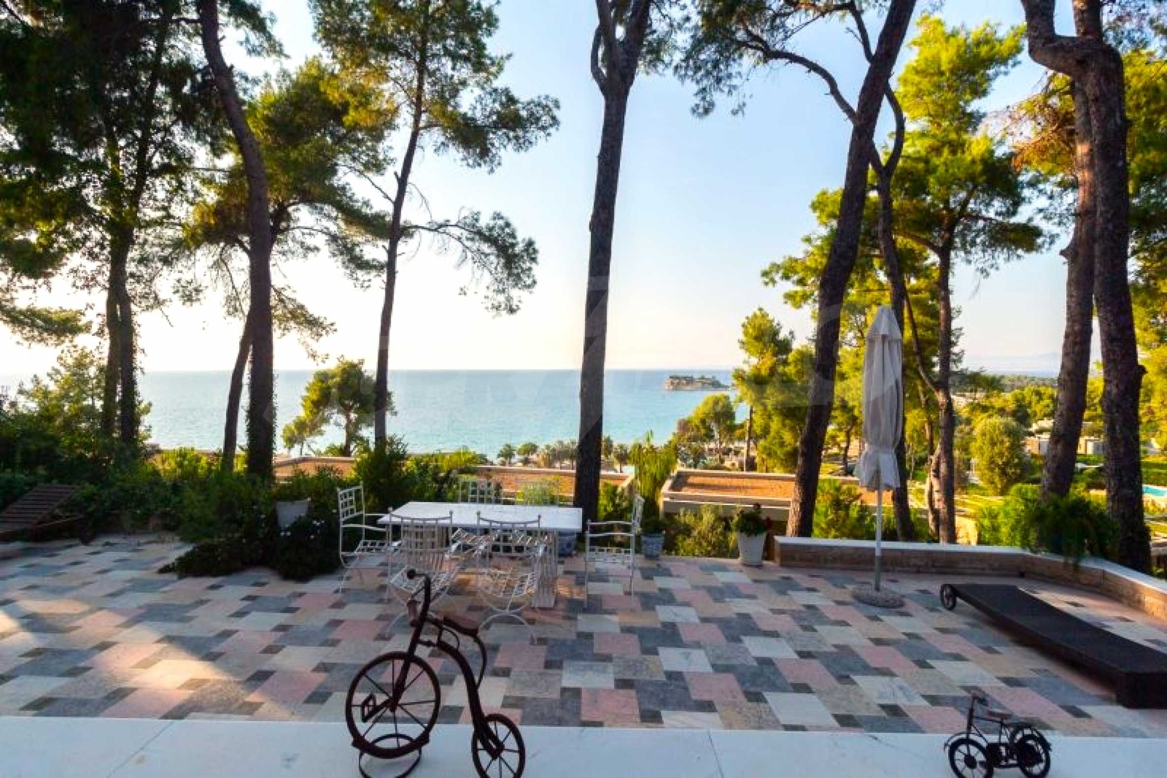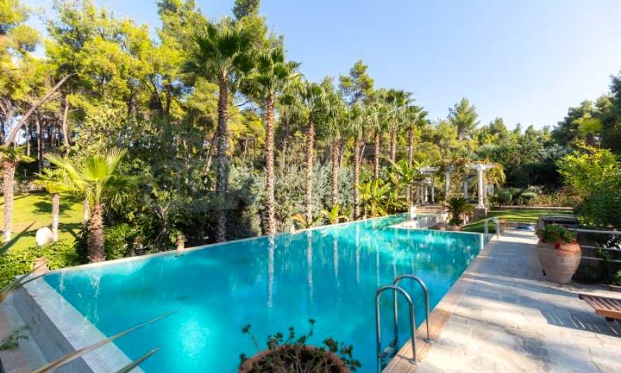 Die Residenz besteht aus insgesamt 1000 Quadratmetern Wohnfläche, Hauptvilla und zusätzlichen Gästegebäuden sowie Hilfspersonal und befindet sich in einem 18 Hektar großen, perfekt gepflegten privaten Waldpark. Die Residenz ist etwa 200 Meter von den Stränden des \"Sani Resort\" und allen Annehmlichkeiten des Komplexes entfernt und genießt viele Privilegien, die das \"Sani Resort\" bietet.