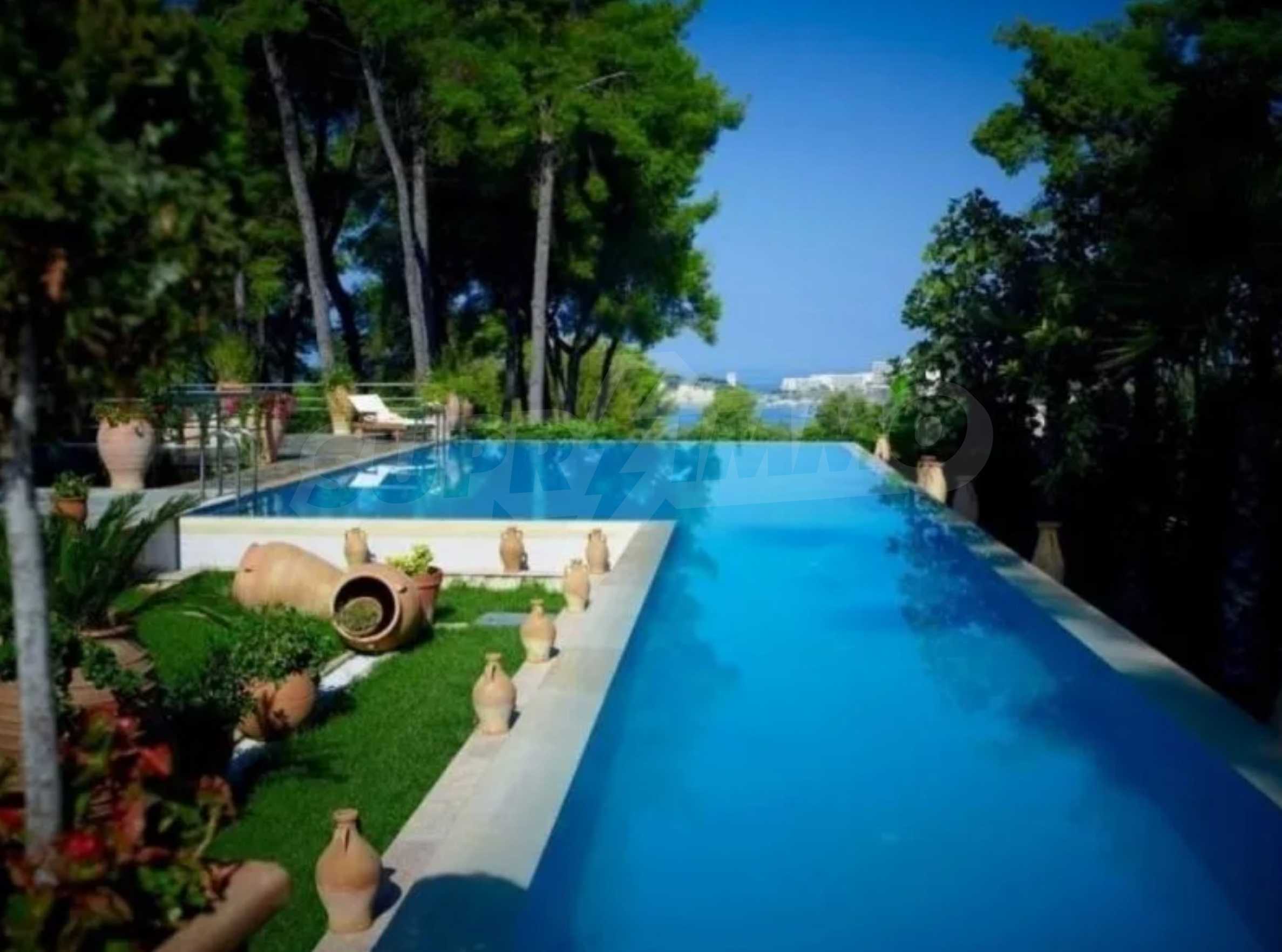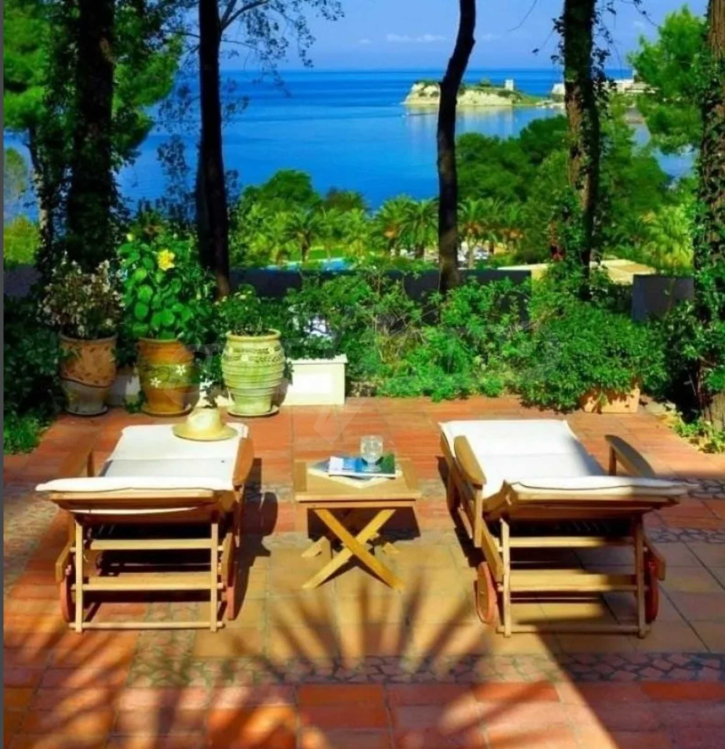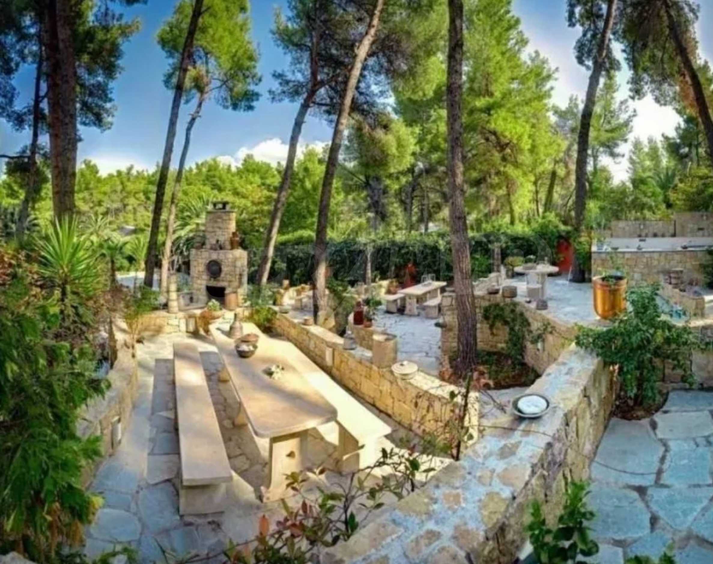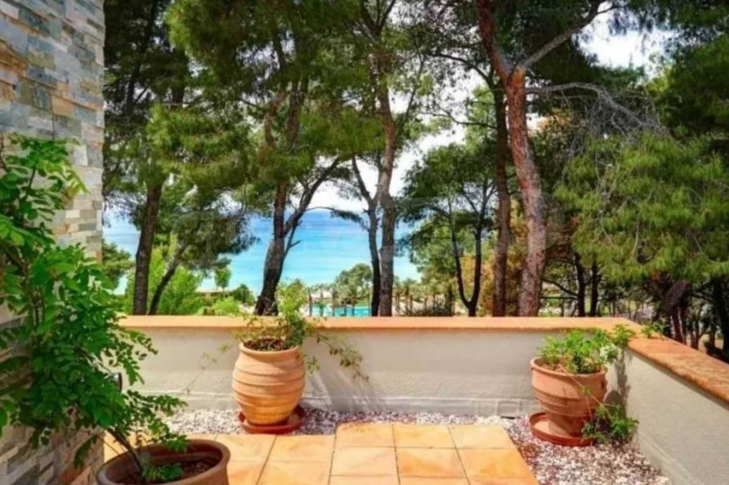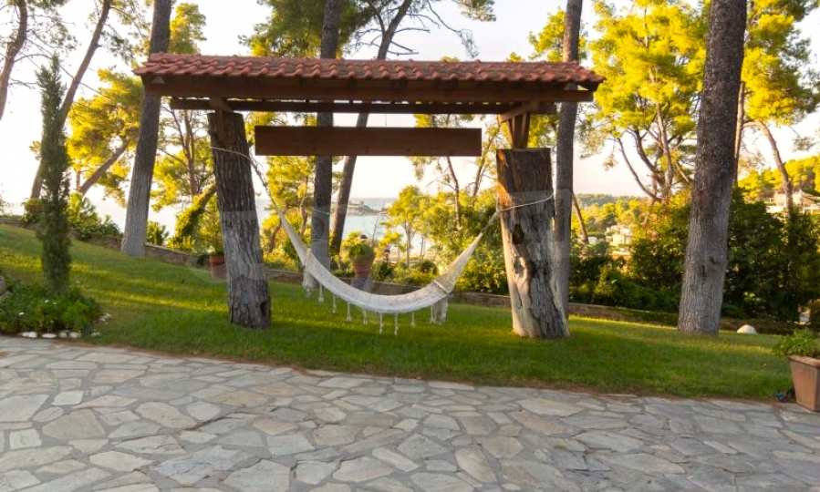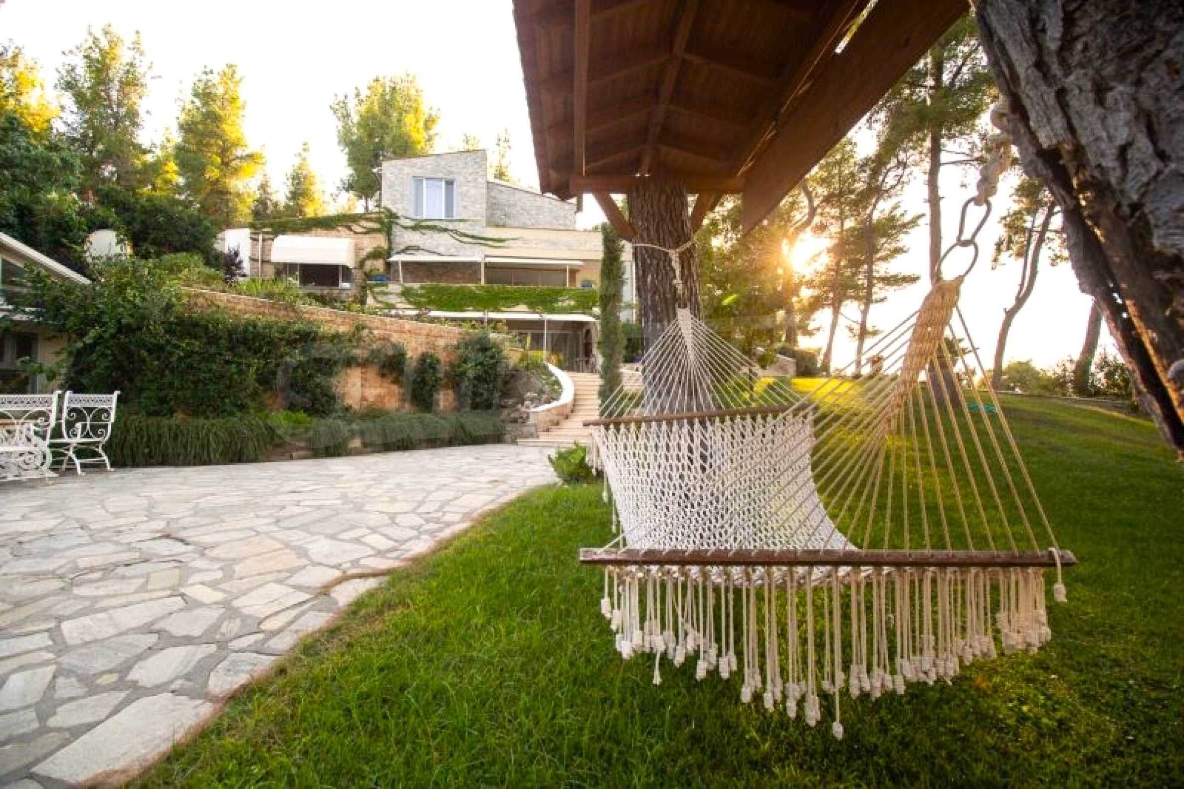 Die Residenz besteht aus insgesamt 1000 Quadratmetern Wohnfläche, Hauptvilla und zusätzlichen Gästegebäuden sowie Hilfspersonal und befindet sich in einem 18 Hektar großen, perfekt gepflegten privaten Waldpark. Die Residenz ist etwa 200 Meter von den Stränden des \"Sani Resort\" und allen Annehmlichkeiten des Komplexes entfernt und genießt viele Privilegien, die das \"Sani Resort\" bietet.