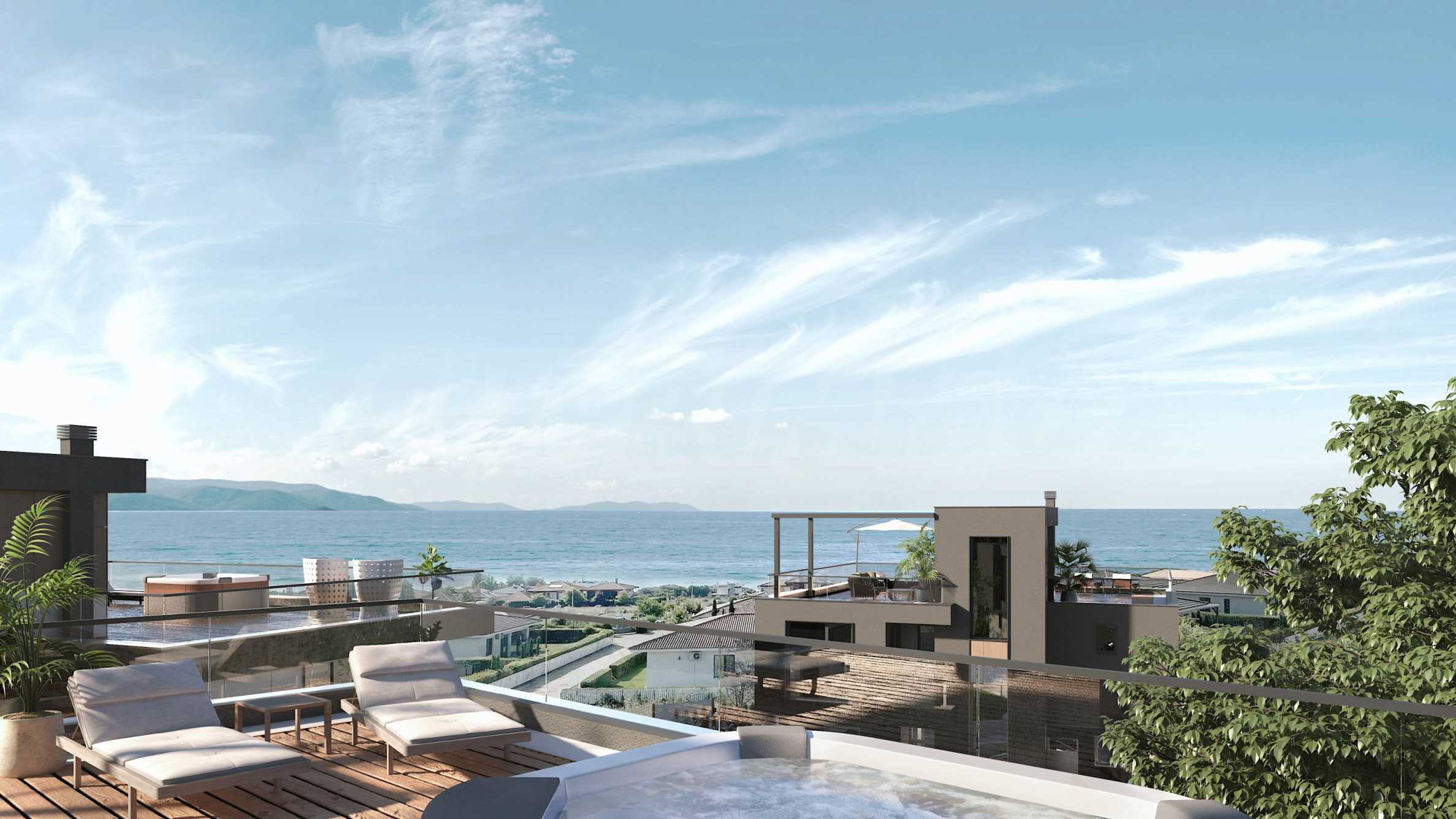 Die Immobilien bieten Meerblick. Es besteht die Möglichkeit, einen Swimmingpool/Whirlpool zu bauen oder die Dachterrasse zu nutzen.