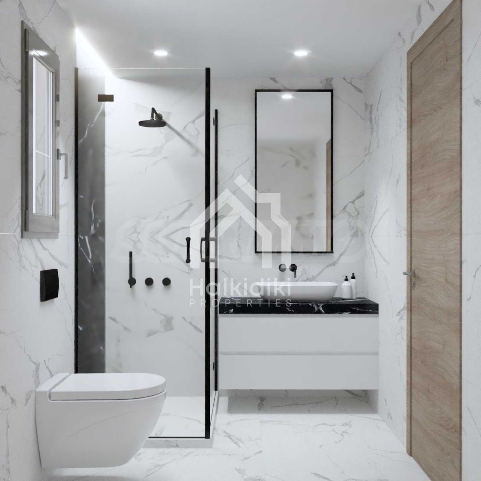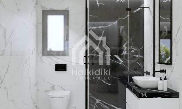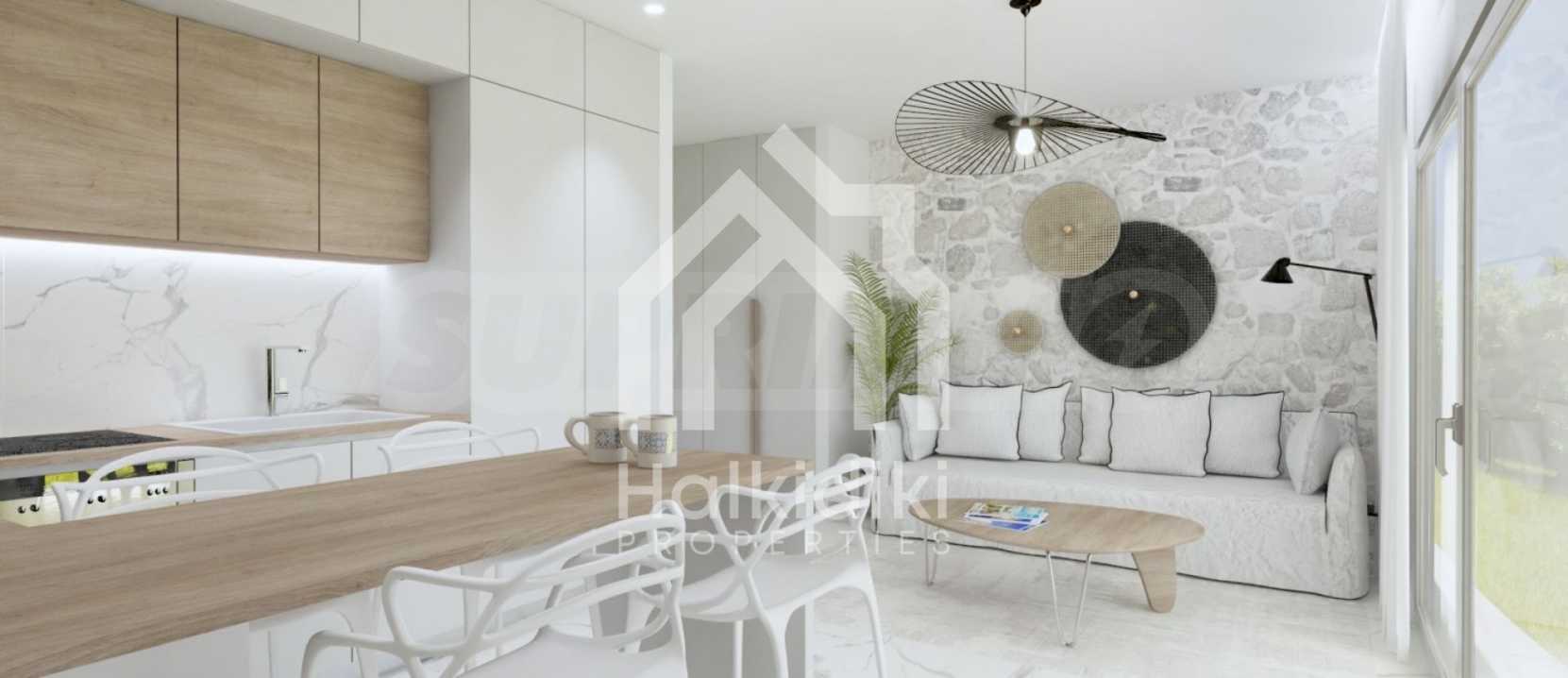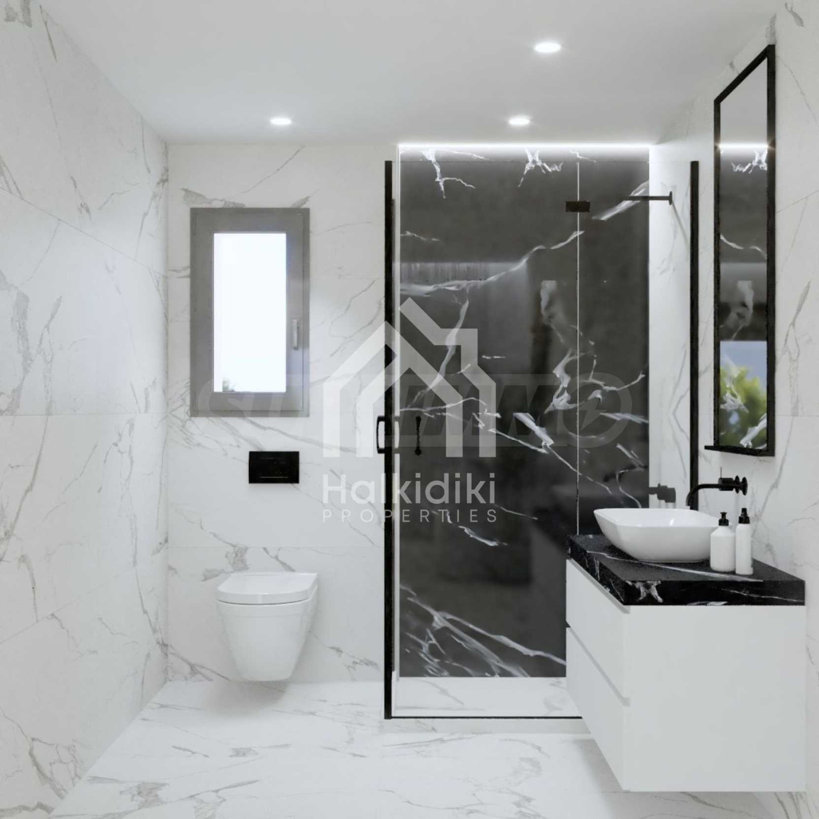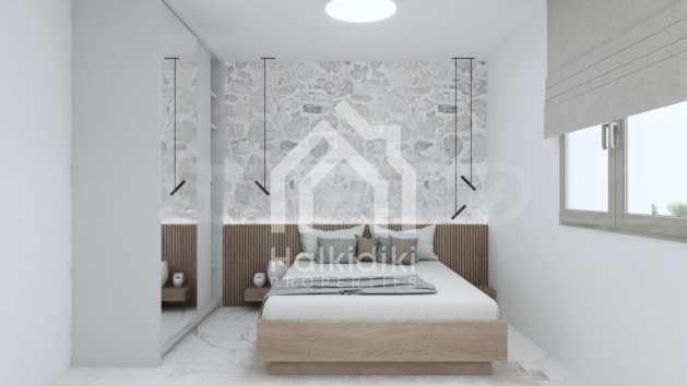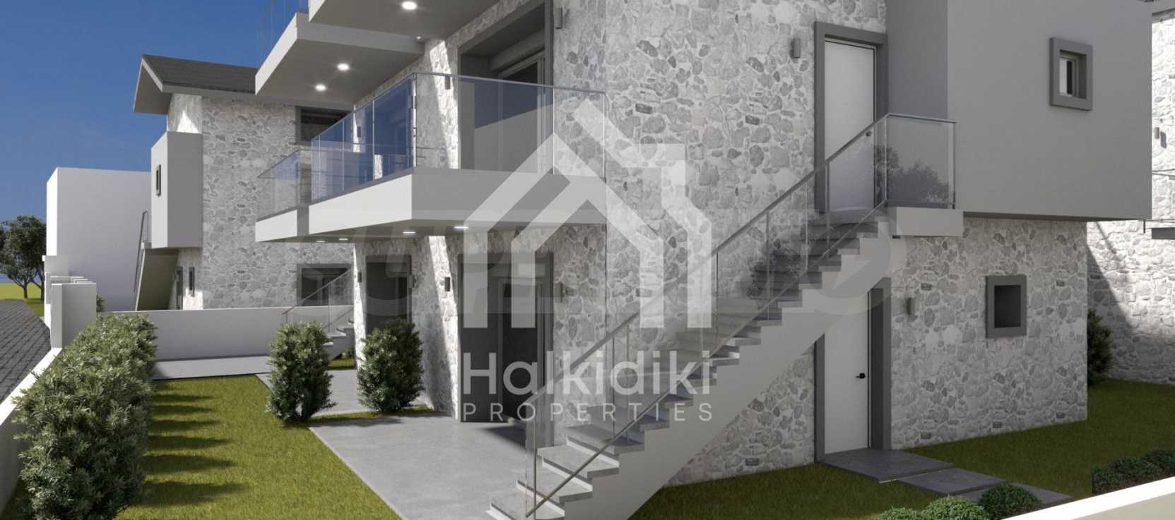 Luxusimmobilie, schöne Maisonette in fußläufiger Entfernung vom Meer, an einem sehr schönen Ort in Kassandra, im kleinen Paradies Chalkidiki. Das Anwesen befindet sich auf einer Fläche von 615,67 qm. in einer Entfernung von 500 m vom Dorfzentrum entfernt Es besteht aus 2 Ebenen mit insgesamt 104 m². des Wohnbereichs. Das Anwesen umfasst 2 Schlafzimmer und 1 Badezimmer
