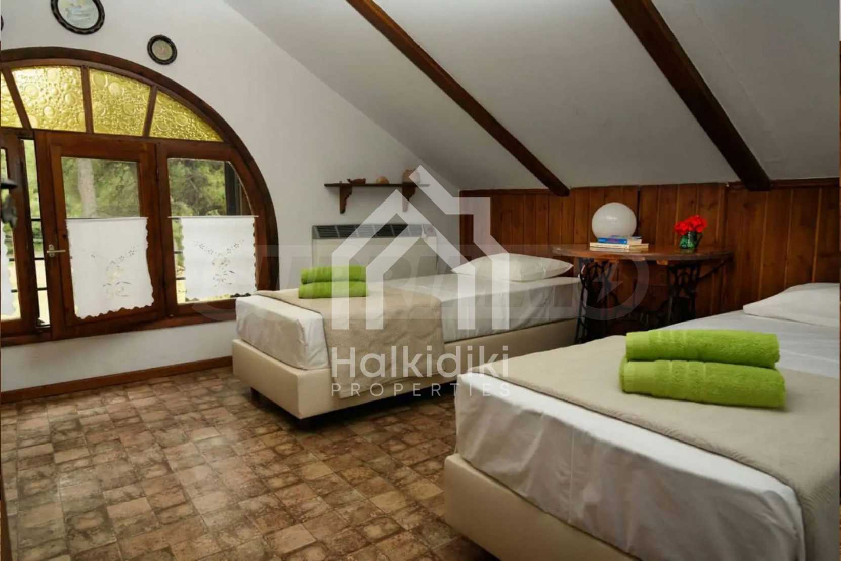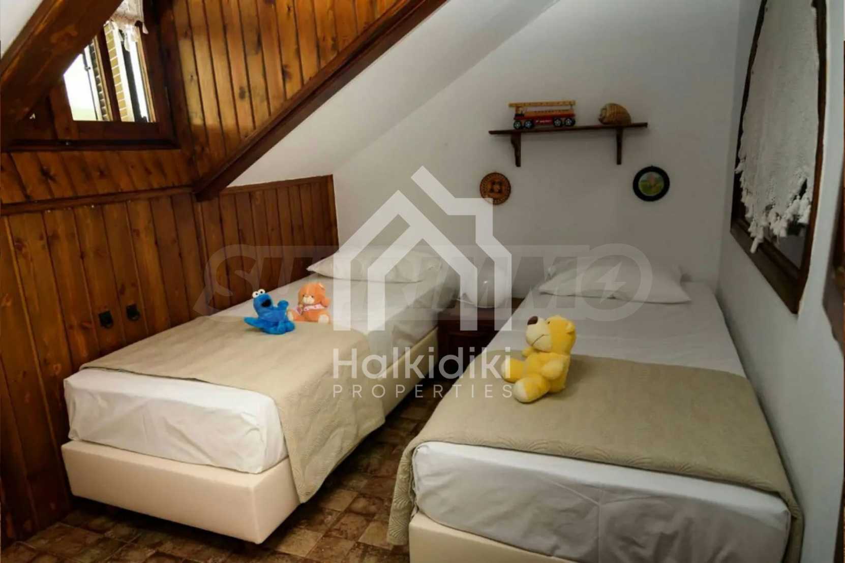 Ein einzigartiges Einfamilienhaus in bemerkenswerter Lage in Kassandra, im Herzen von Chalkidiki. Das Anwesen befindet sich auf einer Fläche von 2000 qm. in einer Entfernung von 4,1 km vom Dorfzentrum. Es besteht aus 3 Ebenen mit insgesamt 200 qm. Wohngebiet. Das Anwesen umfasst 6 Schlafzimmer, Abstellraum und 3 Badezimmer.