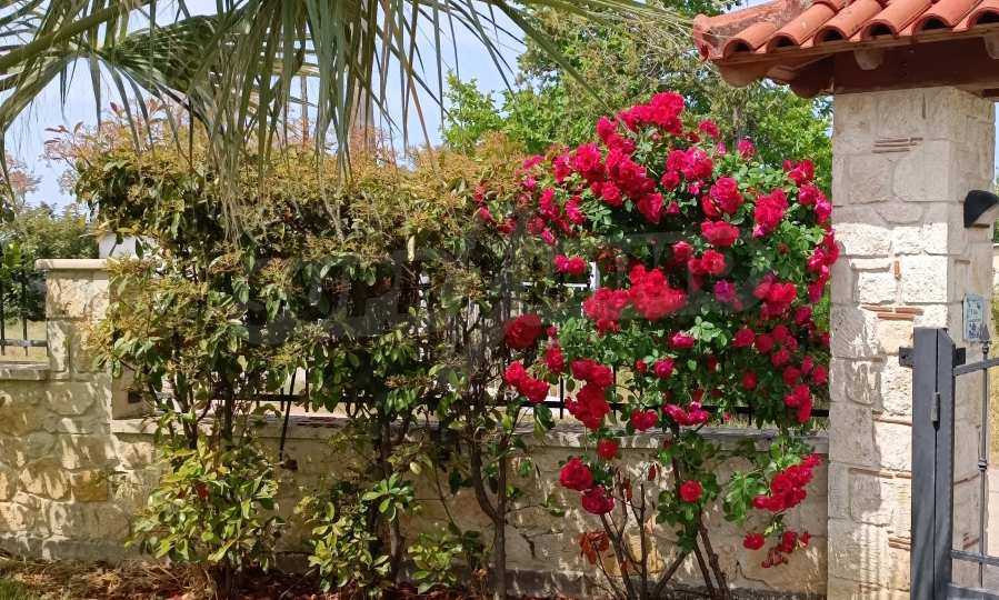 Vor den beiden Hauptflügeln der Villa finden Sie eine geräumige Veranda und einen Pool von 25 qm. Der außergewöhnlich gepflegte Garten ist mit Obstbäumen, Palmen, Rosen und jahrhundertealten Olivenbäumen übersät.