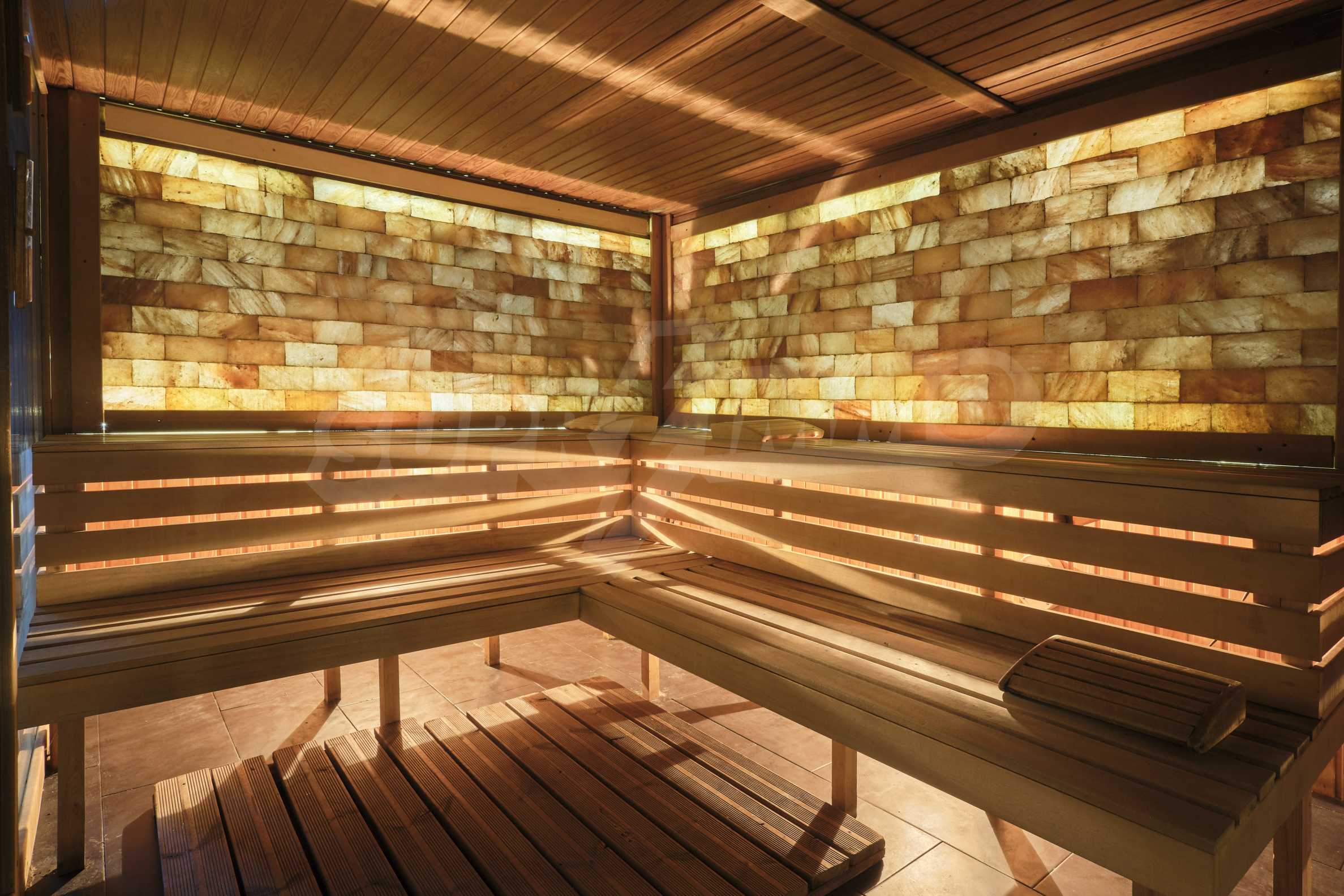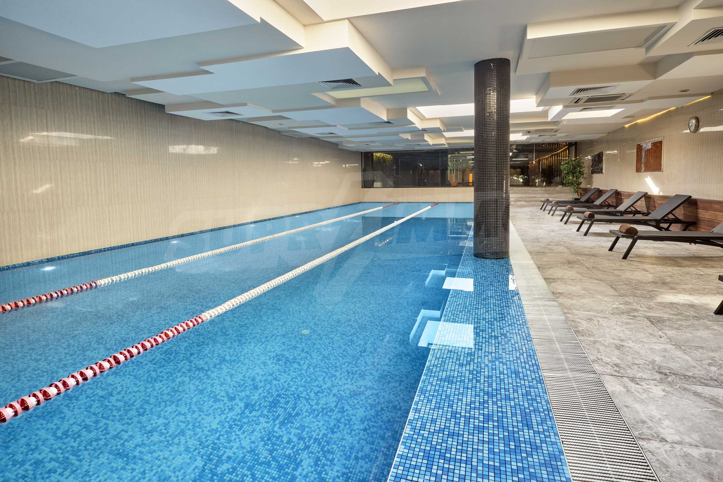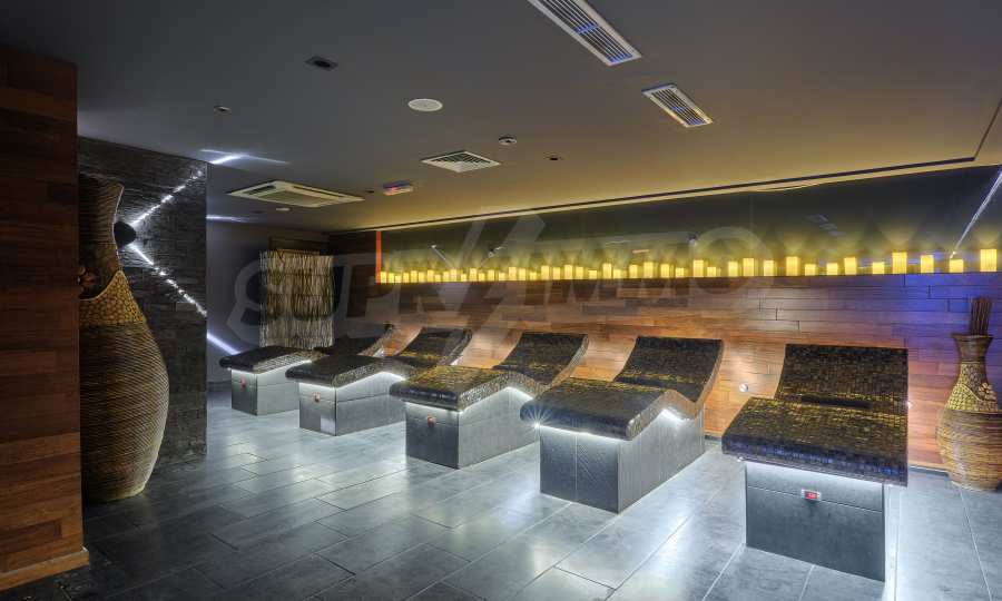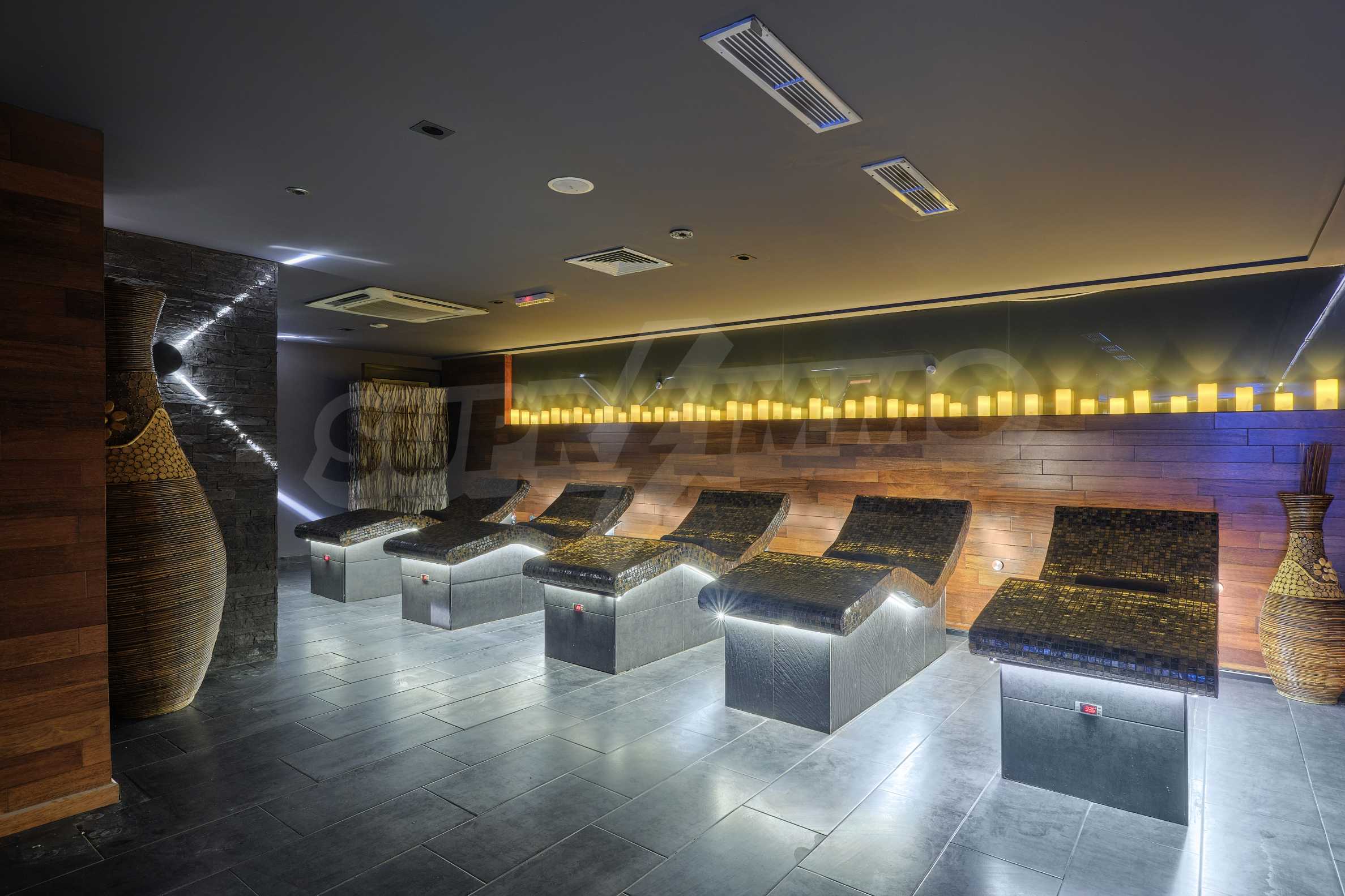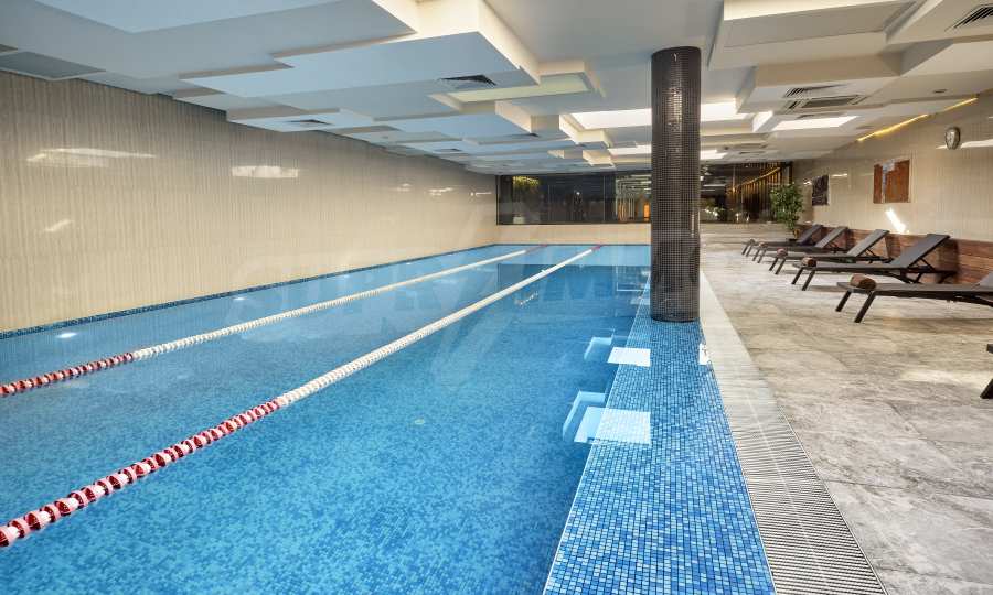 Das Luxusgebäude bietet ein 3-stöckiges Spa und umfasst einen 25-Meter-Innenpool und Wasserliegen im Freien. Freuen Sie sich auch auf einen Whirlpool, eine Panoramasauna, ein türkisches Bad, ein römisches Bad, einen großen Fitnessraum sowie einen Massage- und Schönheitssalon. Die Residenz verfügt auch über ein Restaurant, das eine große Auswahl an mediterranen Gerichten bietet.