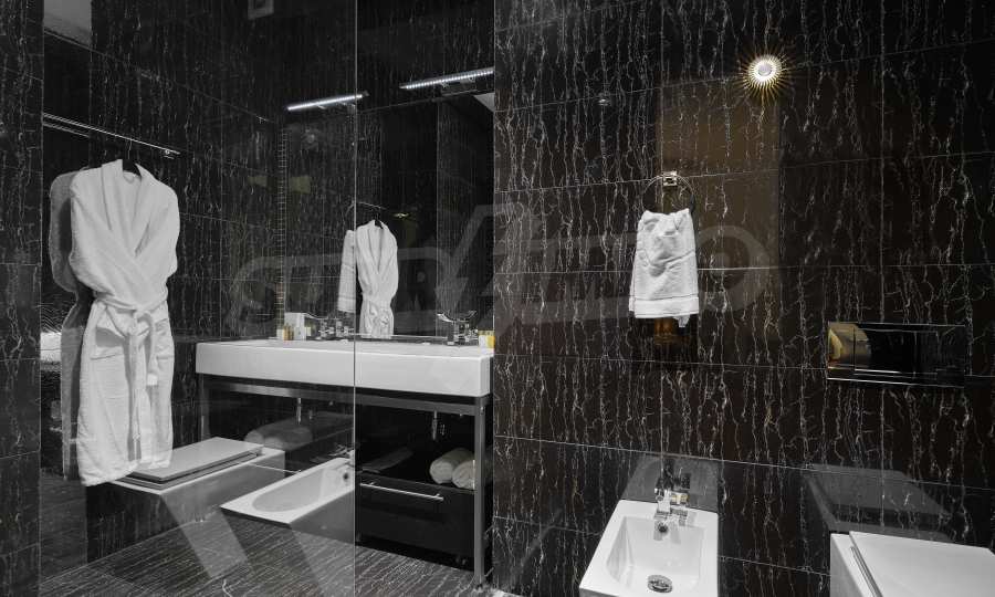 Die Wohnung ist mit exquisitem Innendesign ausgestattet - unter schwarzem Marmor und Granit, Naturparkett Marbo, Wände mit leuchtendem Onyx und Latex, Badezimmer mit italienischer Verkleidung, Designelemente aus Gold und Onyx, Schlafzimmer und Wohnzimmer - Designermöbel mit italienischen Möbeln. Voll ausgestattete Küche mit Gorenje-Geräten - Kühlschrank, Herd, Kochfeld, Geschirrspüler, Gefrierschrank, Mikrowelle. Separater Platz für Waschmaschine + Trockner. 52-Zoll-Fernseher im Wohnzimmer und 42-Zoll-Fernseher in den Schlafzimmern, eingebaute Beleuchtung, große und helle Zimmer mit bodentiefen Fenstern.