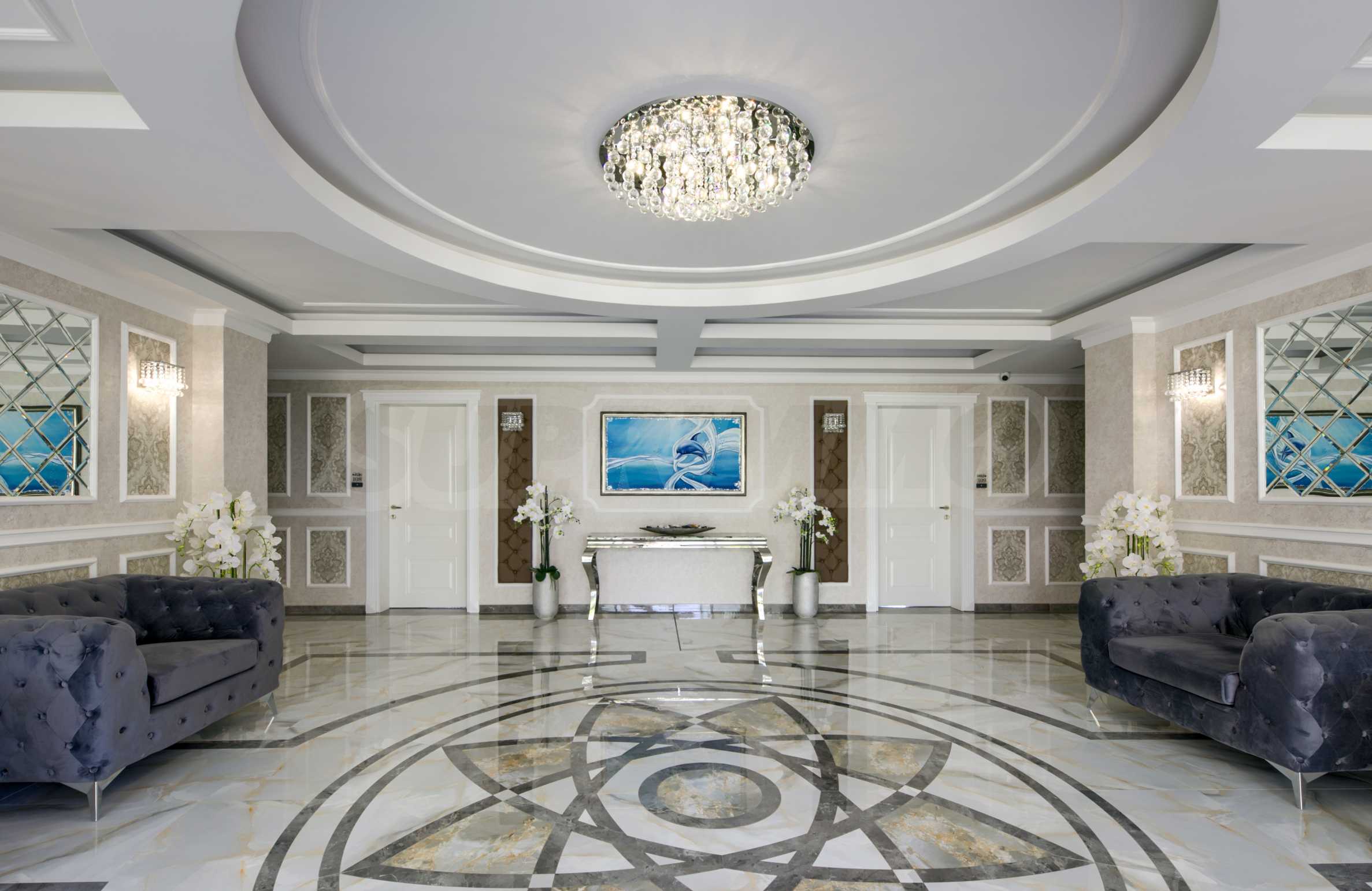 Die Gemeinschaftsbereiche, Flure und Treppen, Rezeption und Lobby werden gemäß dem Designprojekt fertiggestellt.
