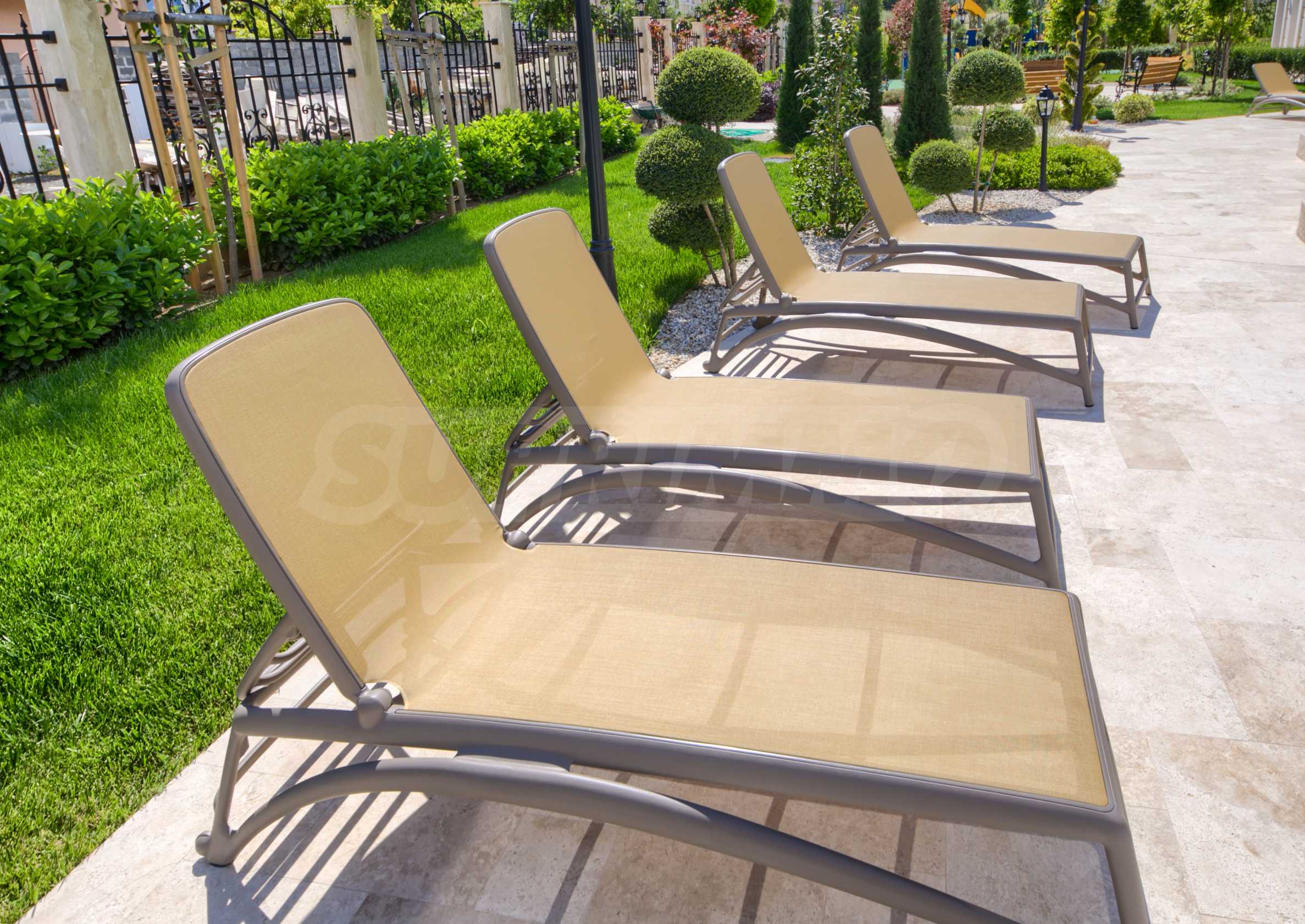Das architektonische Erscheinungsbild der Gebäude vereint mediterrane und klassische Akzente mit dekorativen Elementen und Architekturprofilen, Naturstein- und EPS-Profilen. Das Äußere wird durch die reichhaltige Landschaftsgestaltung ergänzt, die ganz im Einklang mit dem Erscheinungsbild der Gebäude steht. Der Hof ist mit Parkbeleuchtung, Springbrunnen und Alleen, Erholungsgebieten, Fahrradabstellplätzen und einem 27 m langen Außenpool ausgestattet.