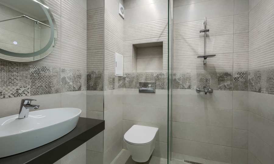 - Sanitärartikel in den Badezimmern – Roca, spanische Wand- und Bodenbeläge, Glasscheiben, Beleuchtung und Accessoires;