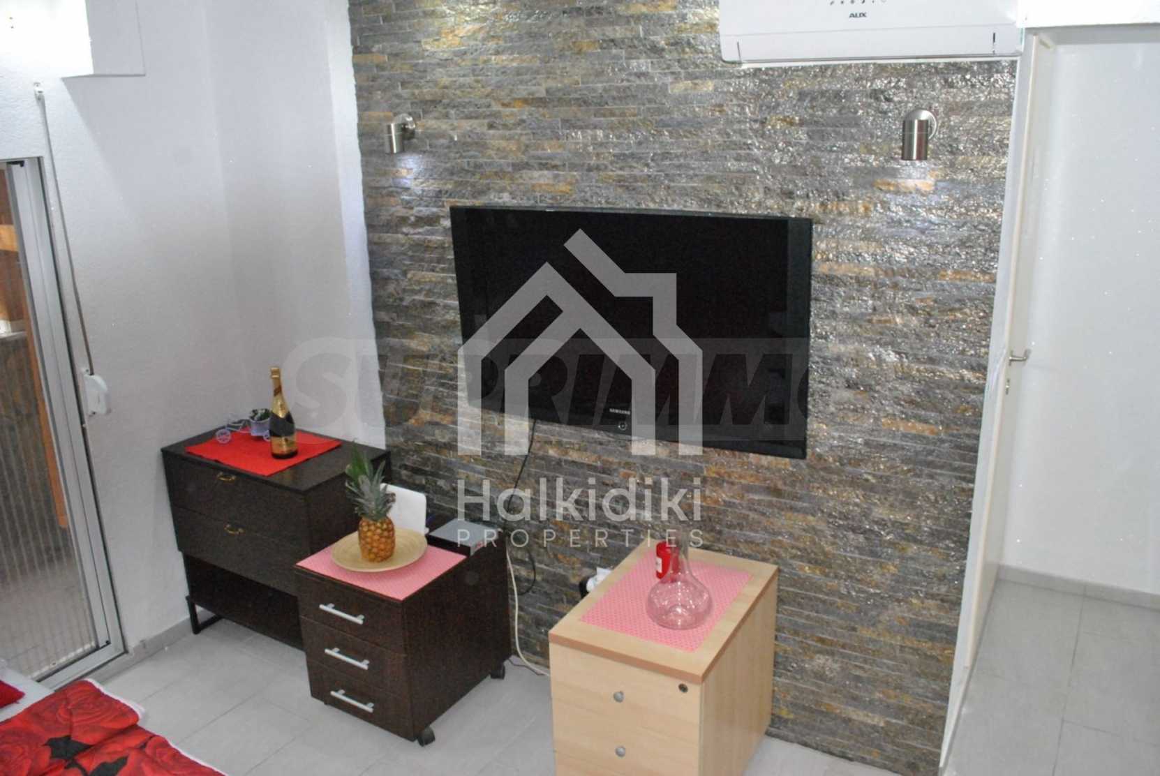Dies ist eine sehr schöne Wohnung. Das Anwesen befindet sich nur wenige Gehminuten vom Meer entfernt in einer fantastischen Lage in der Gemeinde Kassandra auf Chalkidiki. Sie befinden sich in einer Entfernung von 50 m vom Zentrum des Dorfes und in sehr kurzer Entfernung von einem wunderschönen Strand. Die Wohnung befindet sich im Erdgeschoss und besteht aus einem Wohnzimmer, einem Schlafzimmer und einem Badezimmer. Es ist voll möbliert und mit allen Elektrogeräten ausgestattet.
