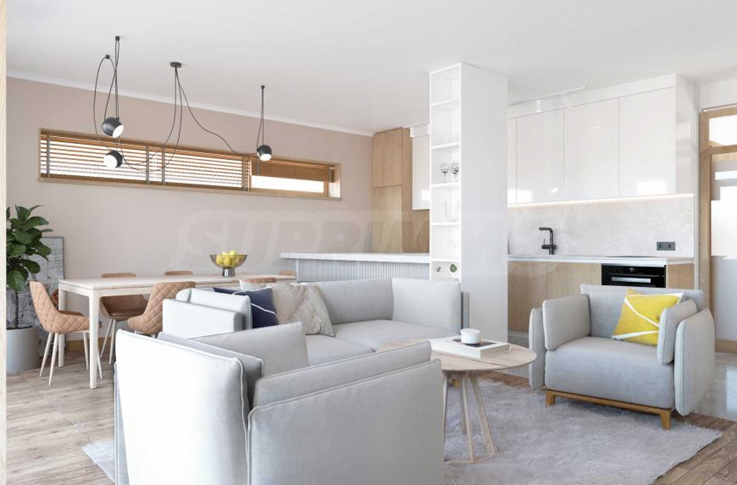 Es wurde vollständig aus natürlichen Materialien gebaut und kombiniert moderne architektonische Lösungen mit dem typischen bulgarischen Wiederbelebungsstil.