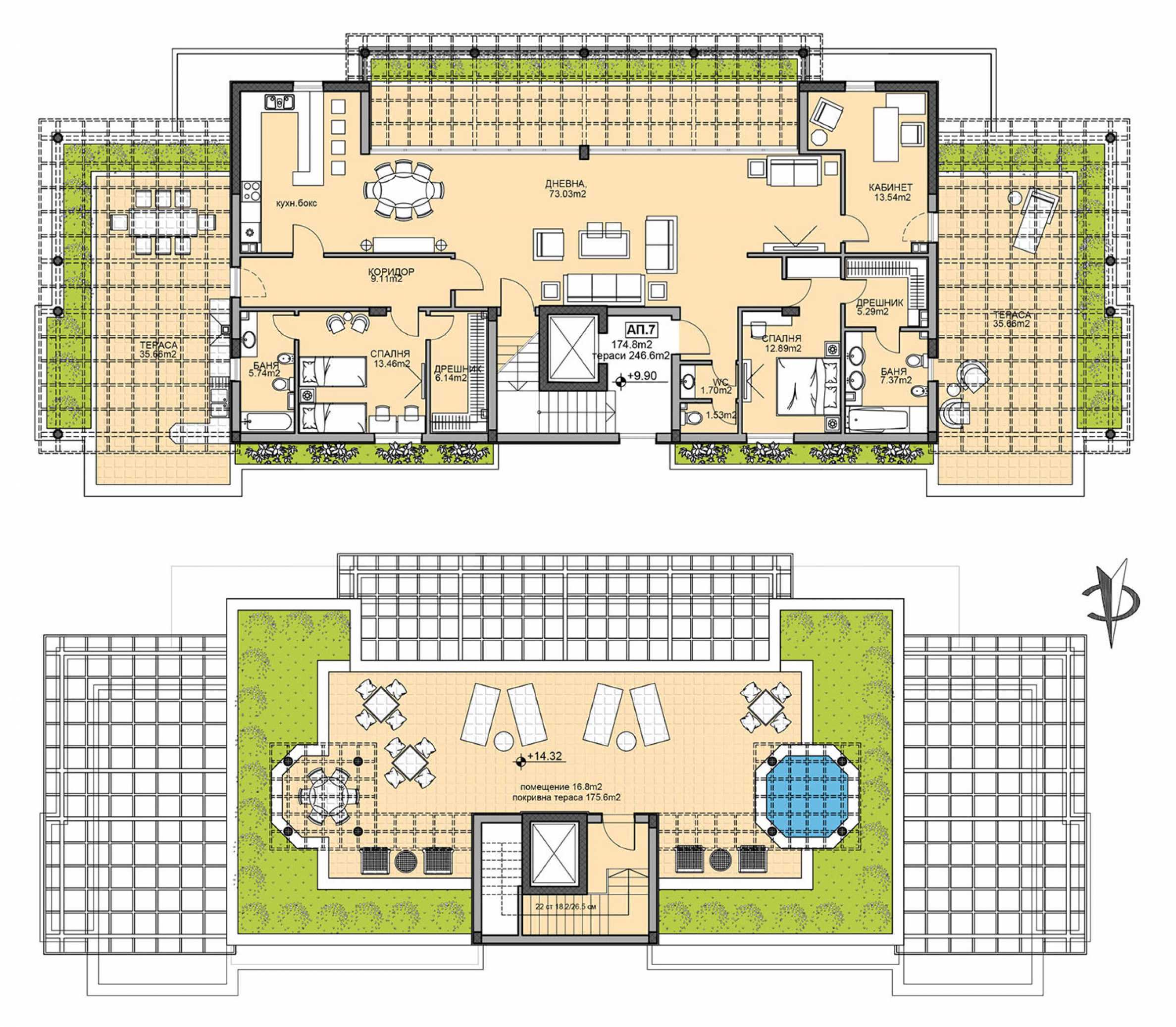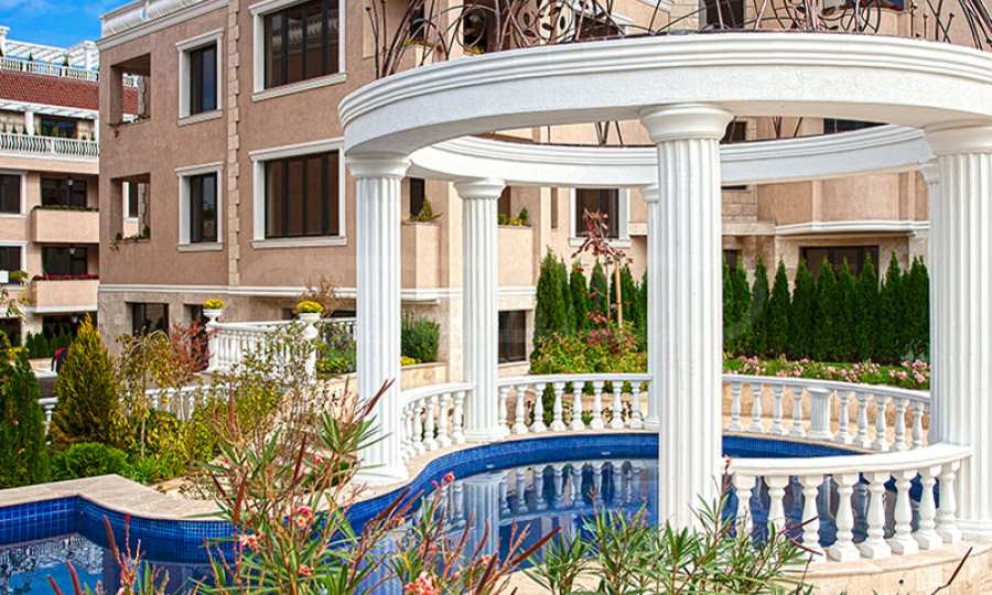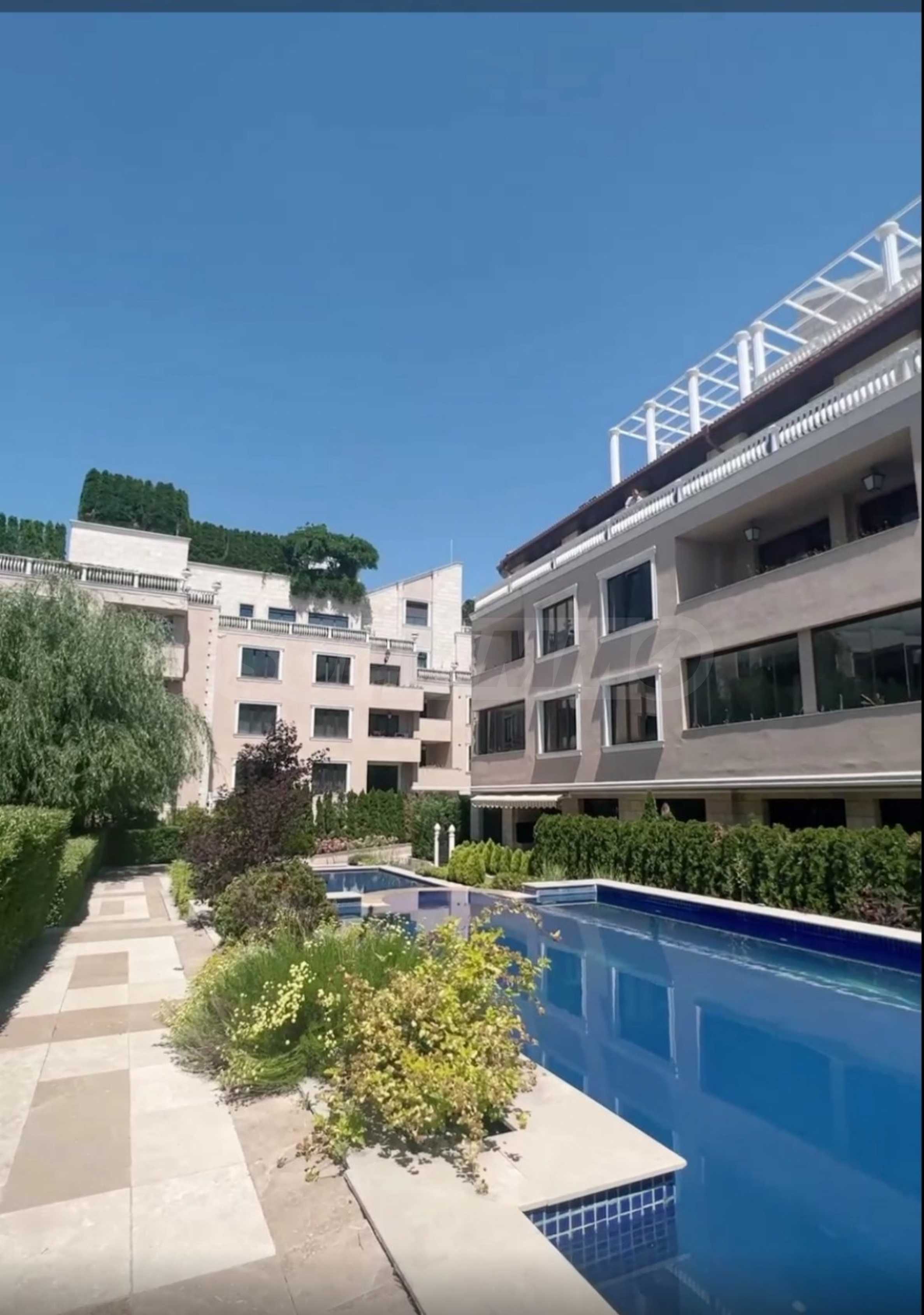Der Komplex besteht aus Apartments mit 3 Schlafzimmern, die sich in 3 neuen, luxuriösen, 3-stöckigen Gebäuden befinden. Die Gesamtzahl der Wohnungen in den drei Gebäuden beträgt 21, mit Südausrichtung und einem panoramischen, unverbauten Blick auf das Vitosha-Gebirge. Der Innenhof ist großzügig begrünt, mit vielen Gehwegen und Ruhezonen gestaltet. Der schöne Pool ist ein zusätzlicher Vorteil der Anlage. Große Aufmerksamkeit wurde den Details des Äußeren geschenkt, dies verstärkt das Gefühl von Luxus.