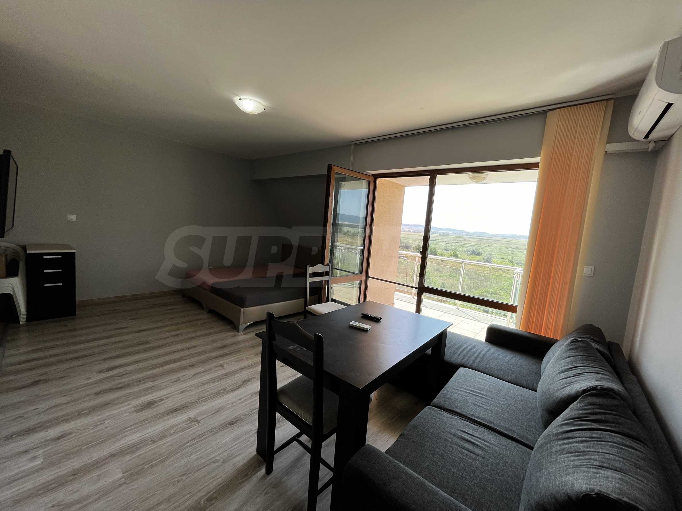 Wir bieten Ihnen ein komfortabel eingerichtetes, geräumiges Studio von 55 qm, mit Küche und Terrasse in einem Gebäude ohne Wartungsgebühr in Sonnenstrand.