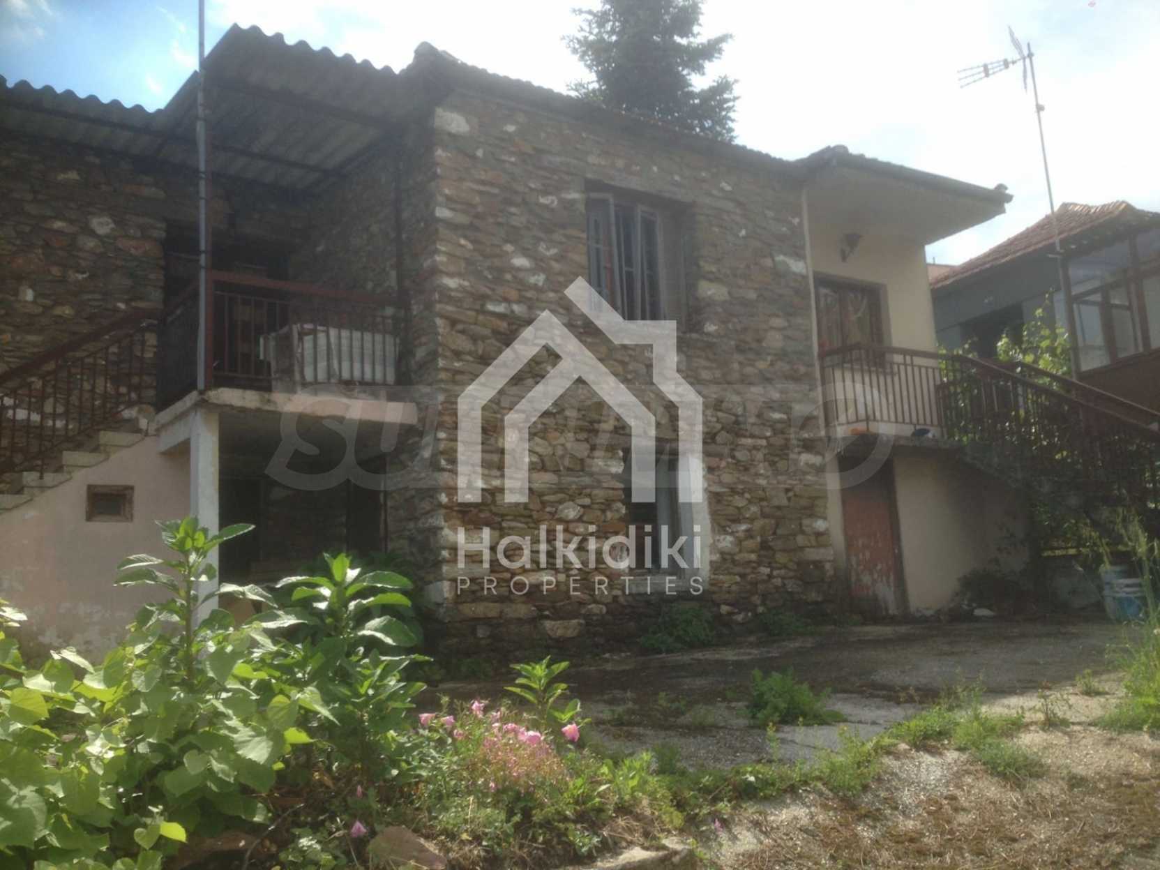 Einfamilienhaus aus Stein im bergigen Chalkidiki 160 qm. mit freiem Panoramablick. Das Haus ist in zwei Ebenen von 80 qm aufgeteilt. und besteht aus Wohnzimmer, Küche, drei Schlafzimmern und einem Badezimmer. Es befindet sich auf einem Grundstück von 300 qm.