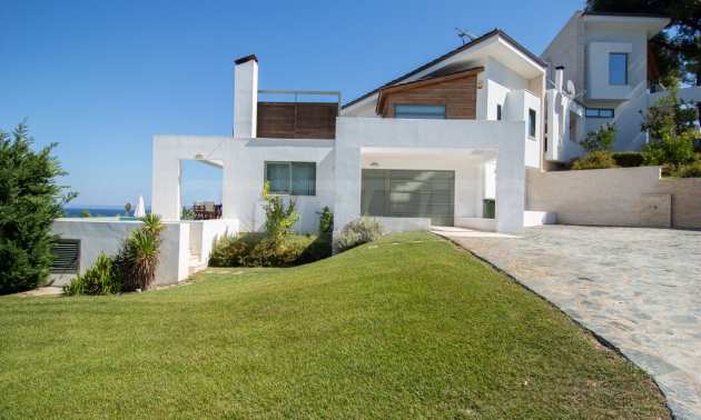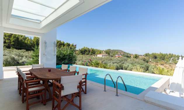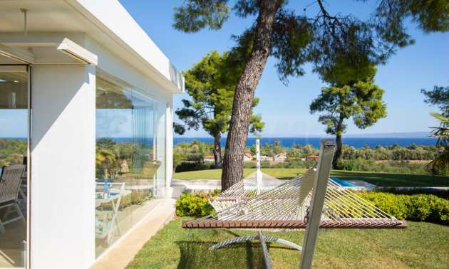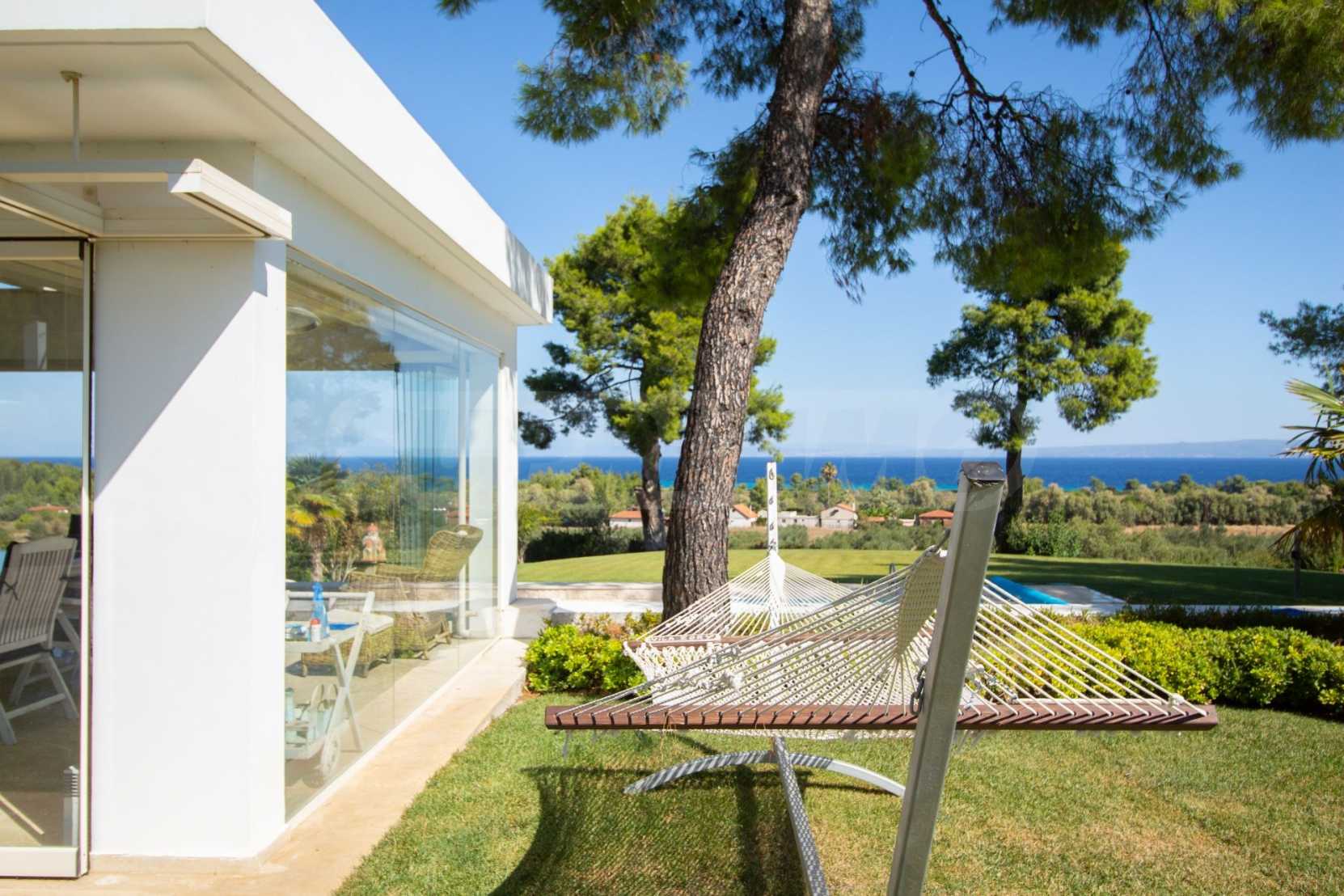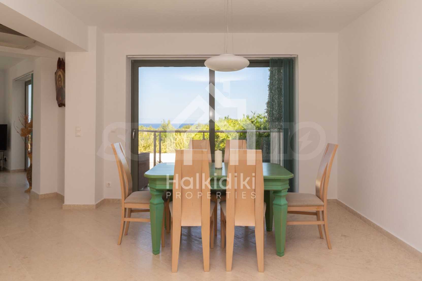 Luxusresidenz. Ein wunderschönes Einfamilienhaus mit luxuriösem Pool in bemerkenswerter Lage in Kassandra, im kleinen Paradies Chalkidiki. Das Anwesen befindet sich auf einer Fläche von 2000 qm. , mit außergewöhnlichem Meerblick, Es besteht aus 3 Ebenen mit insgesamt 330 qm. Wohngebiet. Das Anwesen umfasst 5 Schlafzimmer, 1 WC. , Abstellraum und 4 Badezimmer