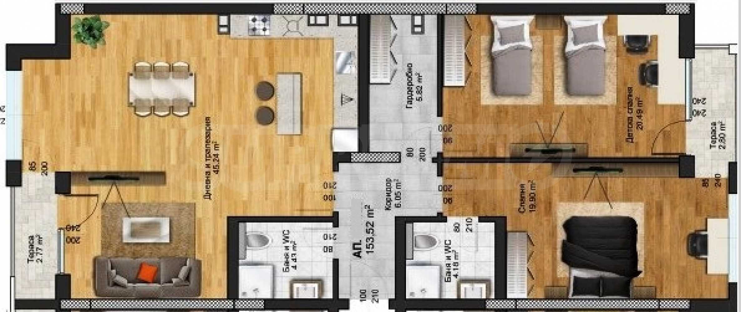 • Zwei große Schlafzimmer – 19,90 m² und 20,49 m²