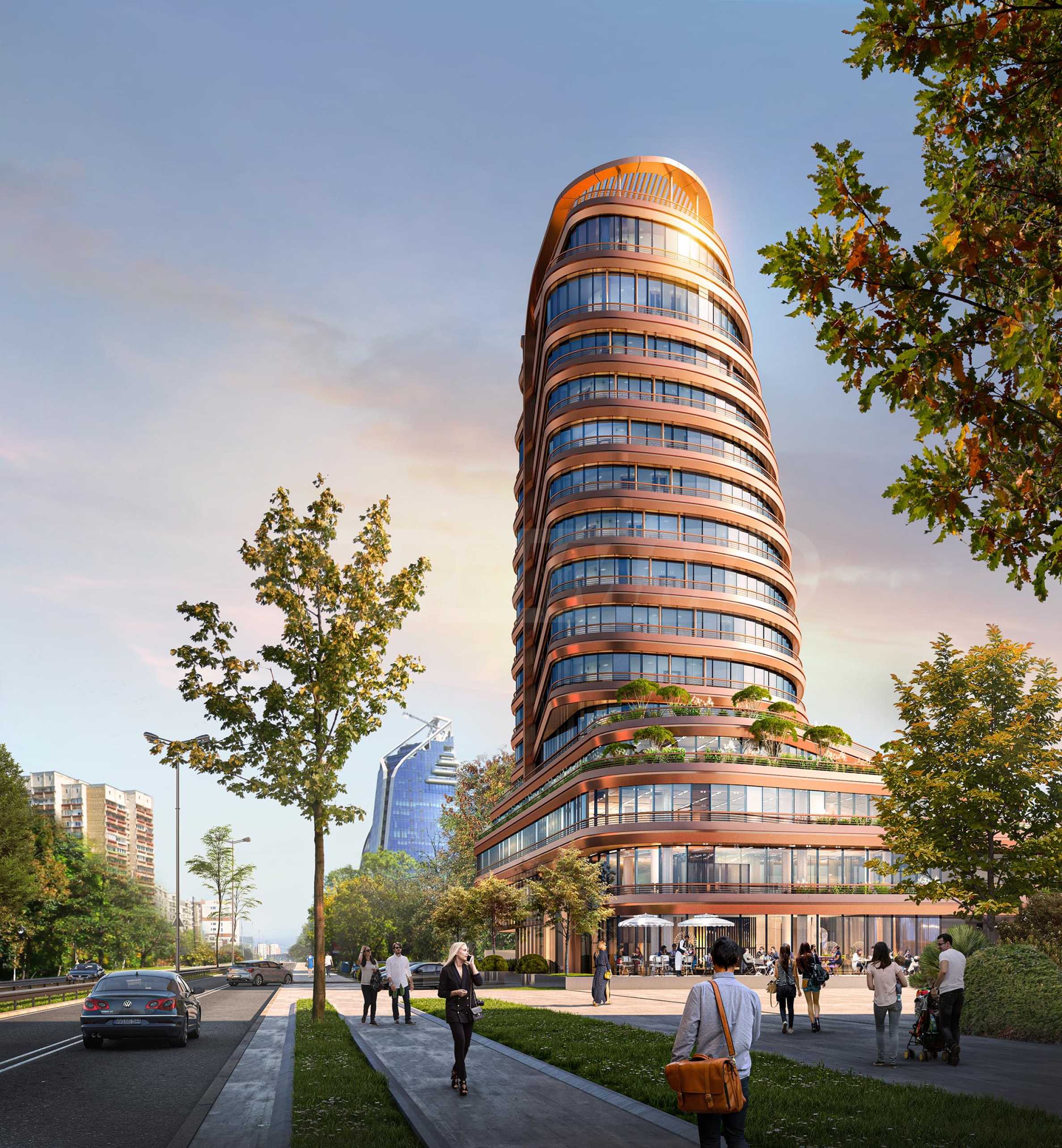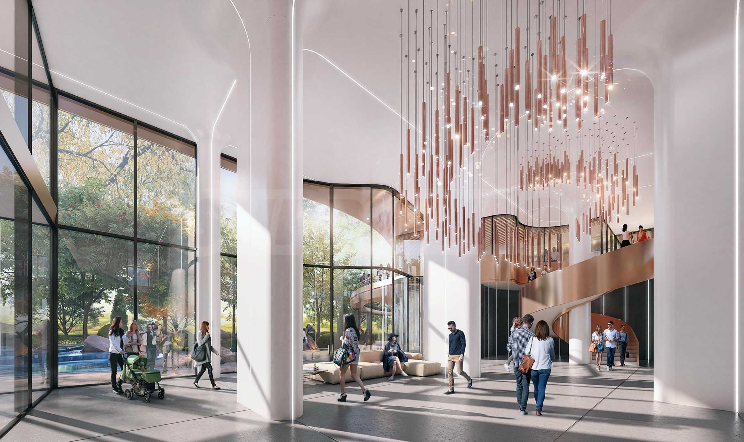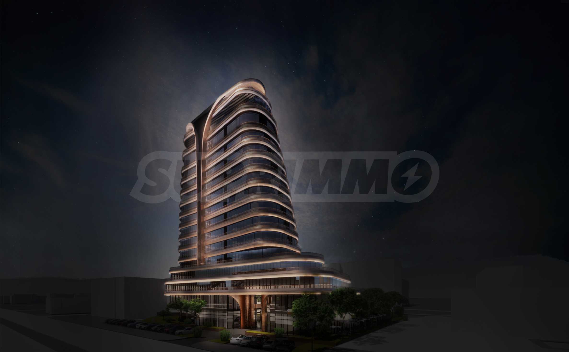 Im Gebäude sind im Erdgeschoss drei Geschäfte und ein Restaurant mit einer lichten Höhe von 4,10 m und zum G.M. Dimitrov Blvd. geplant, im zweiten Stockwerk sechs Büros. Der Zugang zum Wohnteil erfolgt über eine großzügige Lobby mit einer Lichthöhe von 8 m, die sich im inneren Teil des Gebäudes befindet. Zur Auswahl stehen Studios und Apartments mit 1, 2 und 3 Schlafzimmern mit funktionalem Grundriss, BDS-Finish (Gips und Estrich), gepanzerten Solid-Eingangstüren und hochwertiger Aluminiumschreinerei mit Wärmebrücke und Dreifachverglasung. Die Objekte zeichnen sich durch großzügige Flächen, herrliche Ausblicke und hochwertige Ausführung aus. Das Gebäude wird über eine Klimaanlage und ein BHKW verfügen.