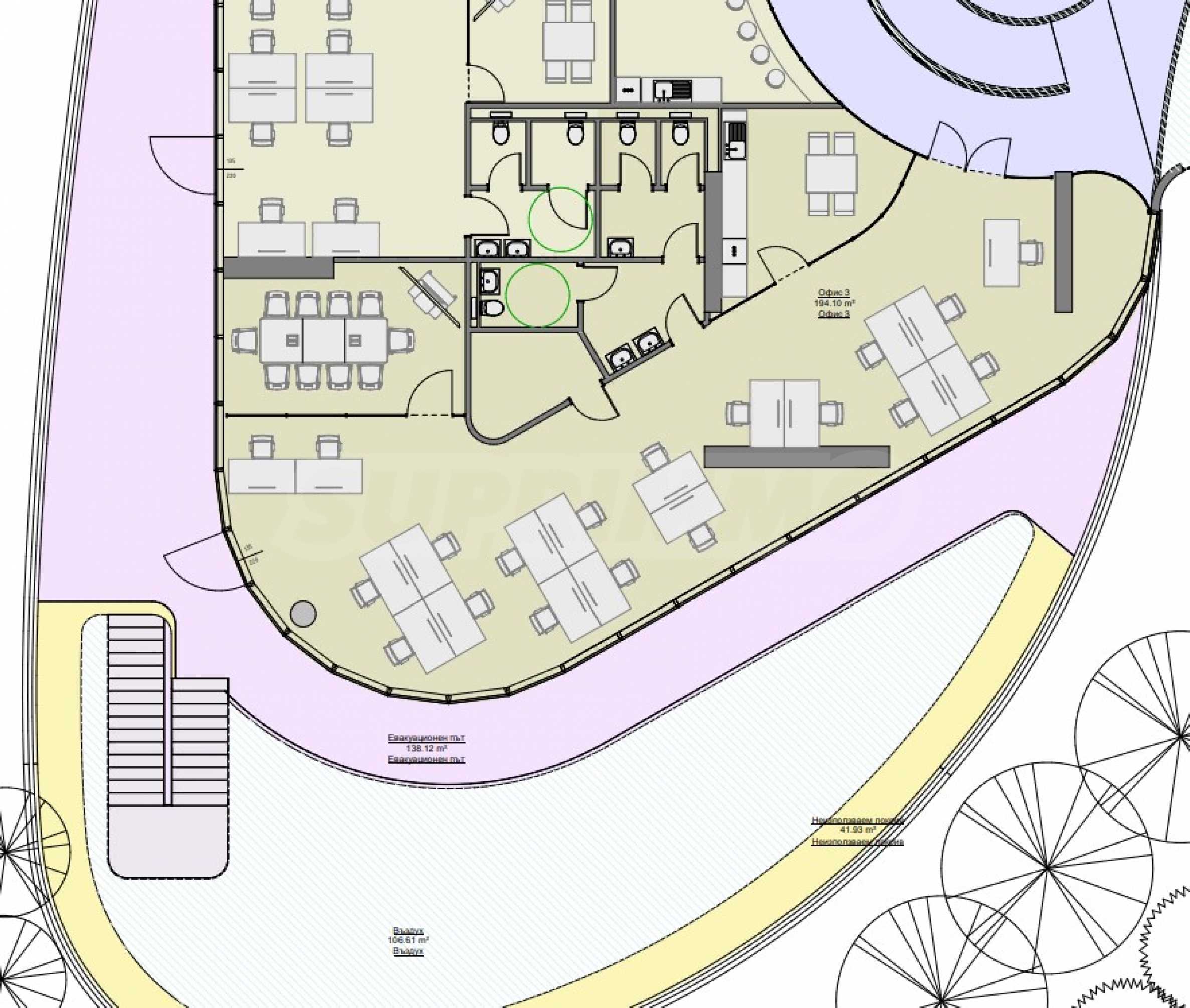 Büro 3 befindet sich im 2. Obergeschoss von insgesamt 15 und bietet eine Gesamtfläche von 194,10 qm.