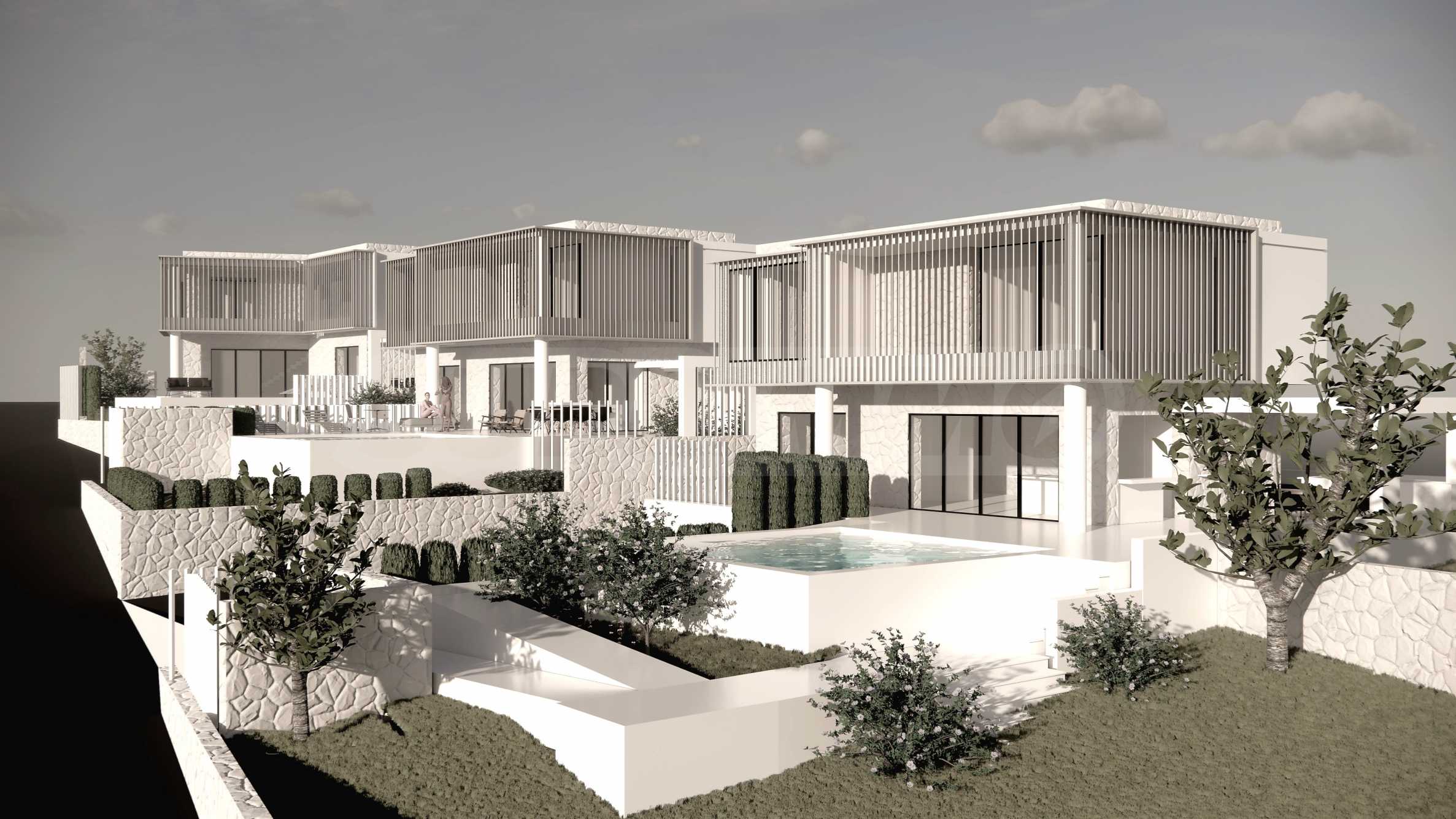 Die Villa wird schlüsselfertig verkauft mit Fußböden, Innentüren, Einbaubädern, fein verputzten und gestrichenen Decken und Wänden, Küchenschränken, gepanzert, Eingangstür, Schallschutzfenstern, Sicherheitssystem, Klimaanlagen, individuellem Heizsystem, wunderschönem Garten mit automatischer Bewässerungsanlage, Schwimmbad und Parkplatz für zwei Autos.