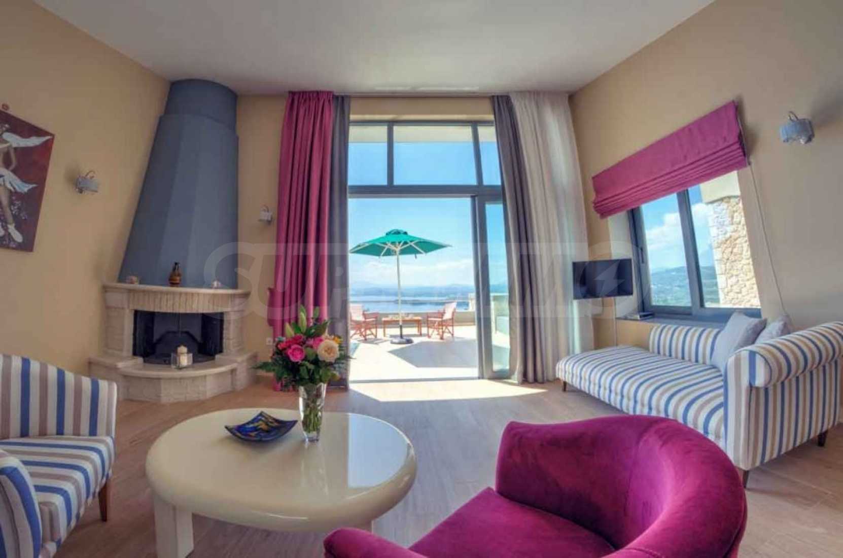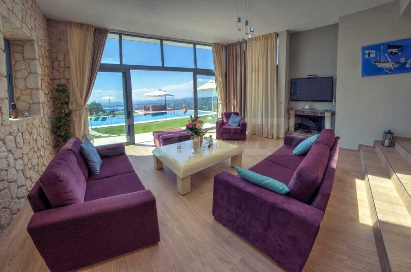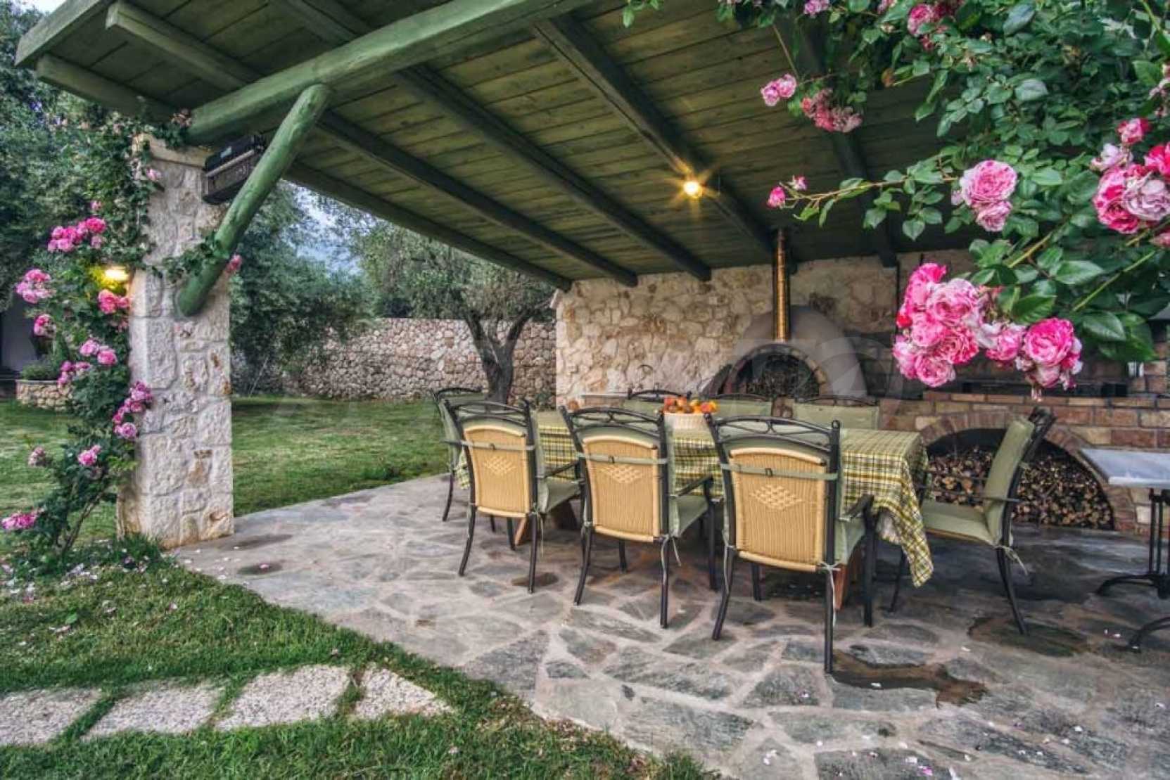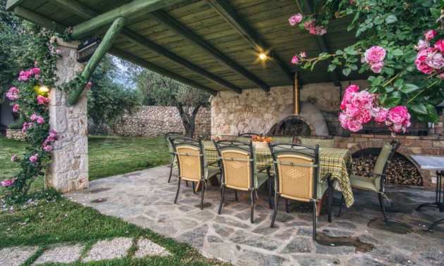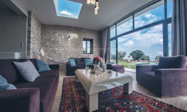 Der besondere Stil, die traditionelle korfiotische Architektur und die wunderbare Aussicht werden Ihnen unauslöschlich in Erinnerung bleiben. Durch die Mischung aus korfiotischem Charme mit Stein und Holz entsteht ein Augenschmaus. Die Beleuchtung sowohl tagsüber als auch nachts sieht fast magisch aus und macht die Villa sehr warm und romantisch und zum perfekten Ort für Spaß.