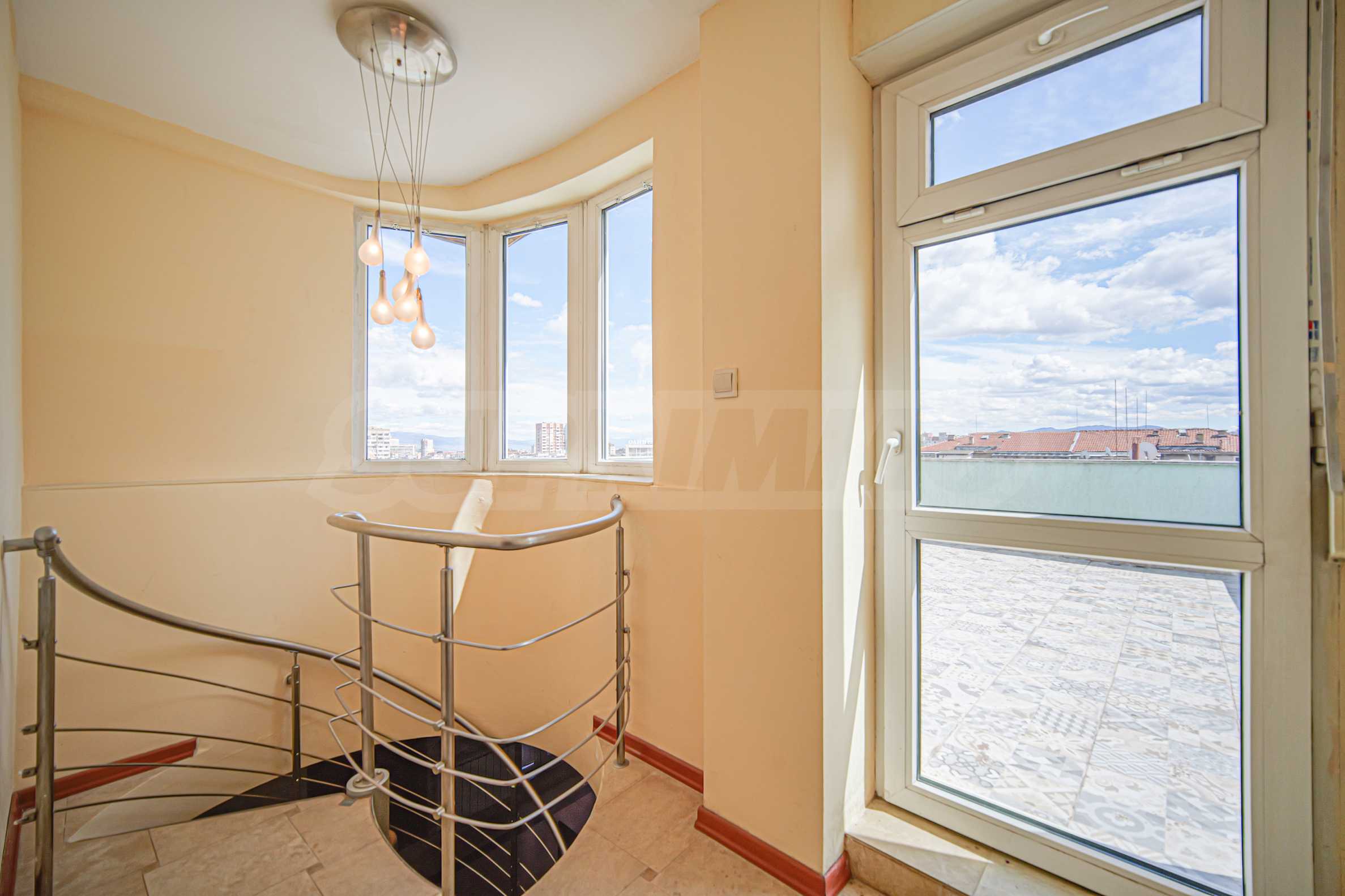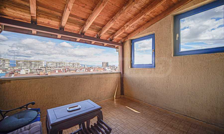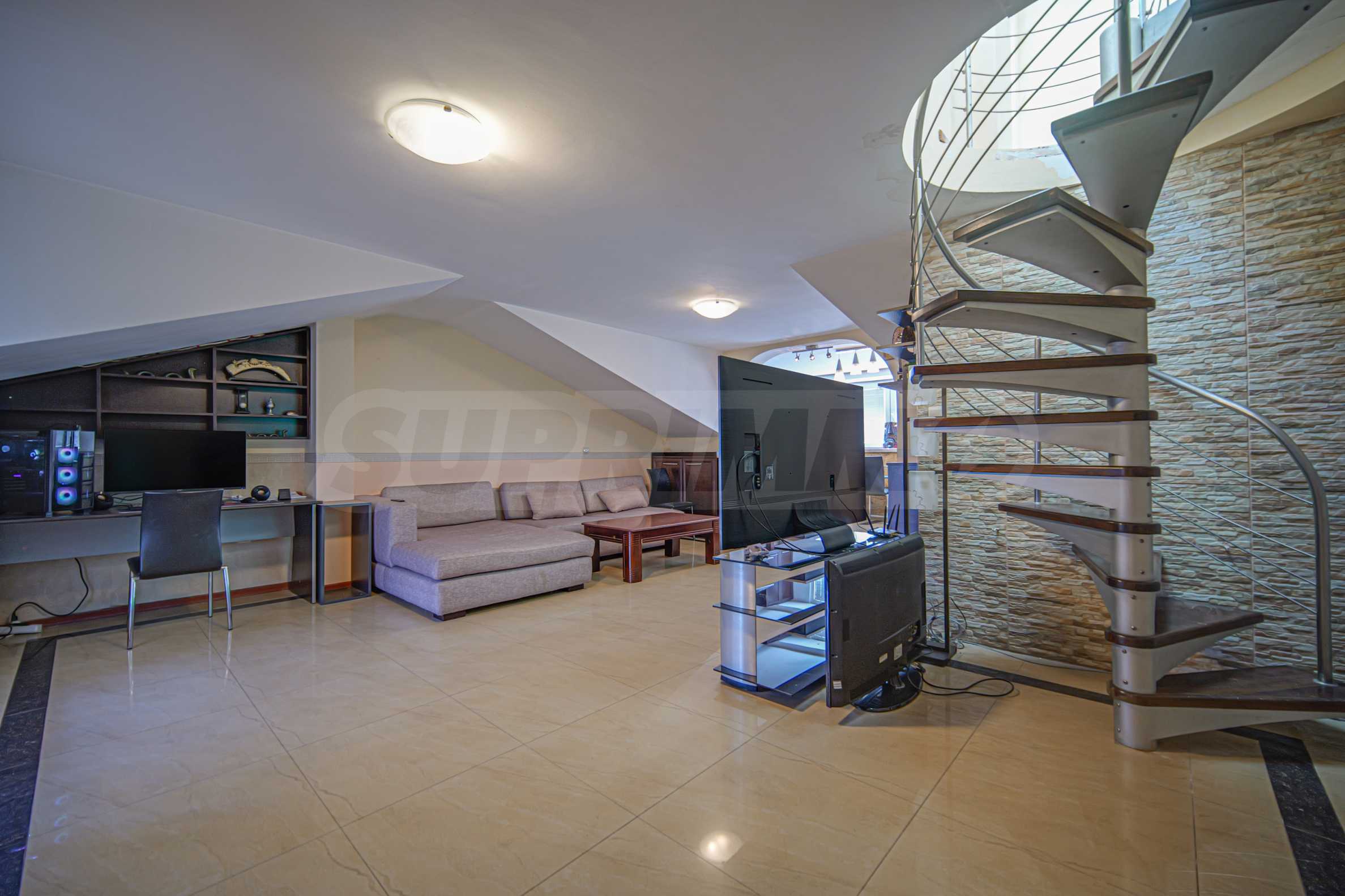 Das Apartment befindet sich in den oberen beiden Etagen eines achtstöckigen Gebäudes aus dem Jahr 2007 mit Aufzug und bietet eine geräumige Terrasse sowie einen herrlichen Panoramablick auf die Stadt und das Witoschagebirge. Es ist nach Süden ausgerichtet und verfügt über 154 m² Wohnfläche und 40 m² Terrassen.
