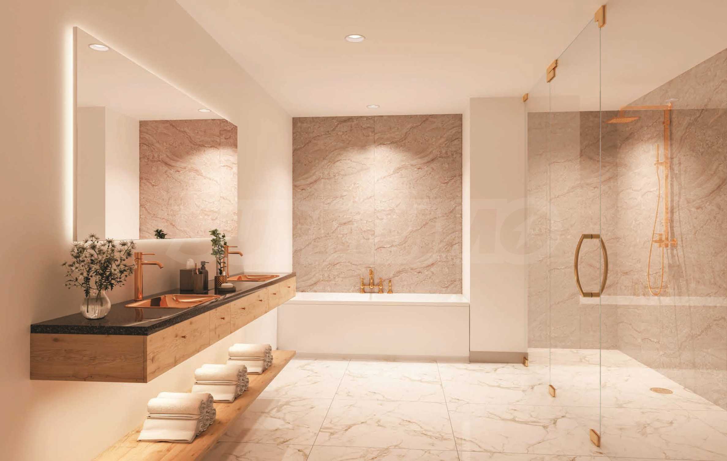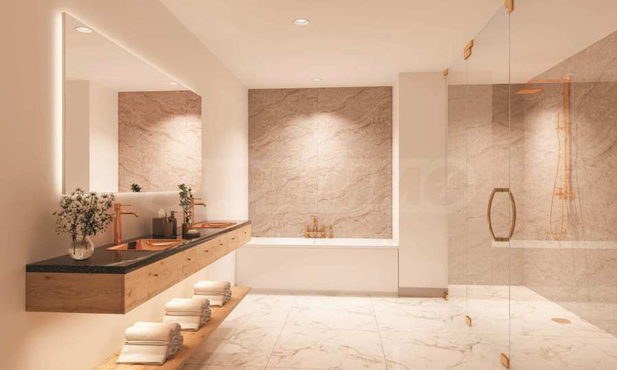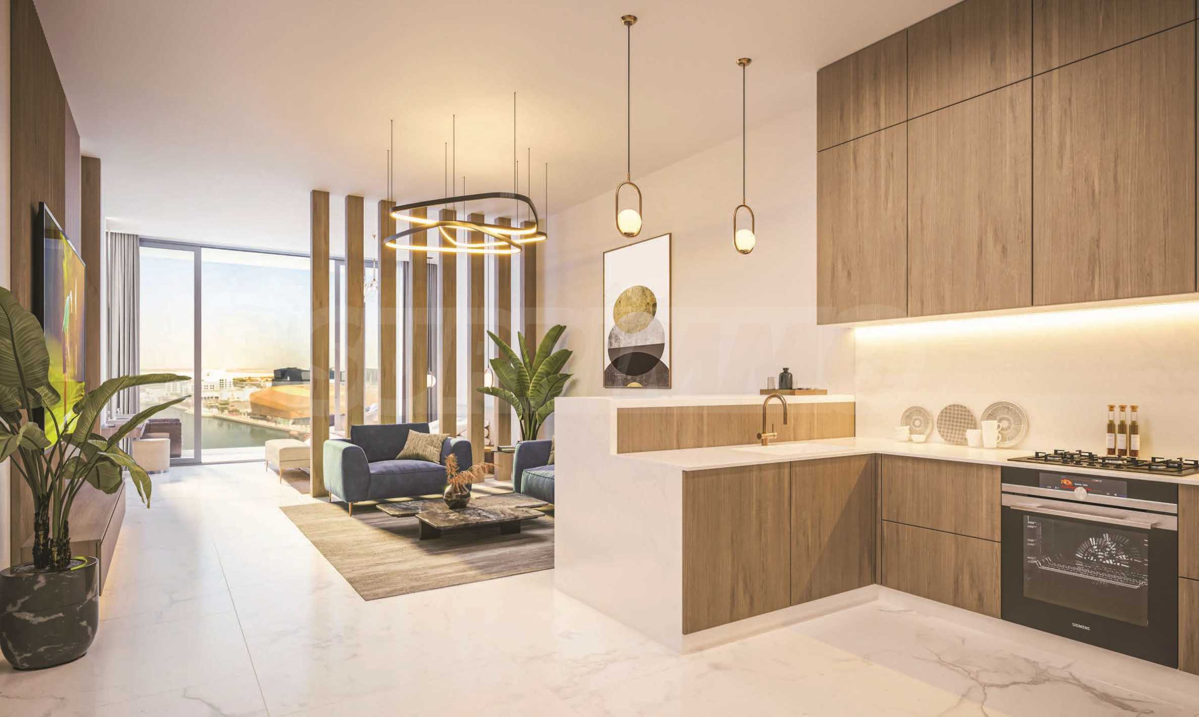 Der Komplex besteht aus modernen Apartments mit einem, zwei und drei Schlafzimmern sowie eleganten zweistöckigen Stadthäusern. Die Eigenschaften sind schlüsselfertig, mit luxuriösen Oberflächen, mit einer halbfertigen Küche und einem Badezimmer.