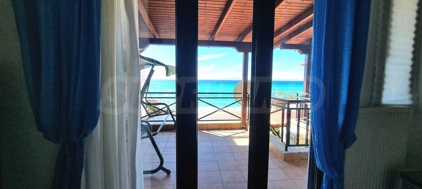 Einzigartige Maisonette-Wohnung am Strand, in einer sehr schönen Lage in Kassandra, im kleinen Paradies von Chalkidiki. Das Anwesen befindet sich auf einer Fläche von 180 qm. , mit unglaublichem Meerblick, 200 m vom Dorfzentrum entfernt. Es besteht aus 2 Ebenen mit insgesamt 115 qm. Wohngebiet. Das Anwesen umfasst 3 Schlafzimmer, Abstellraum und 2 Badezimmer