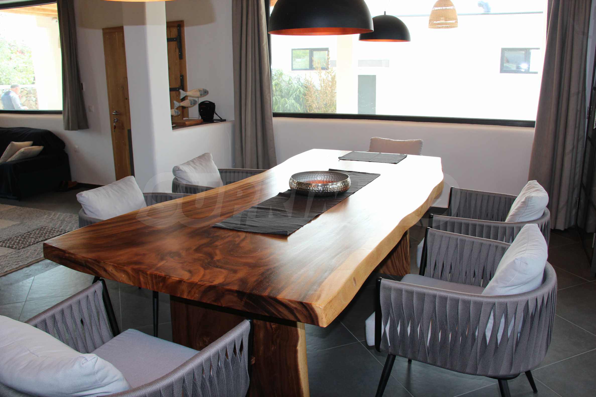 Die Villa wurde nach einem Designprojekt in einem Stil fertiggestellt, der eine interessante Mischung aus Mittelmeer und Afrika vereint. Das Äußere ist im gleichen Stil gehalten, ebenso wie eine voll ausgestattete Profiküche, entwickeltes Restaurant mit einer Kapazität von 100 Sitzplätzen. Hinter dem Restaurant befindet sich ein wunderschöner Pool. Im Innenhof des Anwesens werden aus Griechenland mitgebrachte Olivenbäume und Kakteen gepflanzt und alle Pflanzen werden mit Tropfbewässerung bewässert.