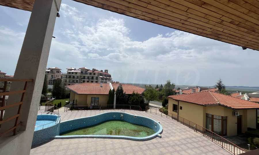 - Swimmingpool, Loungebereich und grüne Gärten.