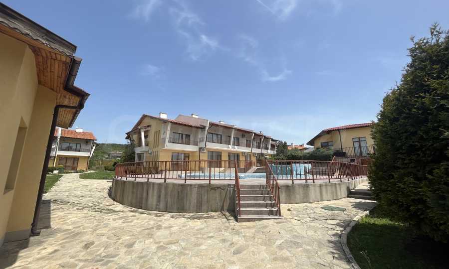 Wir präsentieren ein zweistöckiges Reihenhaus (Stadthaus) in einem geschlossenen Komplex in Sulujana, Dorf Kosharitsa.