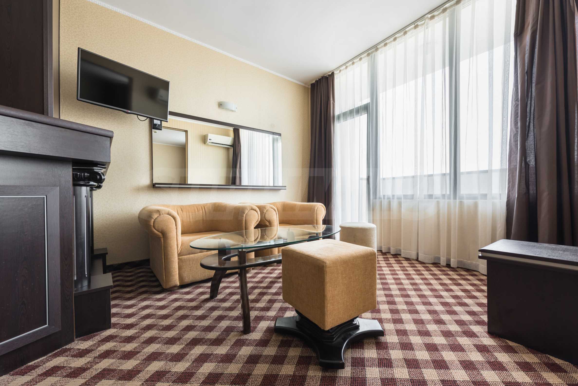 Die Zimmer und Appartements sind komplett möbliert. Jedes Zimmer verfügt über einen Fernseher, Telefon, Kühlschrank, Minibar, Bad und WC.