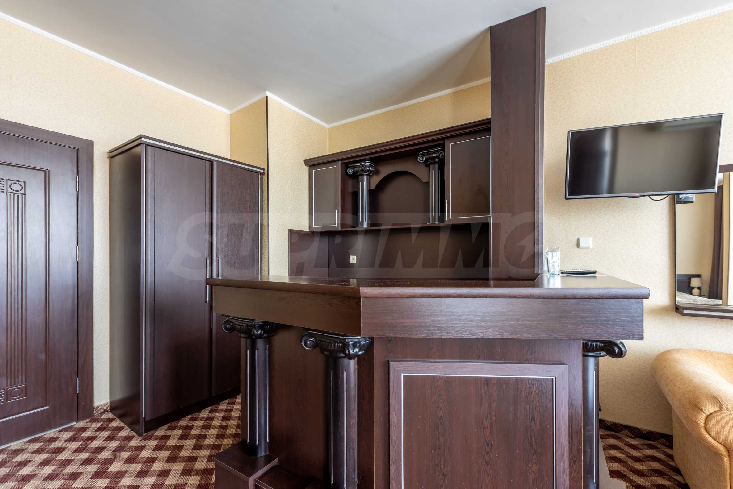- Auf derselben Etage befinden sich: ein Verbindungskorridor zwischen den Zimmern, eine Treppe zu den oberen Etagen, ein Dienstmädchenzimmer, ein Lagerhaus, ein Lastenaufzug, ein Personen- und Panorama-Personenaufzug sowie ein Hotelteil mit 21 Doppelzimmern.
