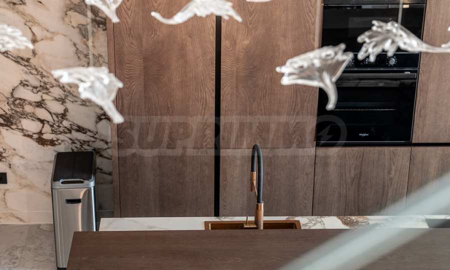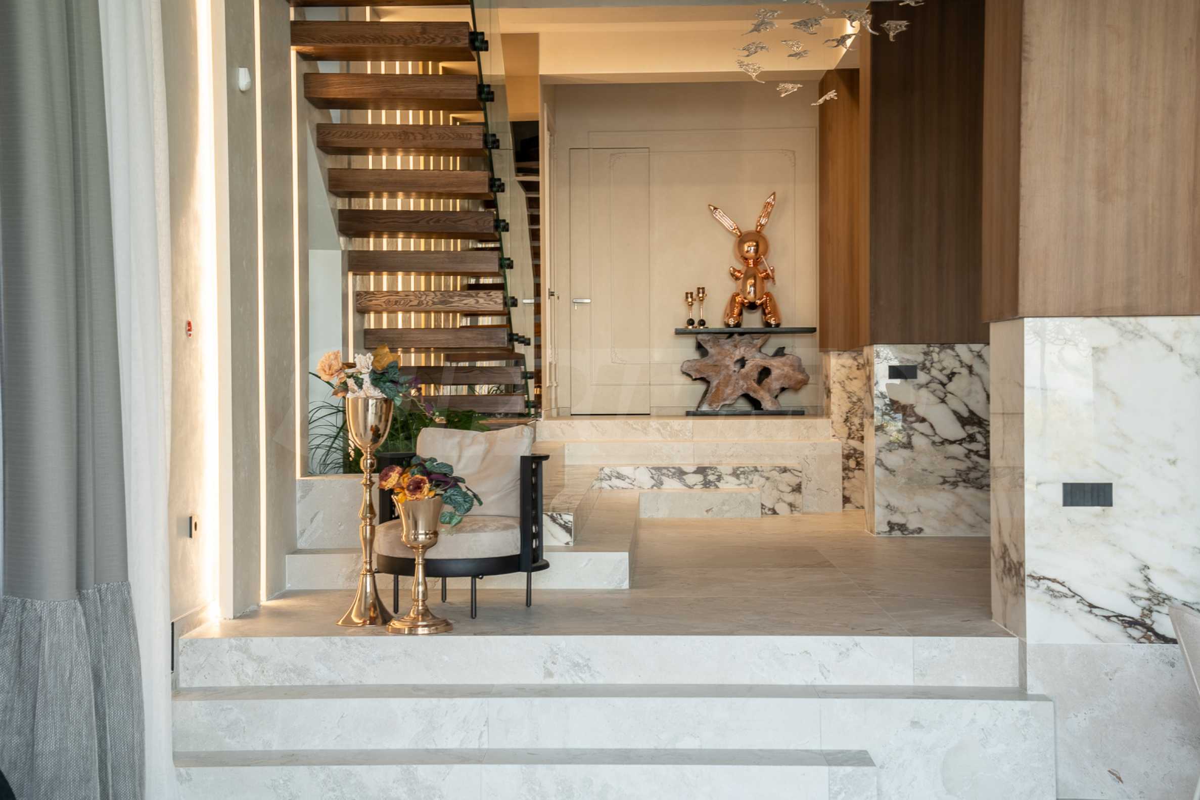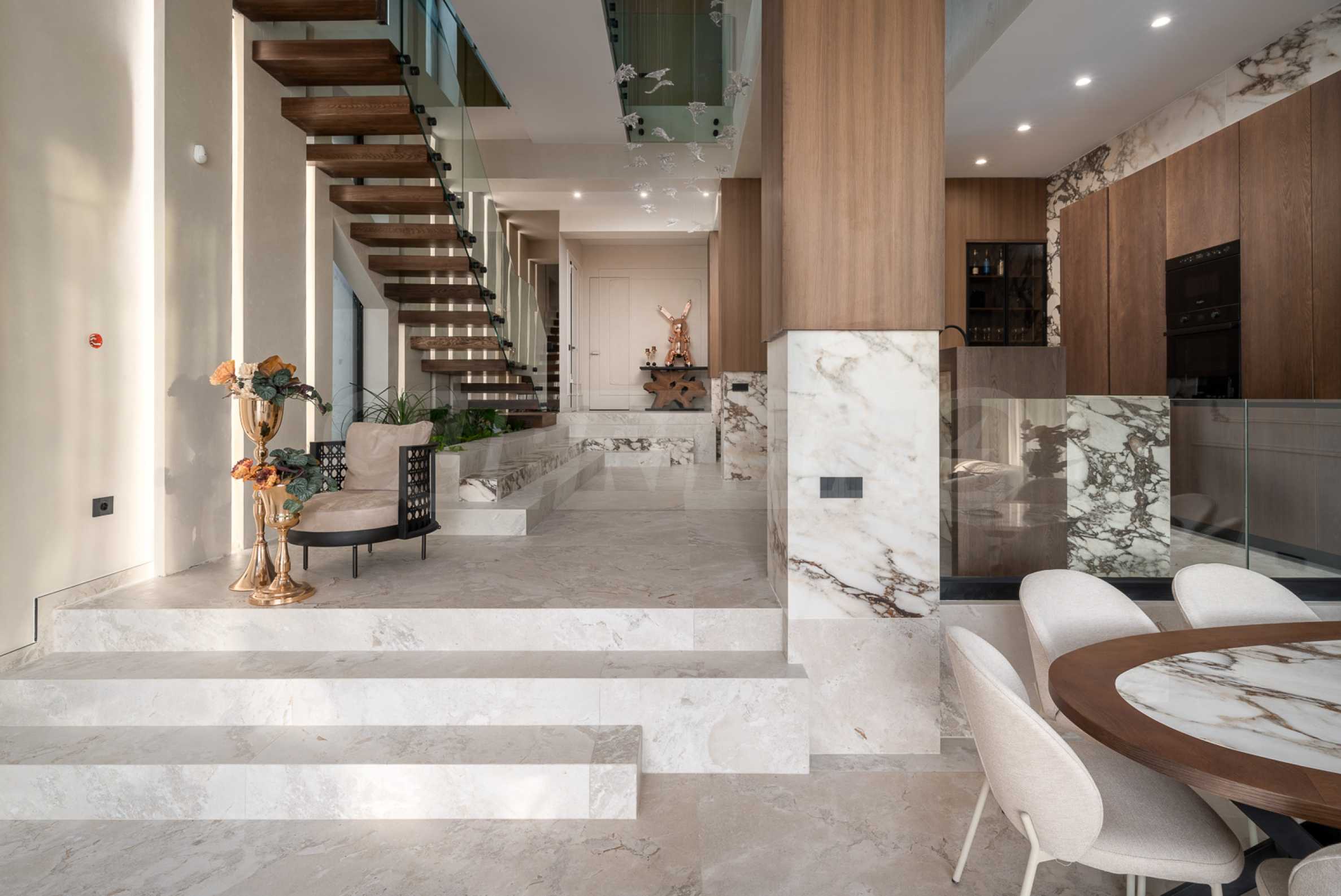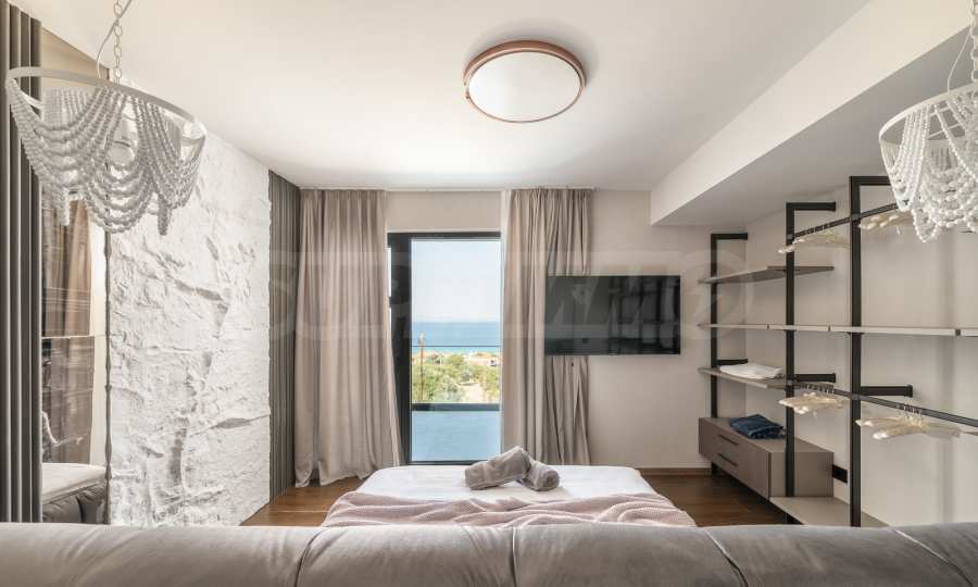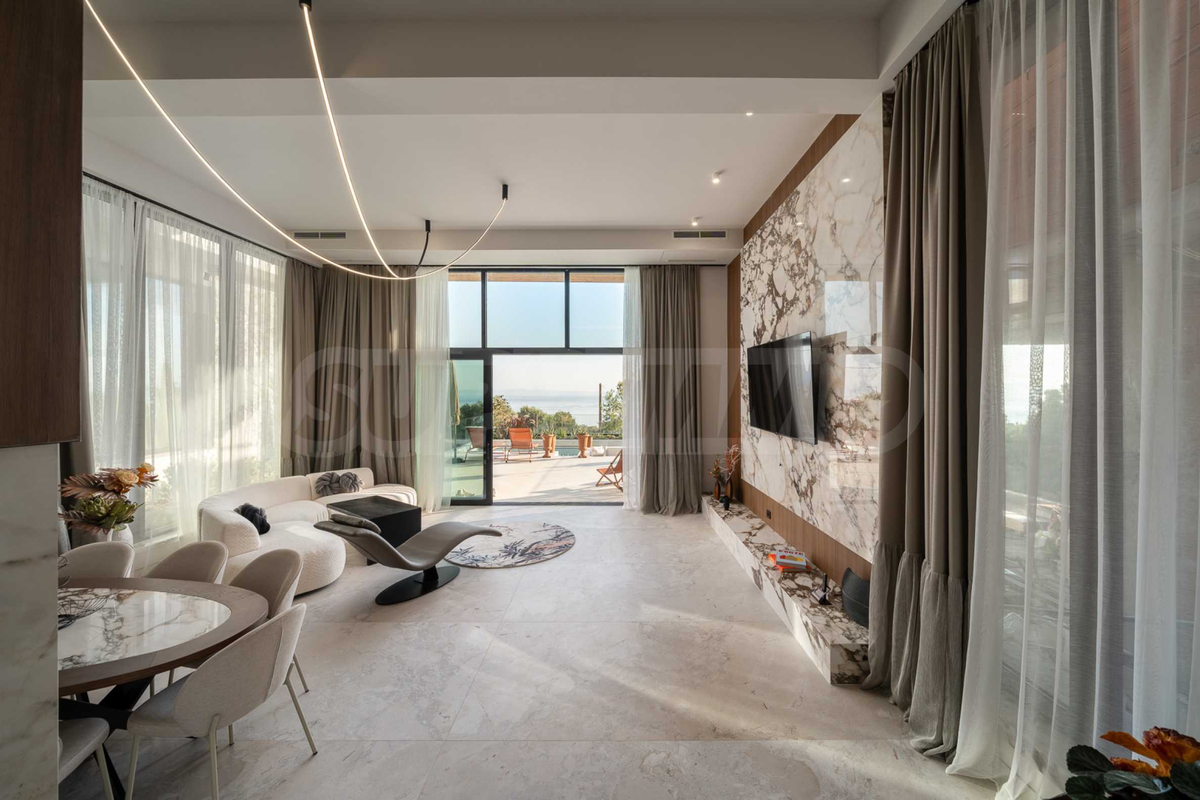 Die Villa besticht durch eine moderne, minimalistische Ästhetik, kombiniert mit mediterranen Nuancen. Das Haus ist als harmonischer Wohnraum konzipiert, der nicht nur für den Sommer, sondern auch für jede andere Jahreszeit geeignet ist. Es ist kompakt, bietet aber gleichzeitig maximal nutzbare und komfortable Wohnräume. Für den Bau wurden hochwertige, moderne Materialien der Spitzenklasse sowie moderne Möbel und Elektrogeräte verwendet.