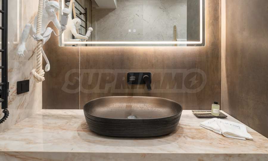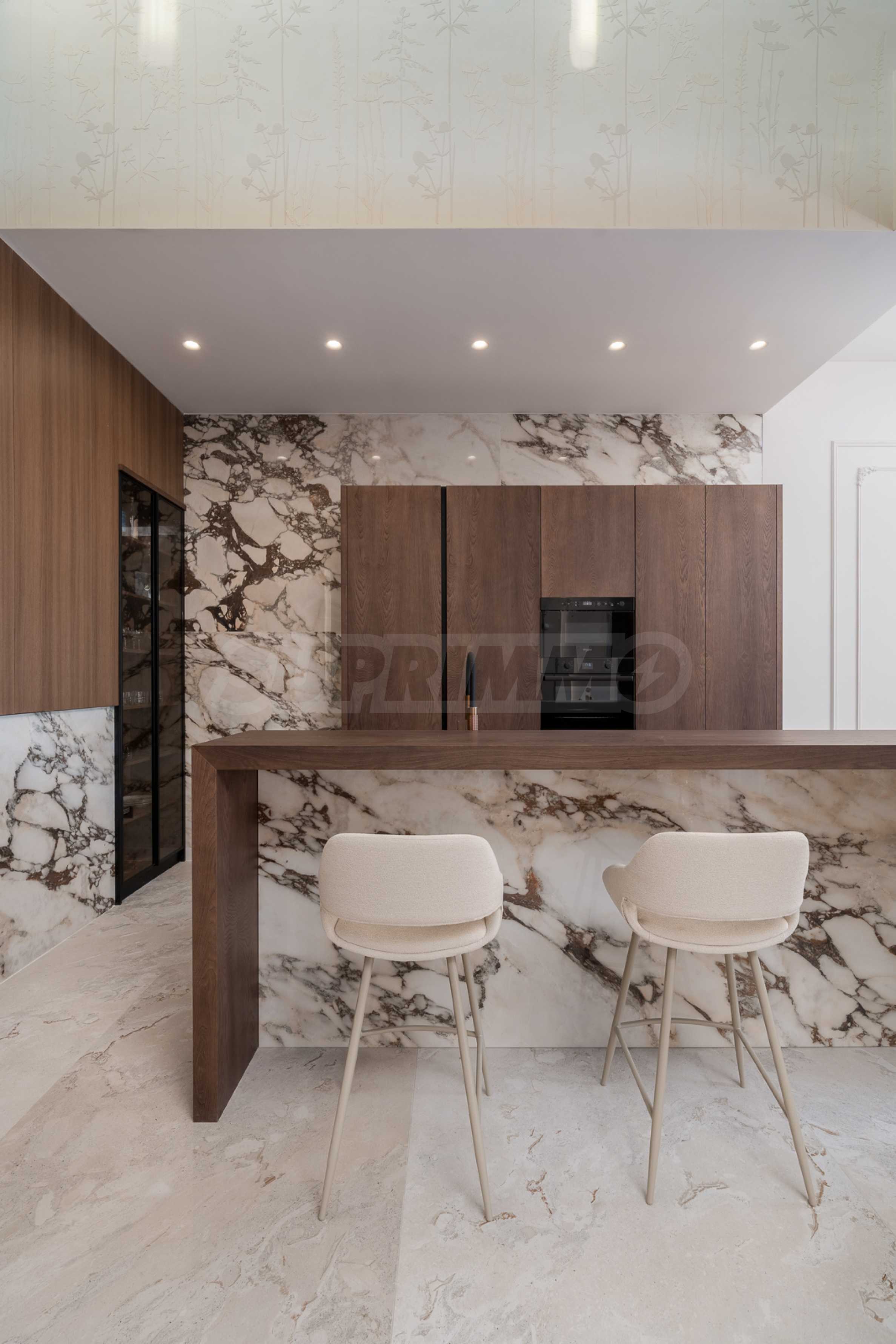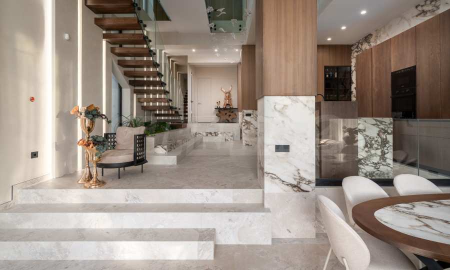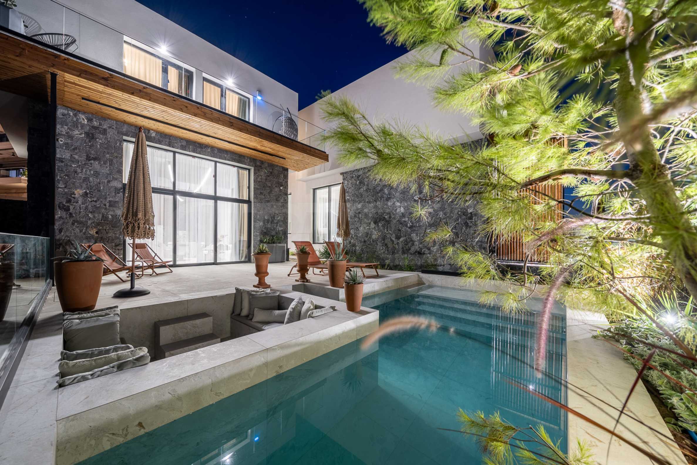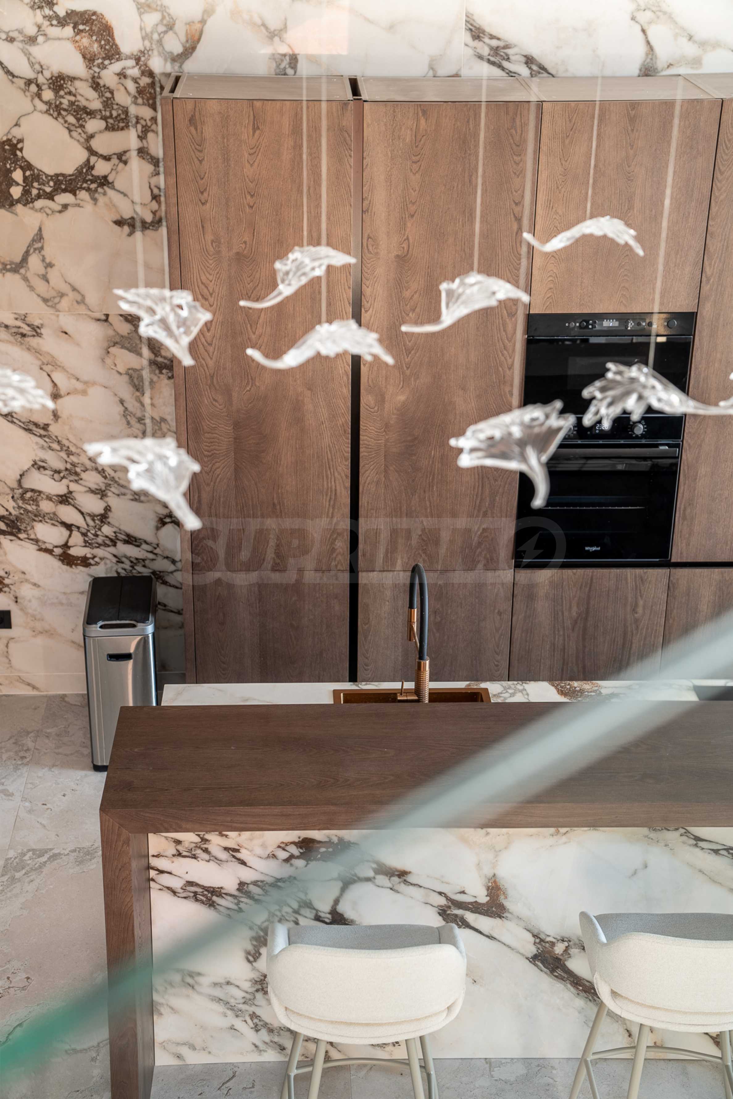Die Villa besticht durch eine moderne, minimalistische Ästhetik, kombiniert mit mediterranen Nuancen. Das Haus ist als harmonischer Wohnraum konzipiert, der nicht nur für den Sommer, sondern auch für jede andere Jahreszeit geeignet ist. Es ist kompakt, bietet aber gleichzeitig maximal nutzbare und komfortable Wohnräume. Für den Bau wurden hochwertige, moderne Materialien der Spitzenklasse sowie moderne Möbel und Elektrogeräte verwendet.