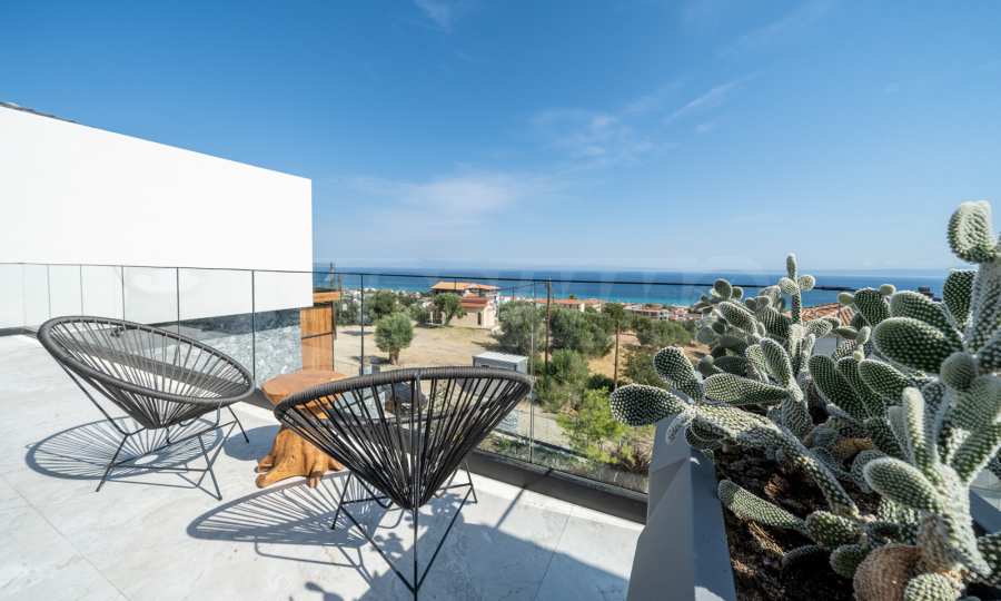 Wir bieten Ihnen eine Investition in eine luxuriöse, moderne Villa in Meeresnähe in einem der beliebtesten Dörfer auf Chalkidiki, Polychrono!