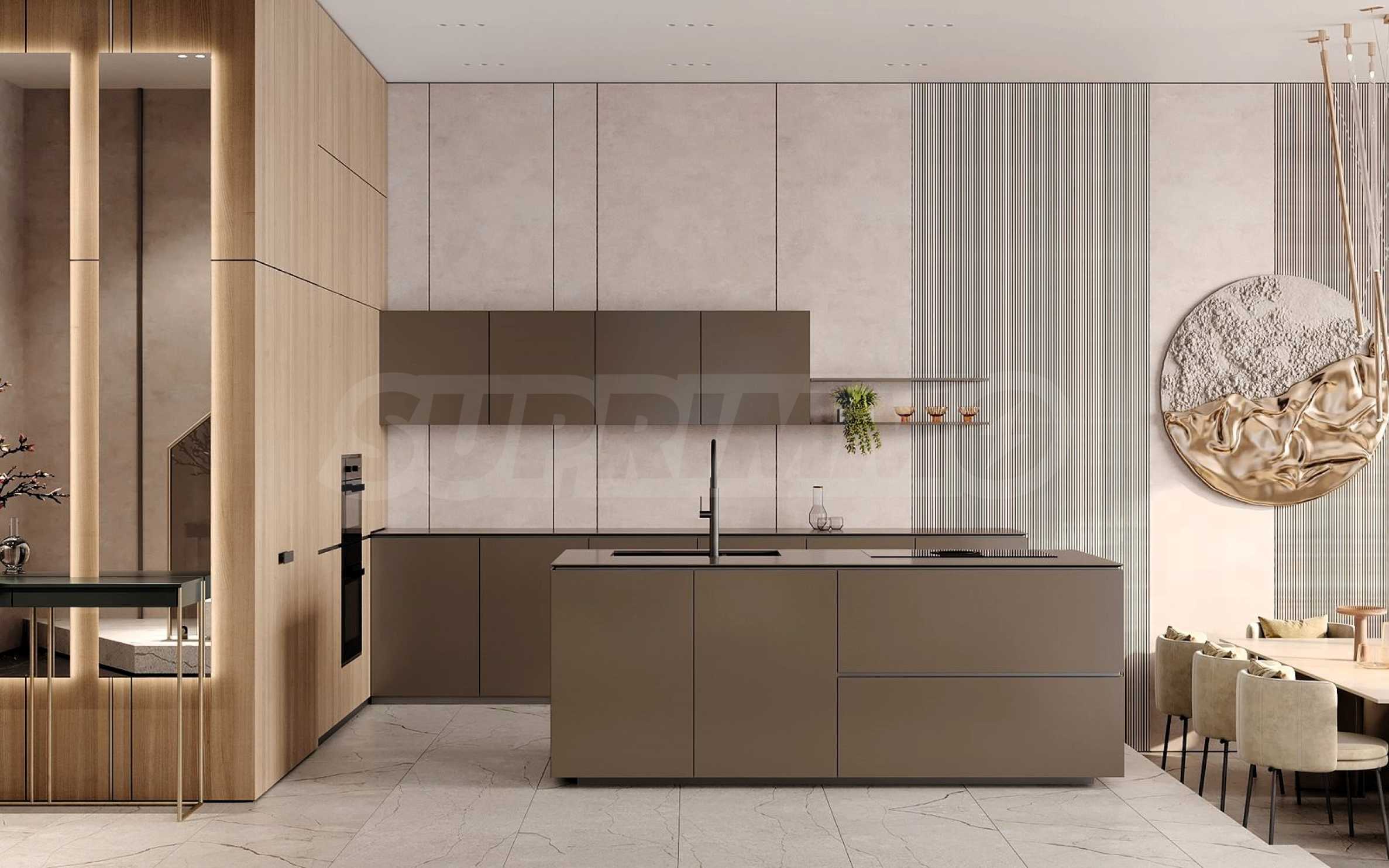 Die Villa verfügt über eine moderne, minimalistische Ästhetik, kombiniert mit Schattierungen des mediterranen Stils. Das Haus ist als harmonischer Wohnraum konzipiert, der nicht nur für den Sommer, sondern auch für jede andere Jahreszeit geeignet ist. Es hat kompakte Abmessungen, aber gleichzeitig maximal nützliche und komfortable Wohnräume. Für den Bau sind hochwertige moderne Materialien der Spitzenklasse, außerdem moderne Möbel und Elektrogeräte vorgesehen.