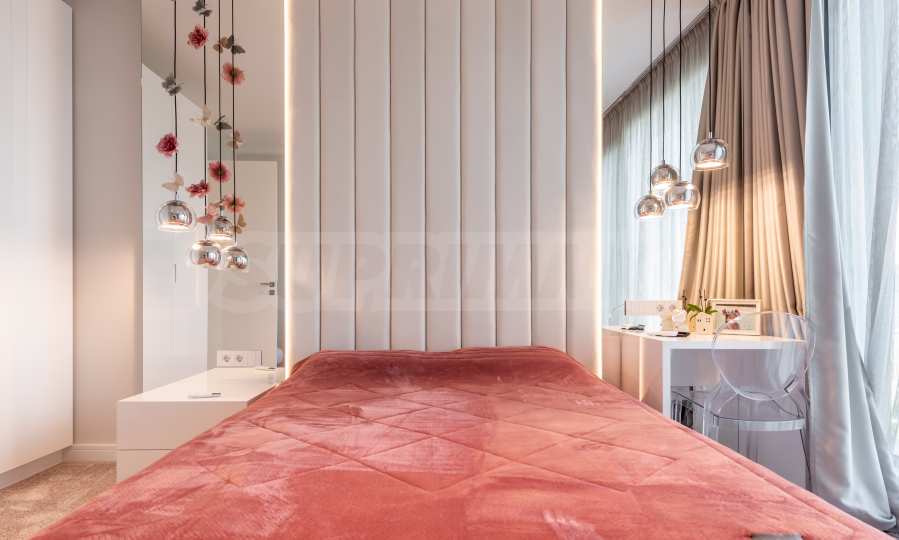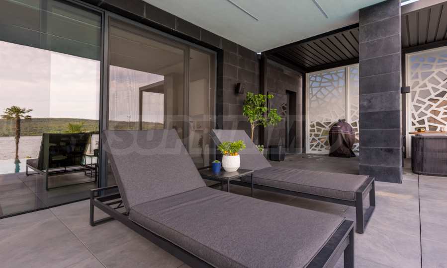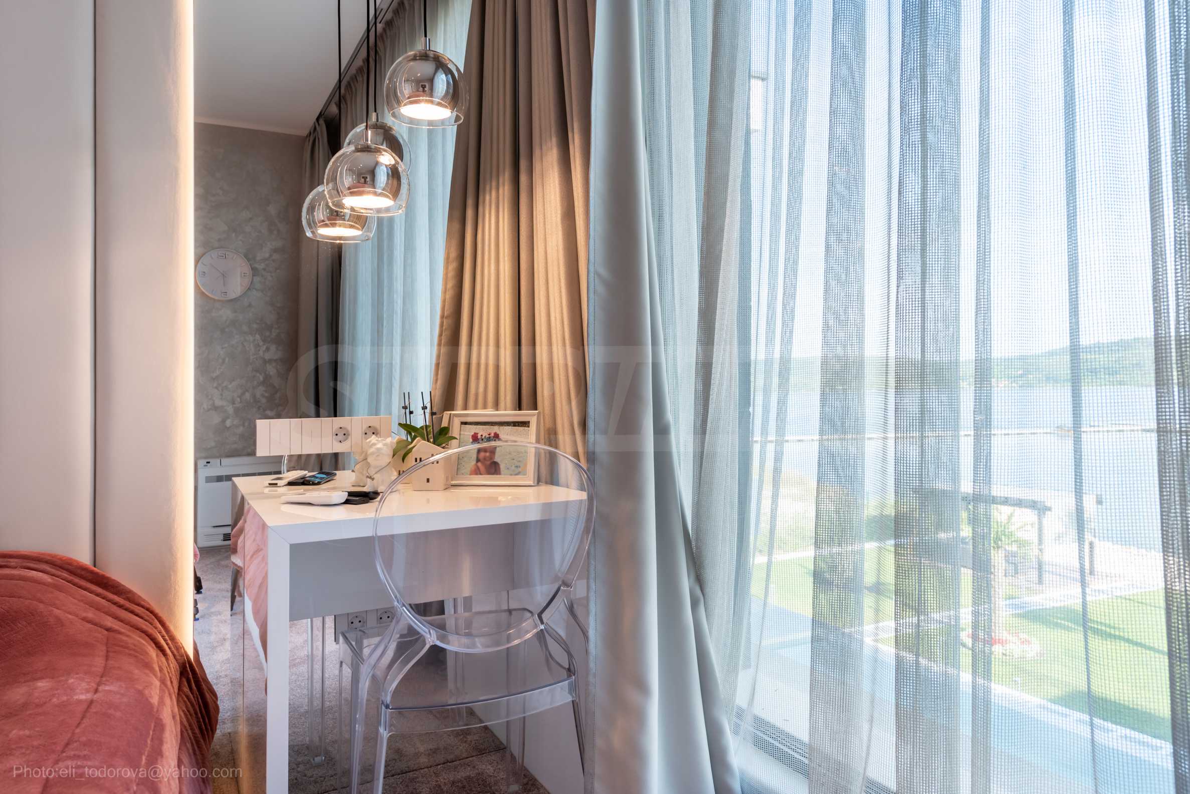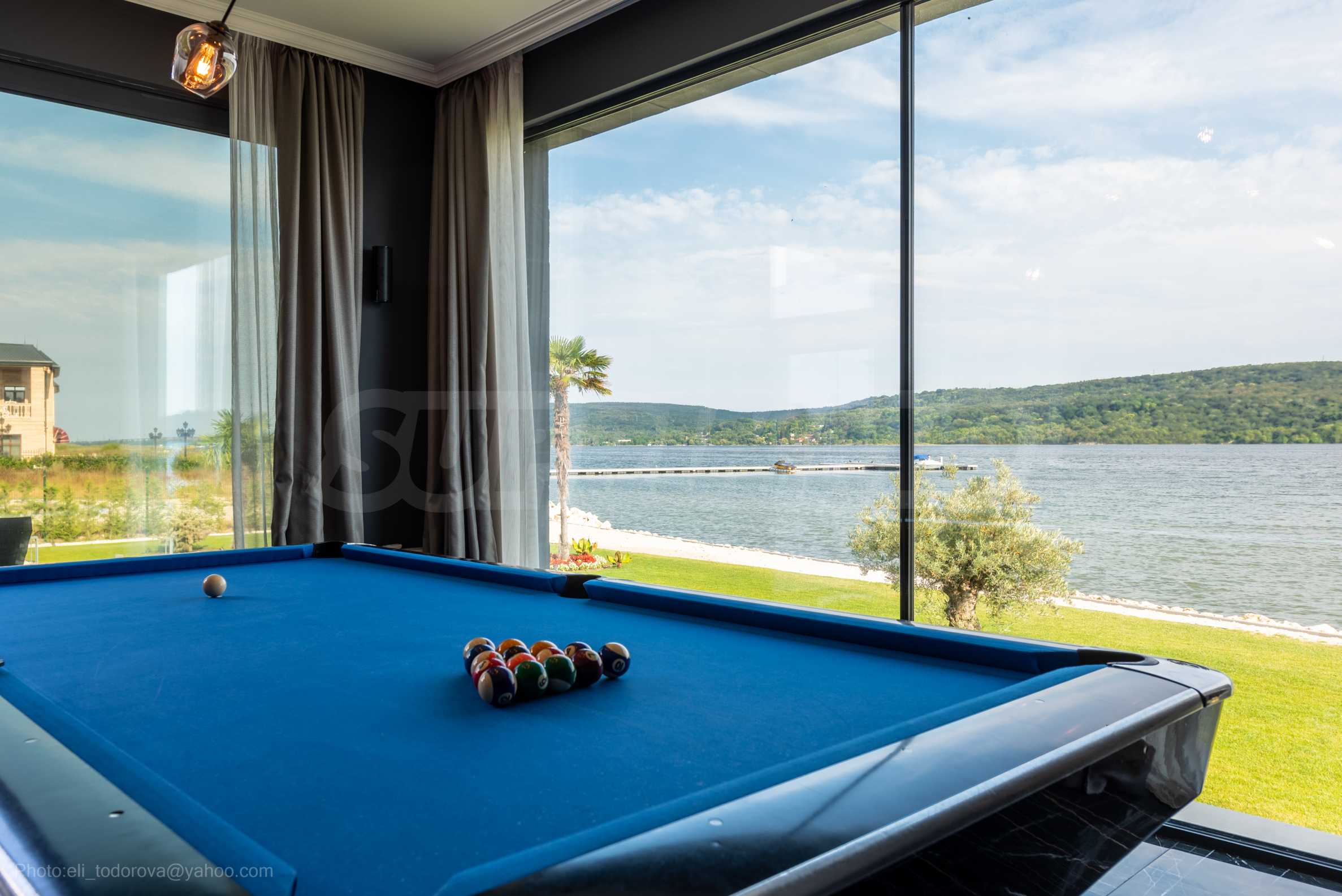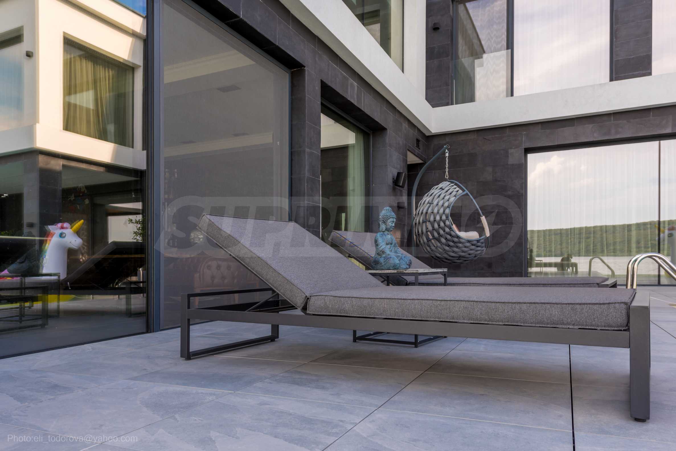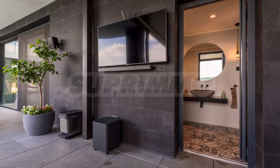 Das bemerkenswerte Haus liegt direkt am Ufer des Varna-Sees und verfügt über einen eigenen Sandstrand mit direktem Zugang über einen Bootssteg. Das Anwesen beeindruckt durch seine spektakuläre moderne Fassade, die abends elegant beleuchtet wird und sich harmonisch in den Sonnenuntergang und das Grün des Gartens einfügt. Das Interieur ist im Einklang mit dem Äußeren gewählt, modern und stilvoll und spiegelt gleichzeitig ruhigen Luxus wider und unterstreicht den Charakter des Hauses. Die Sicherheit und die friedliche Atmosphäre des Anwesens sind sehr hoch und ermöglichen ungestörtes und vertrauliches Wohnen mit Verbindung zur umgebenden Natur.