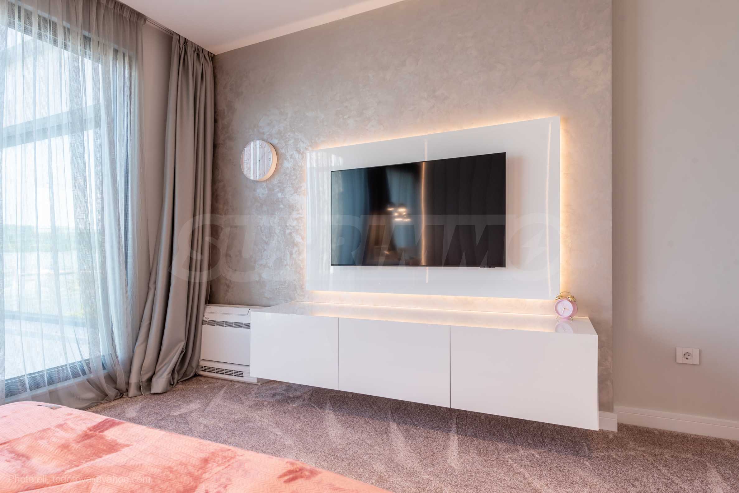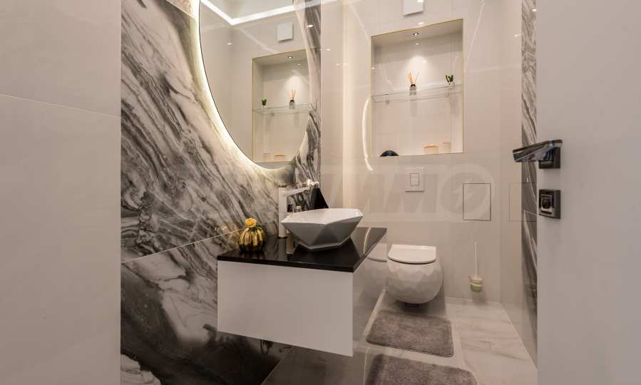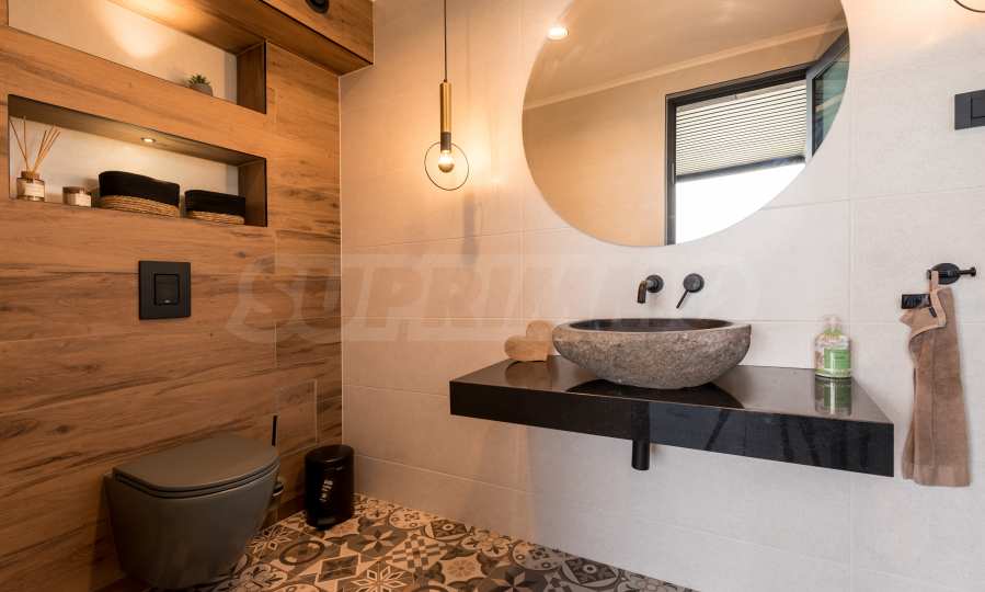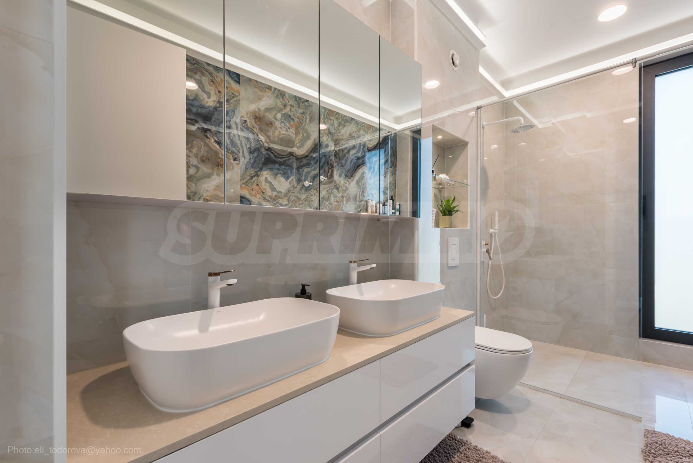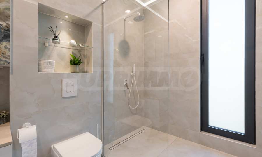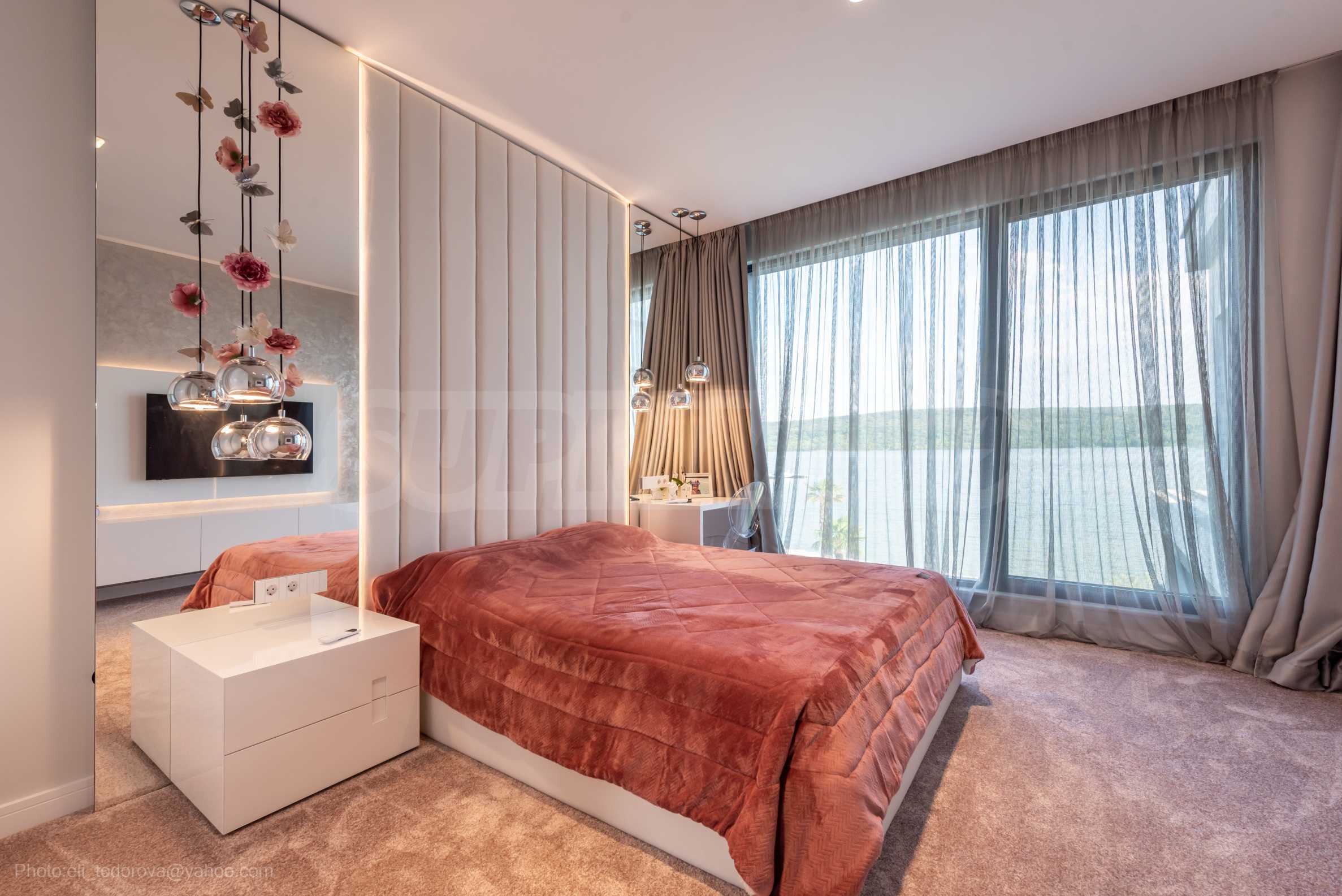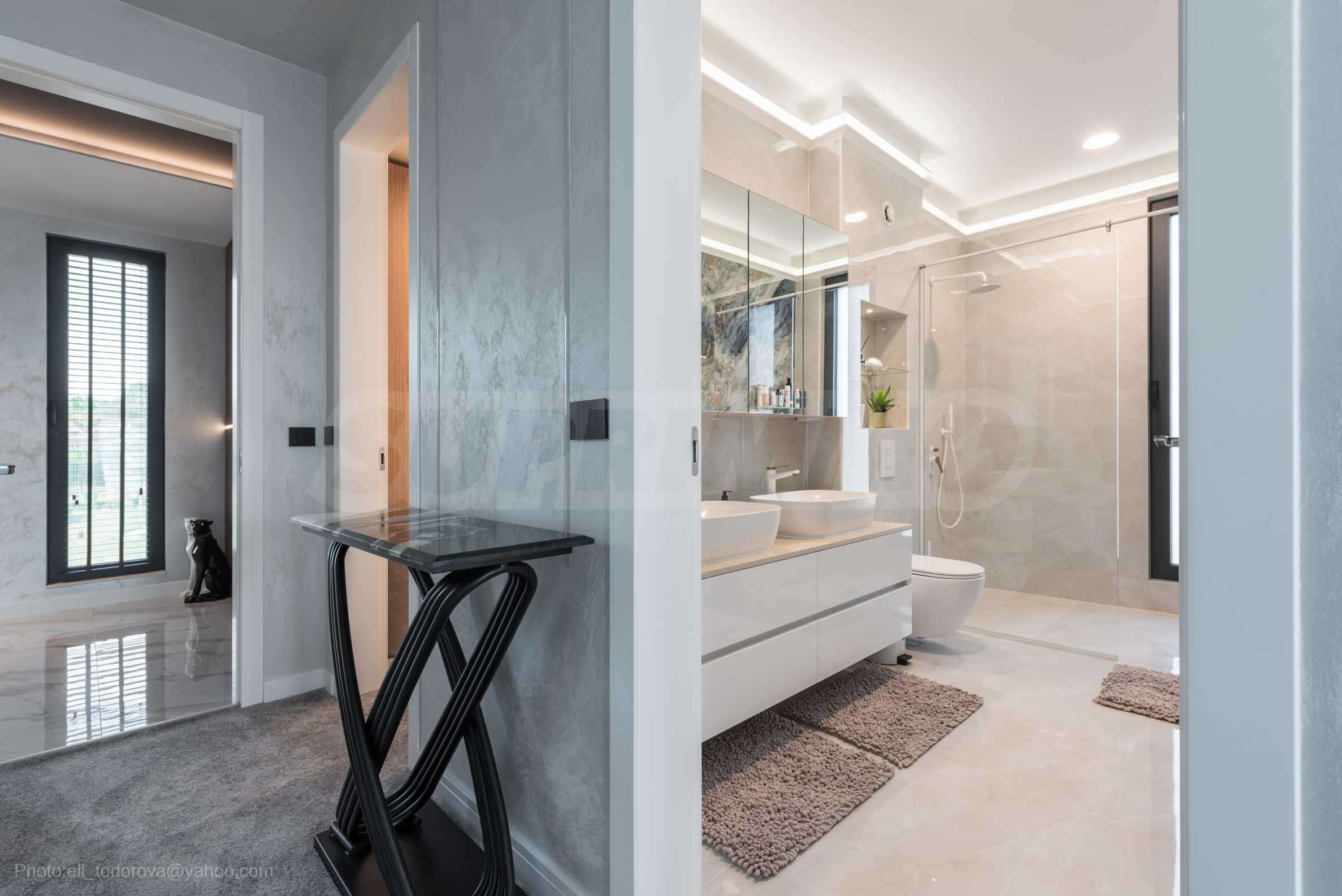 Das bemerkenswerte Haus liegt direkt am Ufer des Varna-Sees und verfügt über einen eigenen Sandstrand mit direktem Zugang über einen Bootssteg. Das Anwesen beeindruckt durch seine spektakuläre moderne Fassade, die abends elegant beleuchtet wird und sich harmonisch in den Sonnenuntergang und das Grün des Gartens einfügt. Das Interieur ist im Einklang mit dem Äußeren gewählt, modern und stilvoll und spiegelt gleichzeitig ruhigen Luxus wider und unterstreicht den Charakter des Hauses. Die Sicherheit und die friedliche Atmosphäre des Anwesens sind sehr hoch und ermöglichen ungestörtes und vertrauliches Wohnen mit Verbindung zur umgebenden Natur.