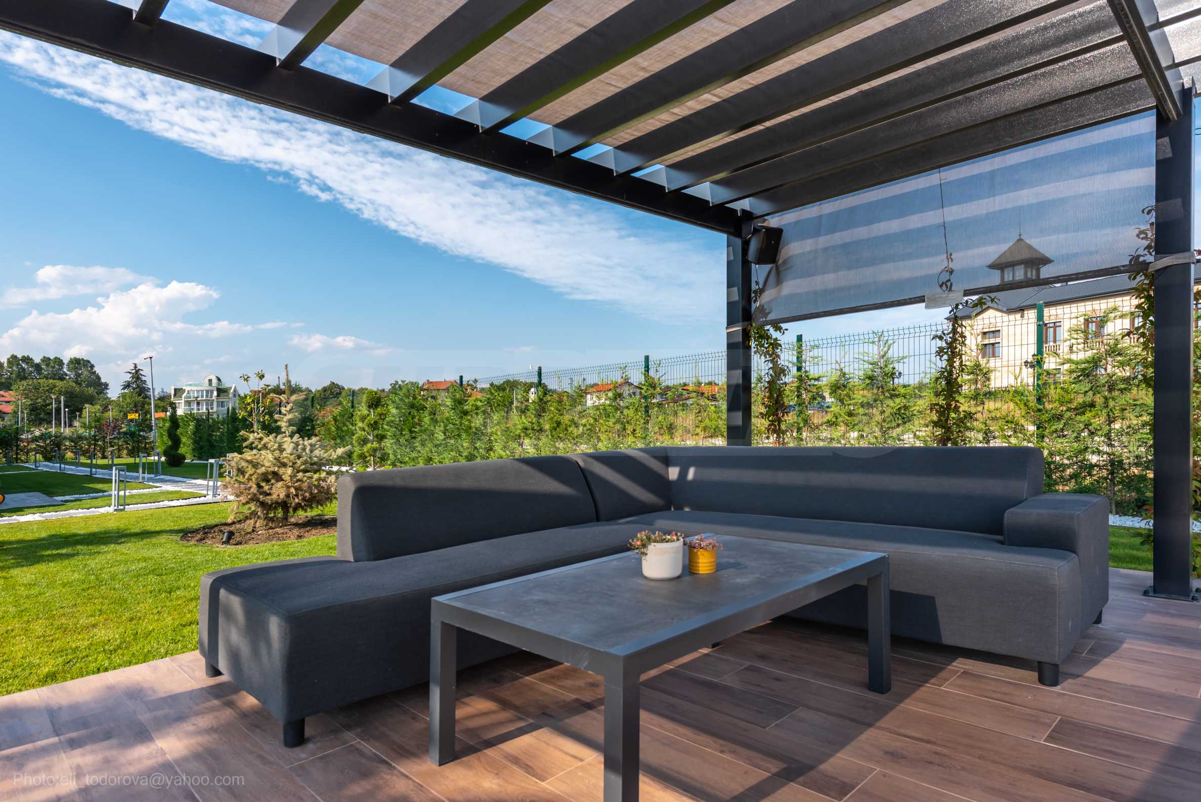 Die Villa wurde Ende 2022 fertiggestellt und verfügt über eine massive Stahlbetonkonstruktion. Das Anwesen verfügt über einen Garten mit einer Fläche von 1448 qm. Die bebaute Fläche beträgt 568,52 qm, zusammen mit einem zusätzlichen Gebäude für eine Garage und ein Lagerhaus mit einer Fläche von 151 qm, insgesamt 719,52 qm.