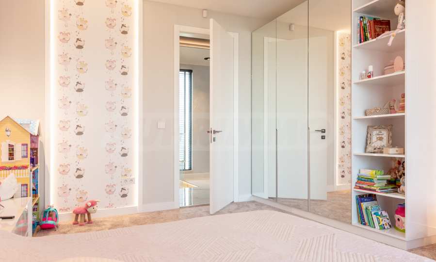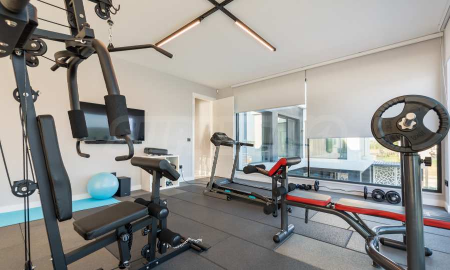 Auf der zweiten Ebene des Hauses: Hauptschlafzimmer mit separatem Kleiderschrank und Badezimmer, insgesamt 51 qm, 3 weitere separate Schlafzimmer, Waschküche, kombiniertes Doppelbad, Fitnessraum 30 qm mit Zugang zu einer Terrasse von fast 30 qm.