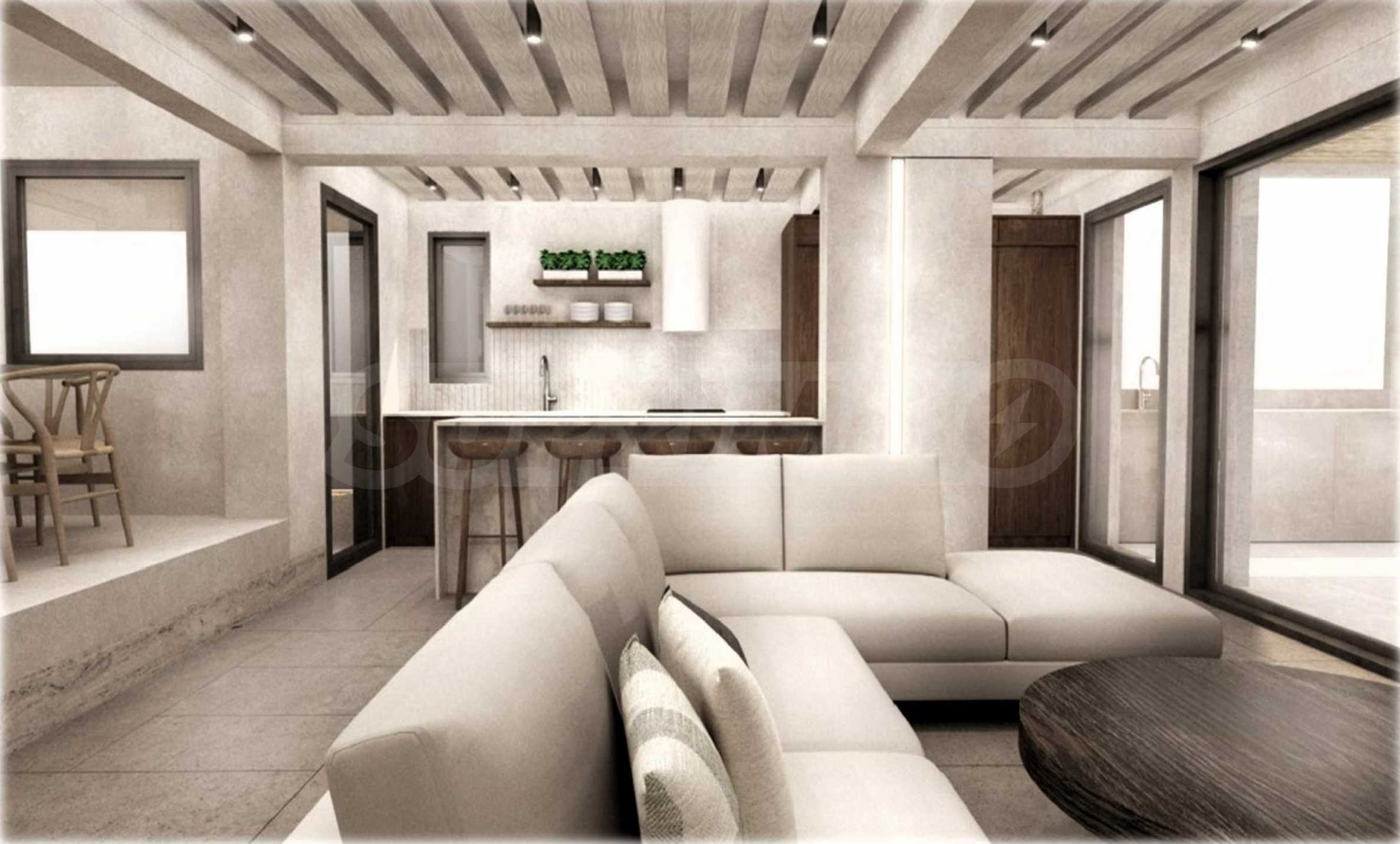 Wir haben eine geräumige Terrasse mit Außengrill entworfen, damit Sie während Ihres Abendessens die Sonnenuntergänge genießen oder einfach bei einem Glas Wein oder einem Cocktail zusehen können, wie die Sonne im Wasser der Ägäis versinkt.