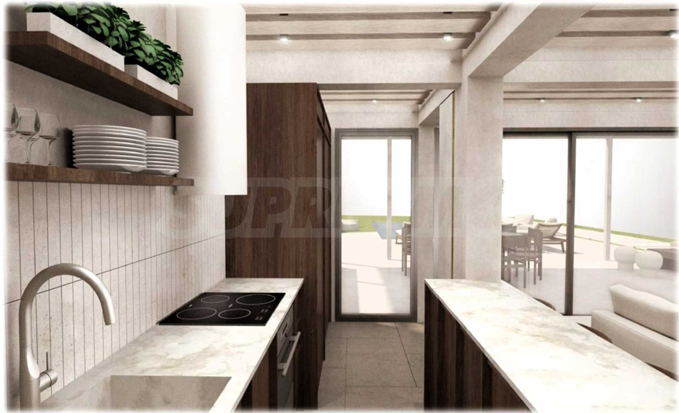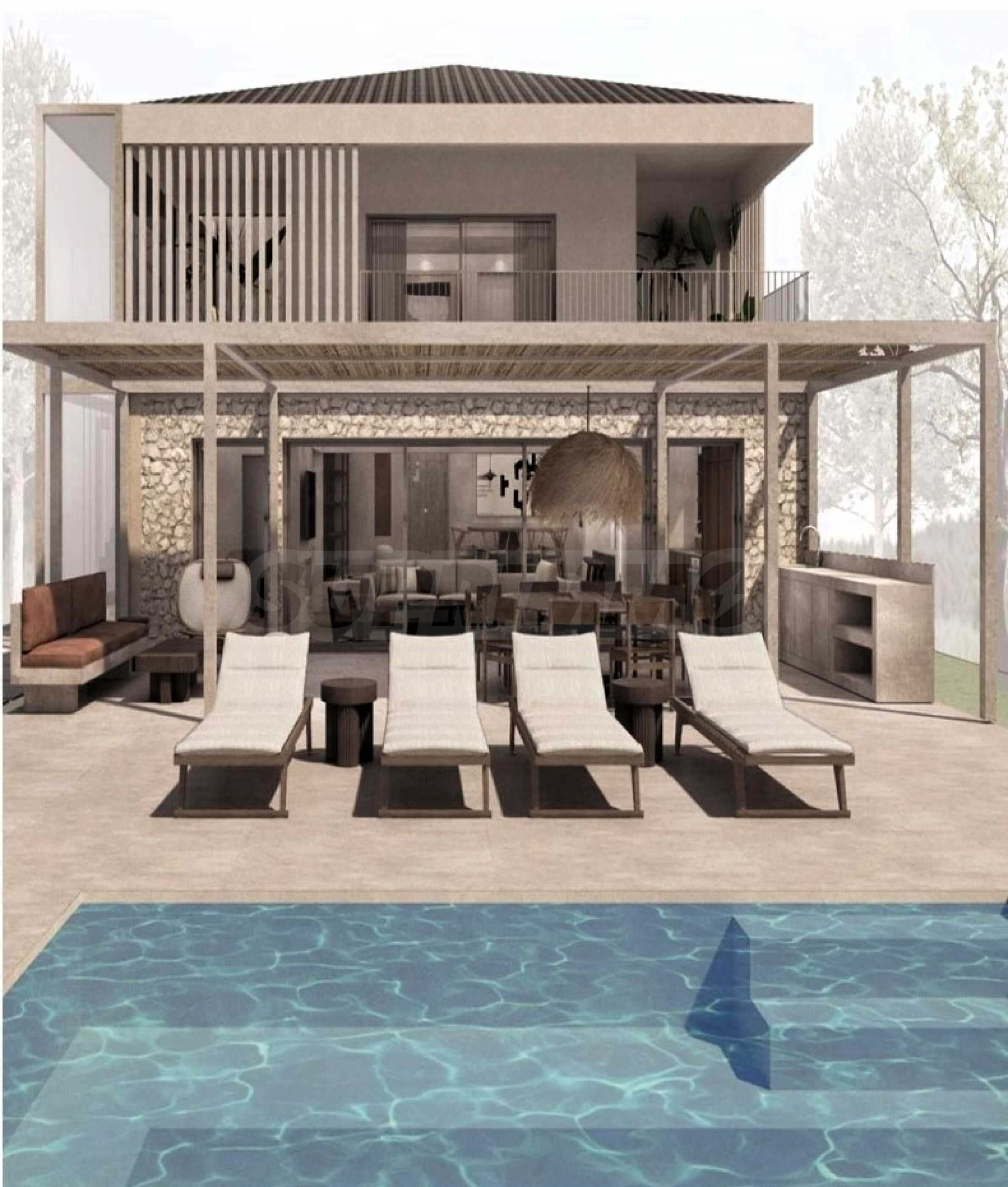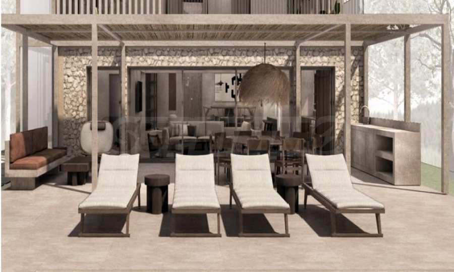 Die Villa liegt auf einem 909 Quadratmeter großen Landschaftsgrundstück direkt am Strand. Das Haus ist 189 qm groß. mit einem fantastischen Wohnzimmer, einer Küche und 5 Doppelzimmern, jedes mit eigenem Bad.
