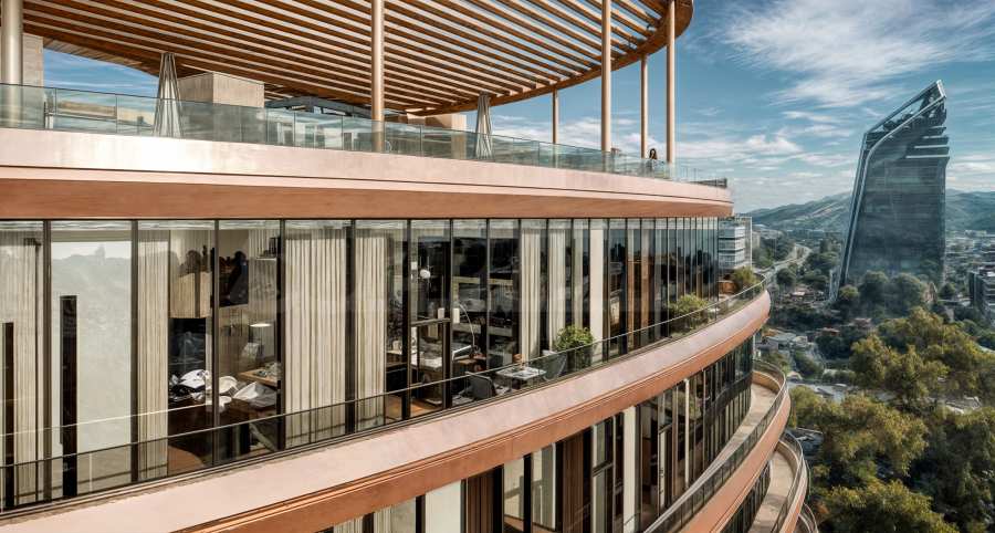 Mit seinen fließenden, stromlinienförmigen Formen, den harmonisch ineinander übergehenden Räumen, dem reichlichen Lichteinfall und dem großzügigen Raumgefühl verkörpert der S-Tower die neue Architekturästhetik des 21. Jahrhunderts. Er vereint Eleganz und Brillanz, sticht hervor, bereichert das Umfeld und trägt zur Gesamtentwicklung des Gebiets bei. Das besondere Material der massiven Fassadenelemente, das an Roségold erinnert, macht das Projekt einzigartig in dieser Region Europas und ergänzt mit seinem Glanz und dem sich im Laufe des Tages verändernden Erscheinungsbild die dynamischen Formen des Gebäudes.