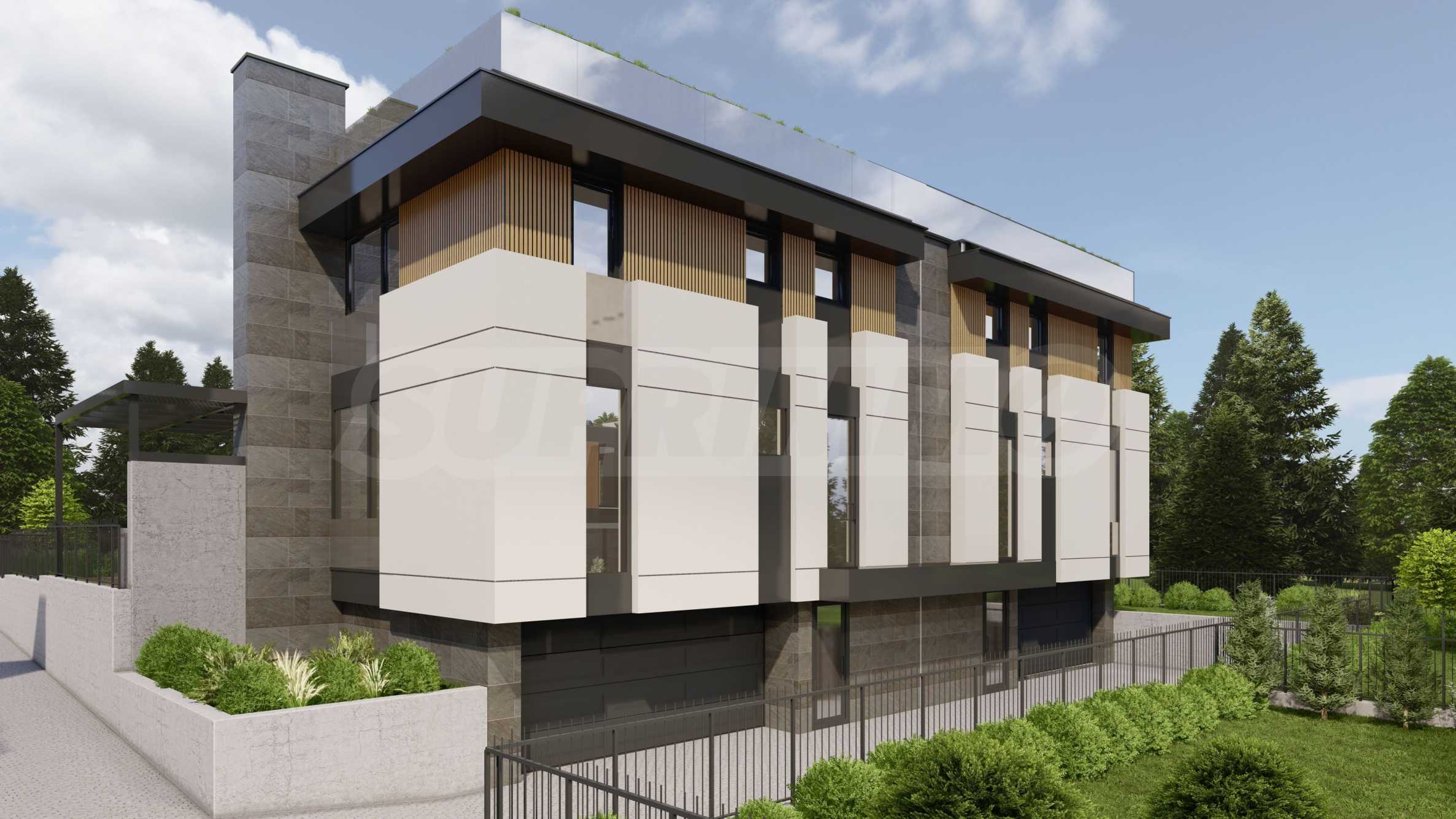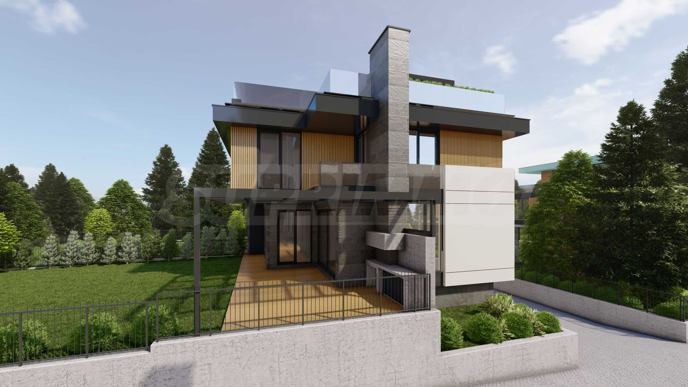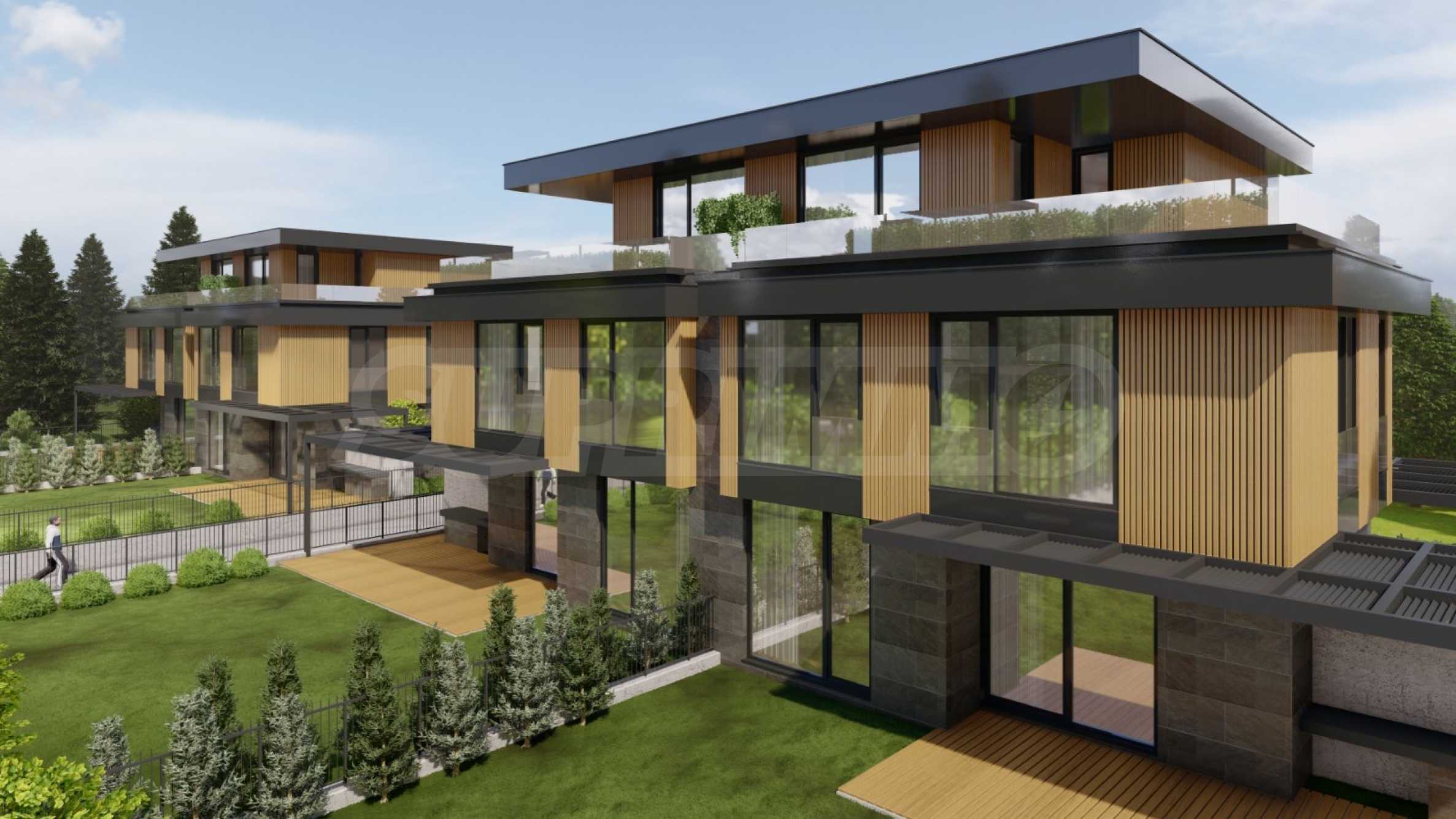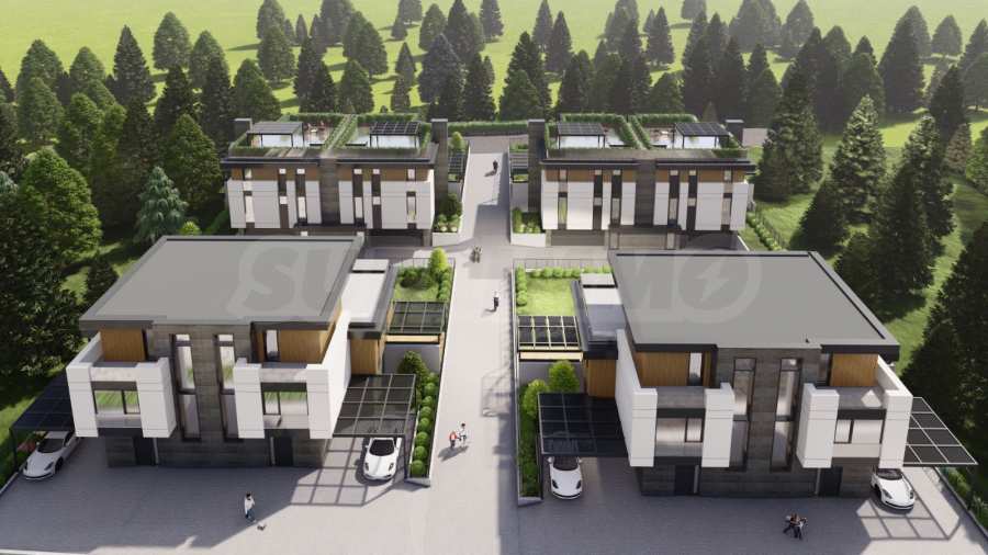Die Häuser verfügen über eine moderne Architektur und funktionale Aufteilung, auf zwei und drei Etagen und unabhängige Gartenbereiche, drei/vier Schlafzimmer, drei Badezimmer, eine Garage für zwei Autos, mit einer Außenterrasse und einem Grillplatz.