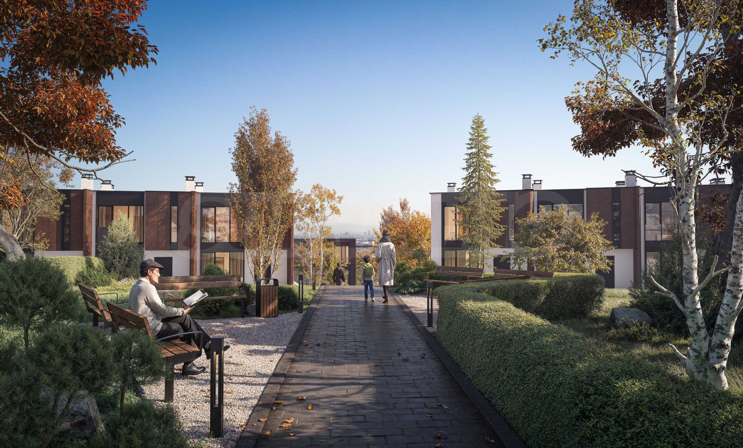 - drei dreistöckige Mehrfamilienhäuser – Wohnungen mit drei Schlafzimmern in den obersten Stockwerken und Wohnungen mit vier Schlafzimmern, jeweils mit Hof oder Terrasse;