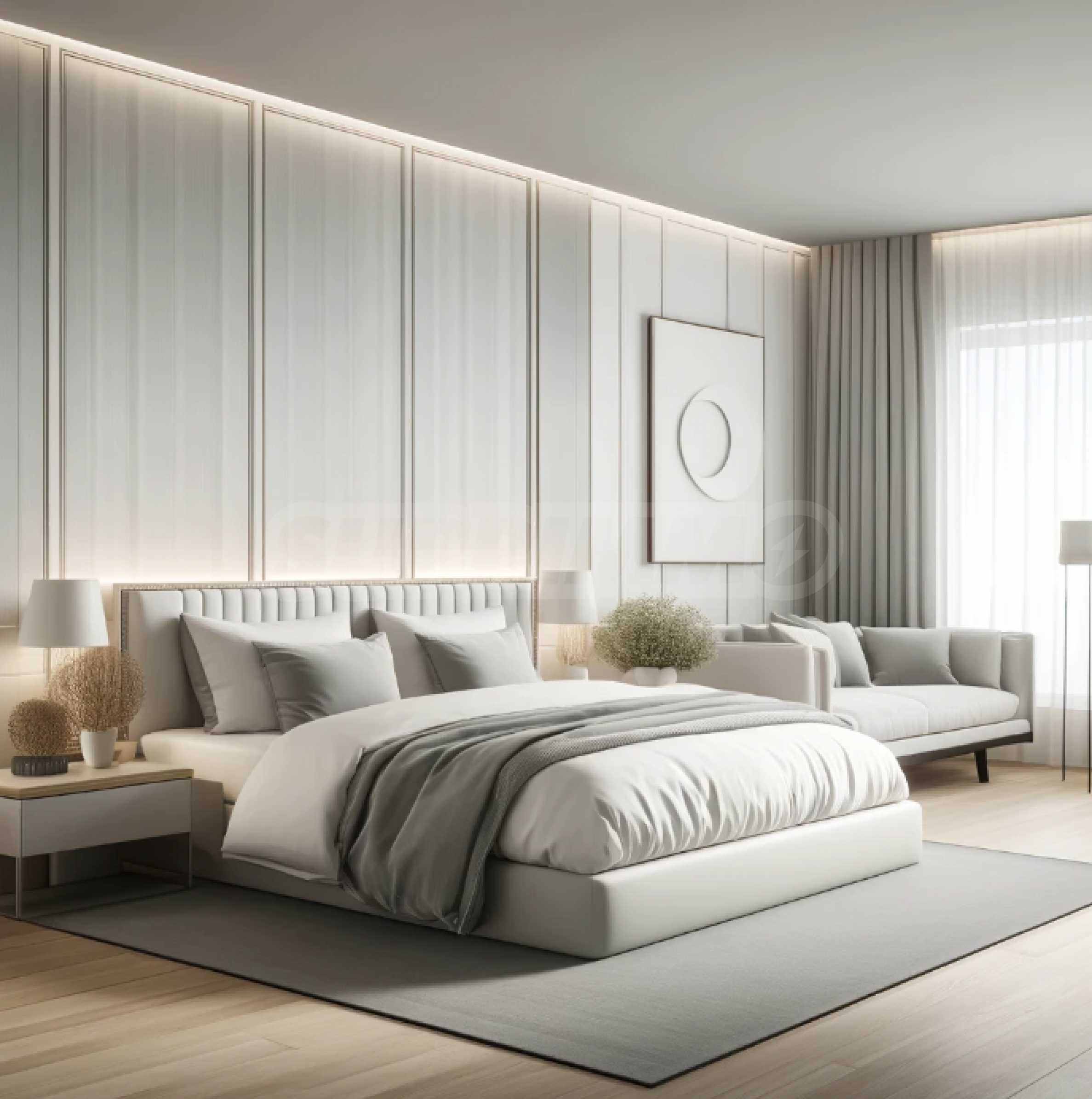 - Die letzte Ebene ist für ein großes Hauptschlafzimmer vorbereitet.