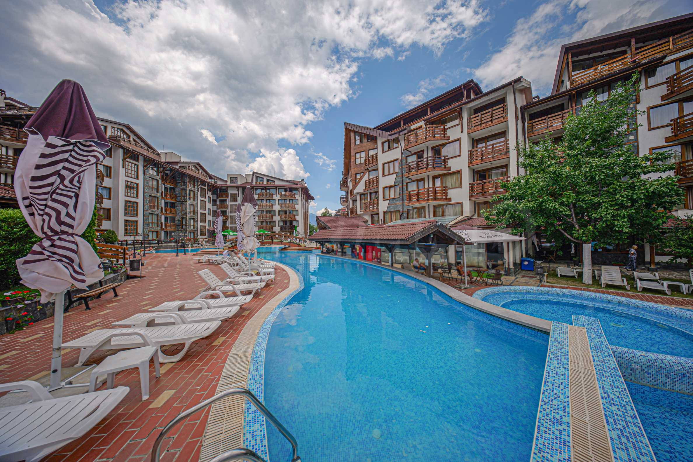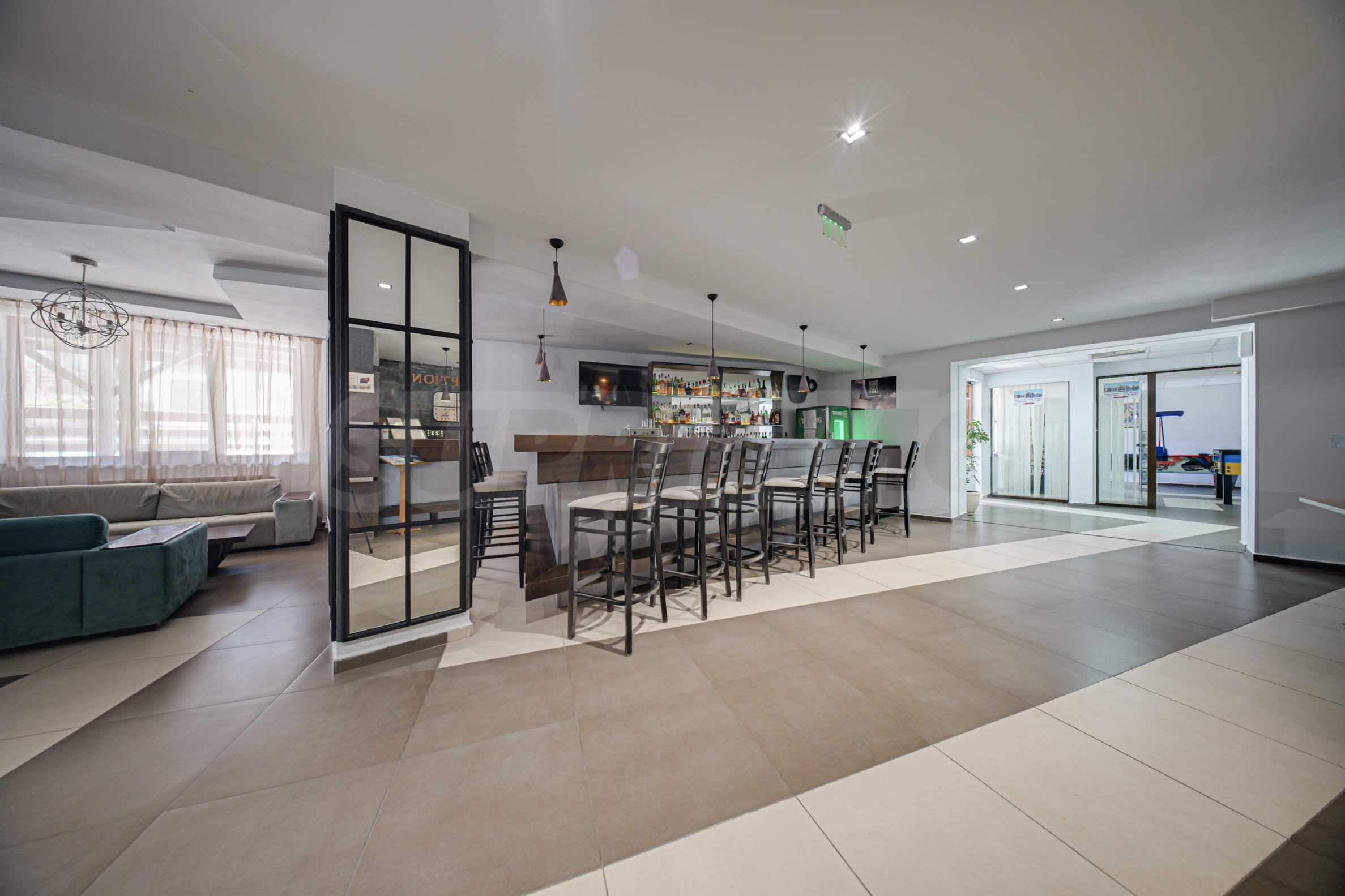 - Elite-Lage – im attraktivsten Teil des Resorts, nicht weit von der Gondelbahn und dem neuen Einkaufszentrum Mall Bansko entfernt;