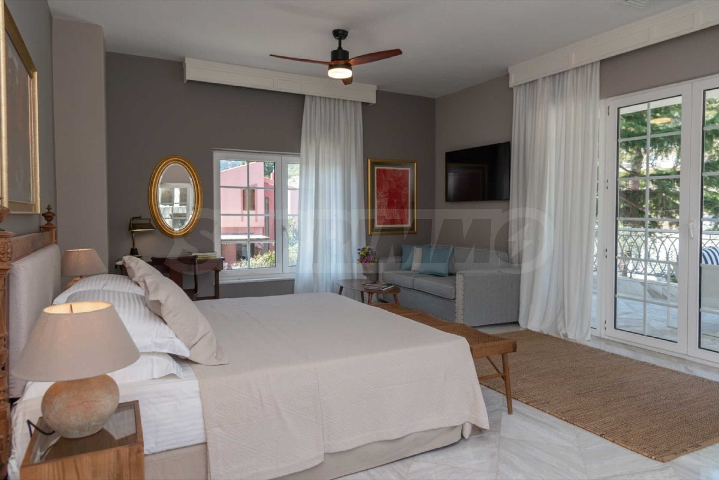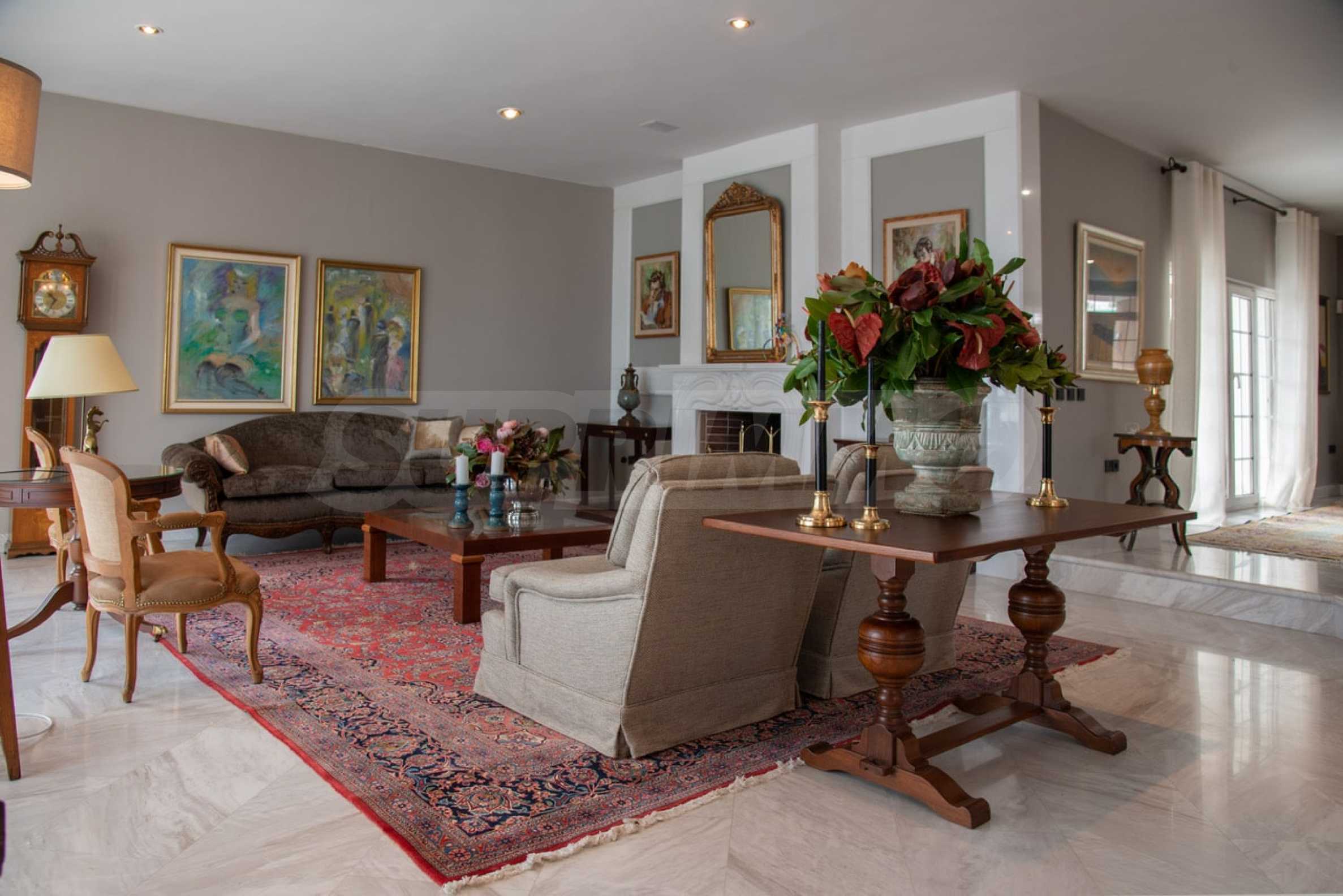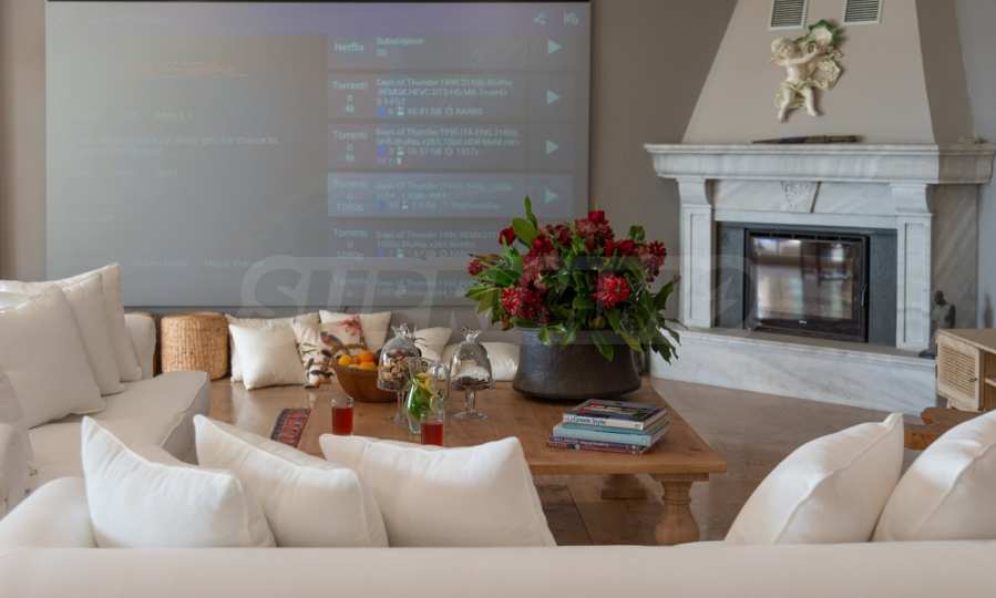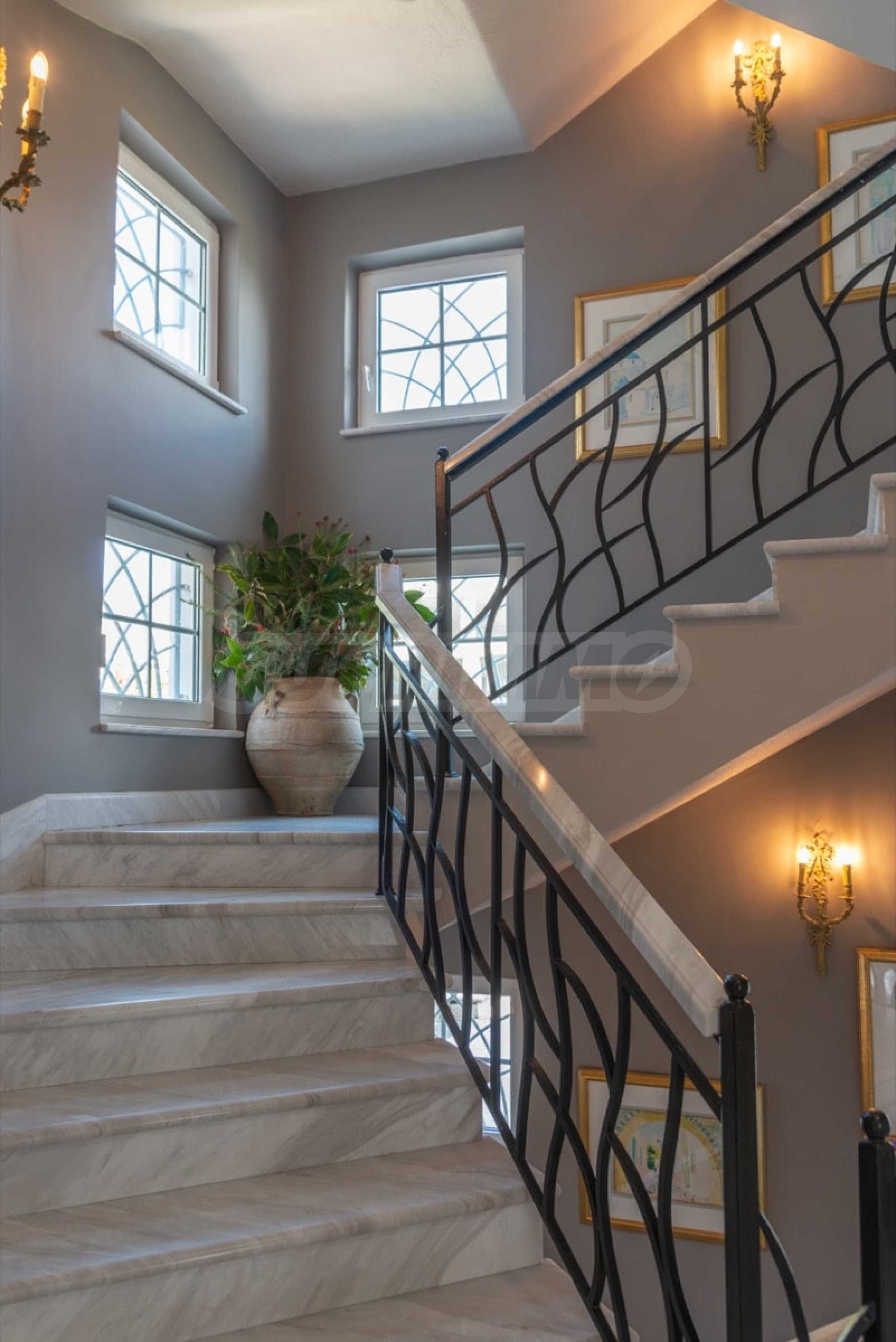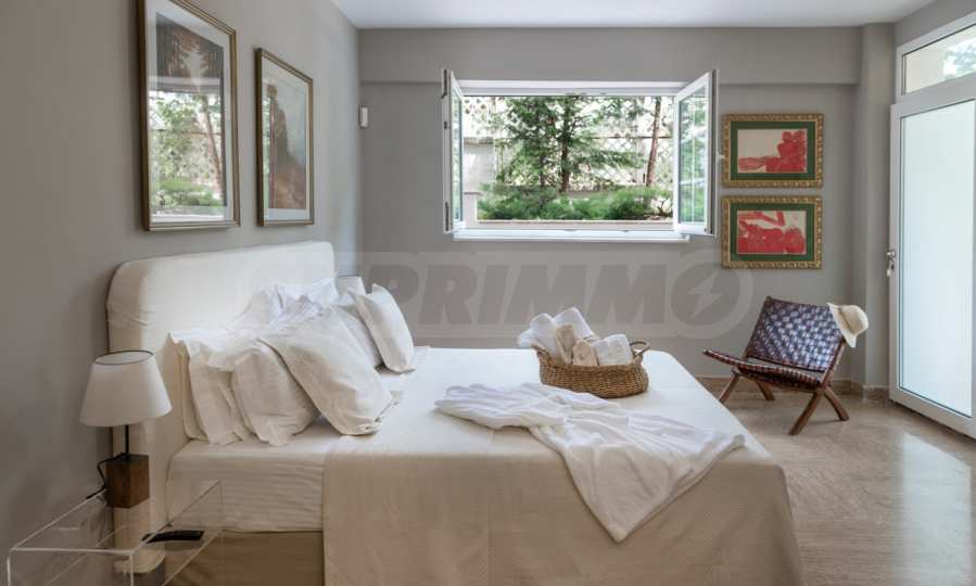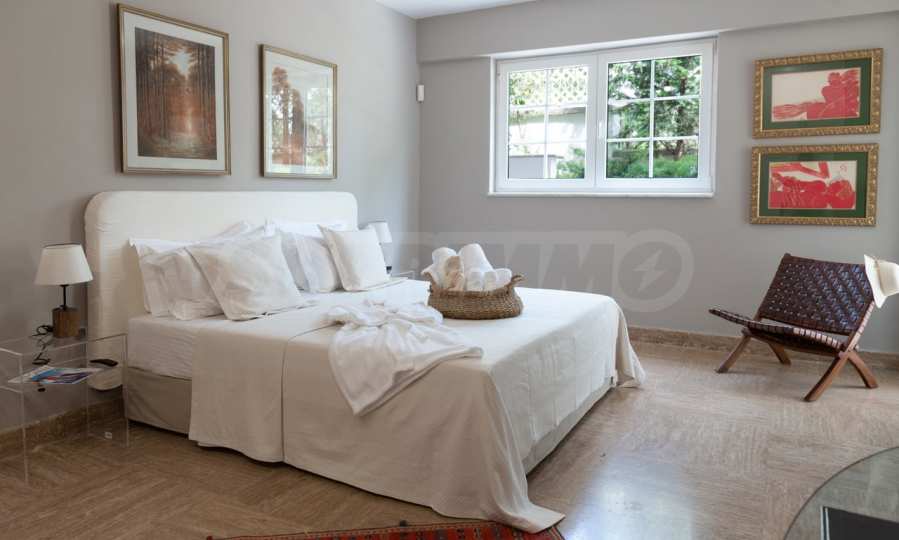 Kommen Sie und genießen Sie dieses herrliche Anwesen mit 6 Schlafzimmern, 8 Badezimmern, 2 Wohnzimmern und 2 voll ausgestatteten Küchen sowie einem Spielzimmer im Souterrain. Fünf der Schlafzimmer verfügen über ein eigenes Bad sowie einen Ruhebereich im Freien, eine Terrasse oder Veranda. Im perfekt gepflegten Garten mit verschiedenen Baumarten, Palmen, Pinien, Oliven, Orangen und Zitronen finden Sie einen Swimmingpool, eine Sommerküche mit Pizzaofen und Grill, ein Esszimmer und unzählige Ecken, die zum Genießen einladen die atemberaubende Aussicht auf das Ägäische Meer.