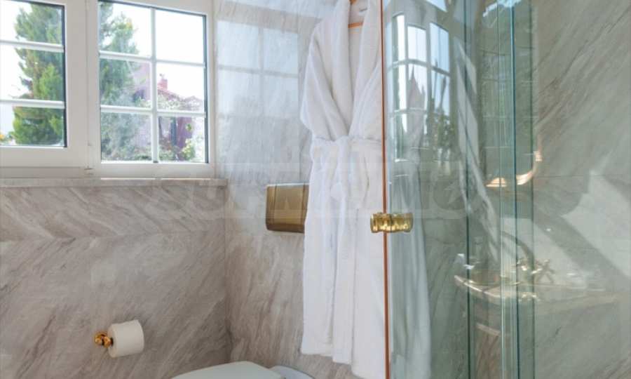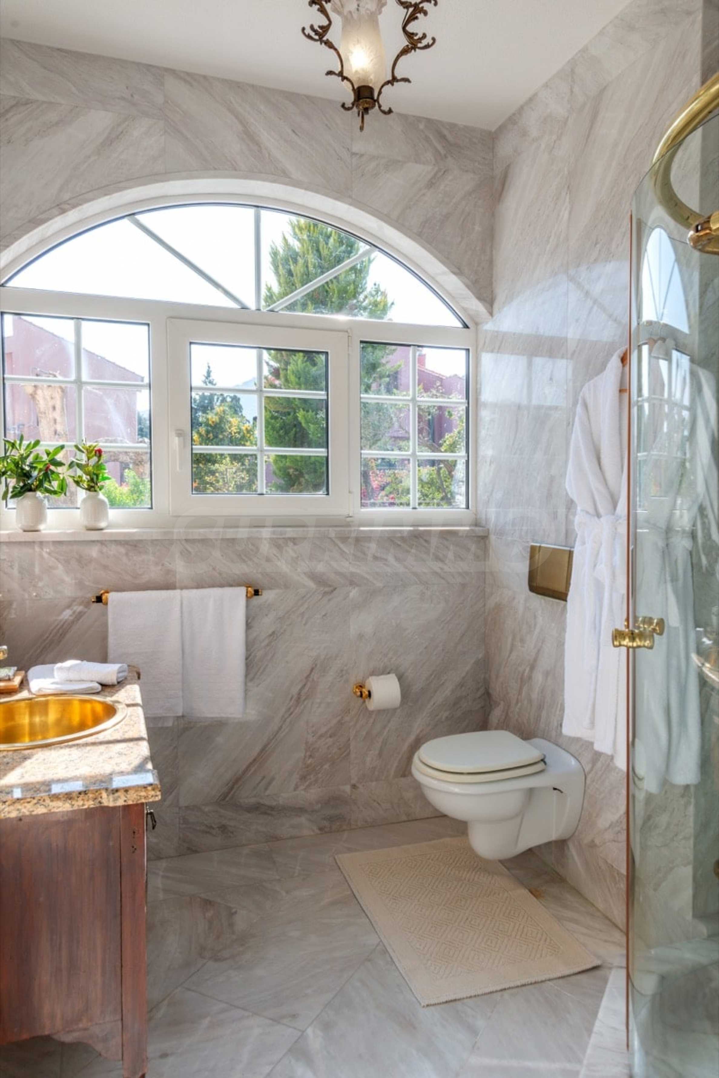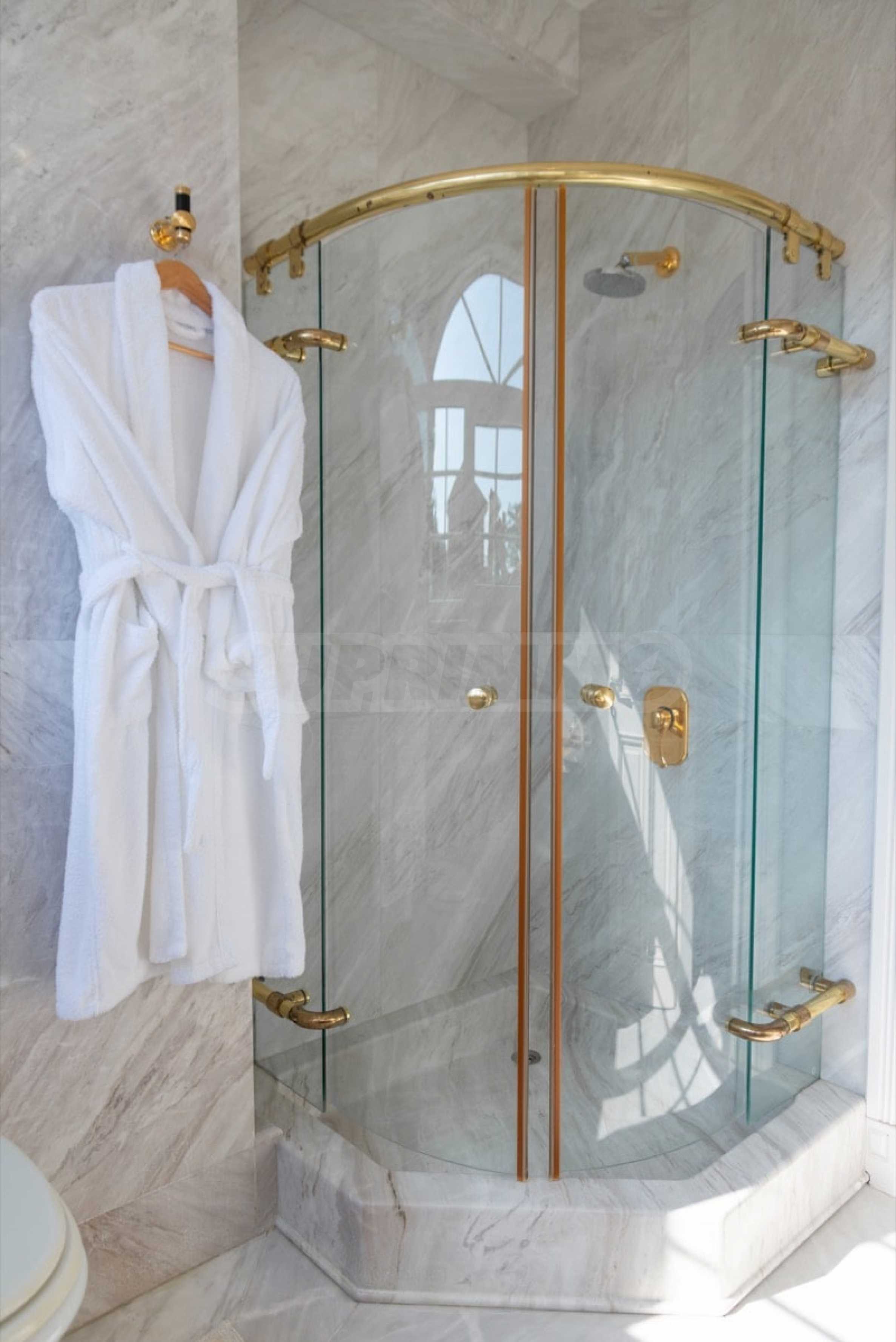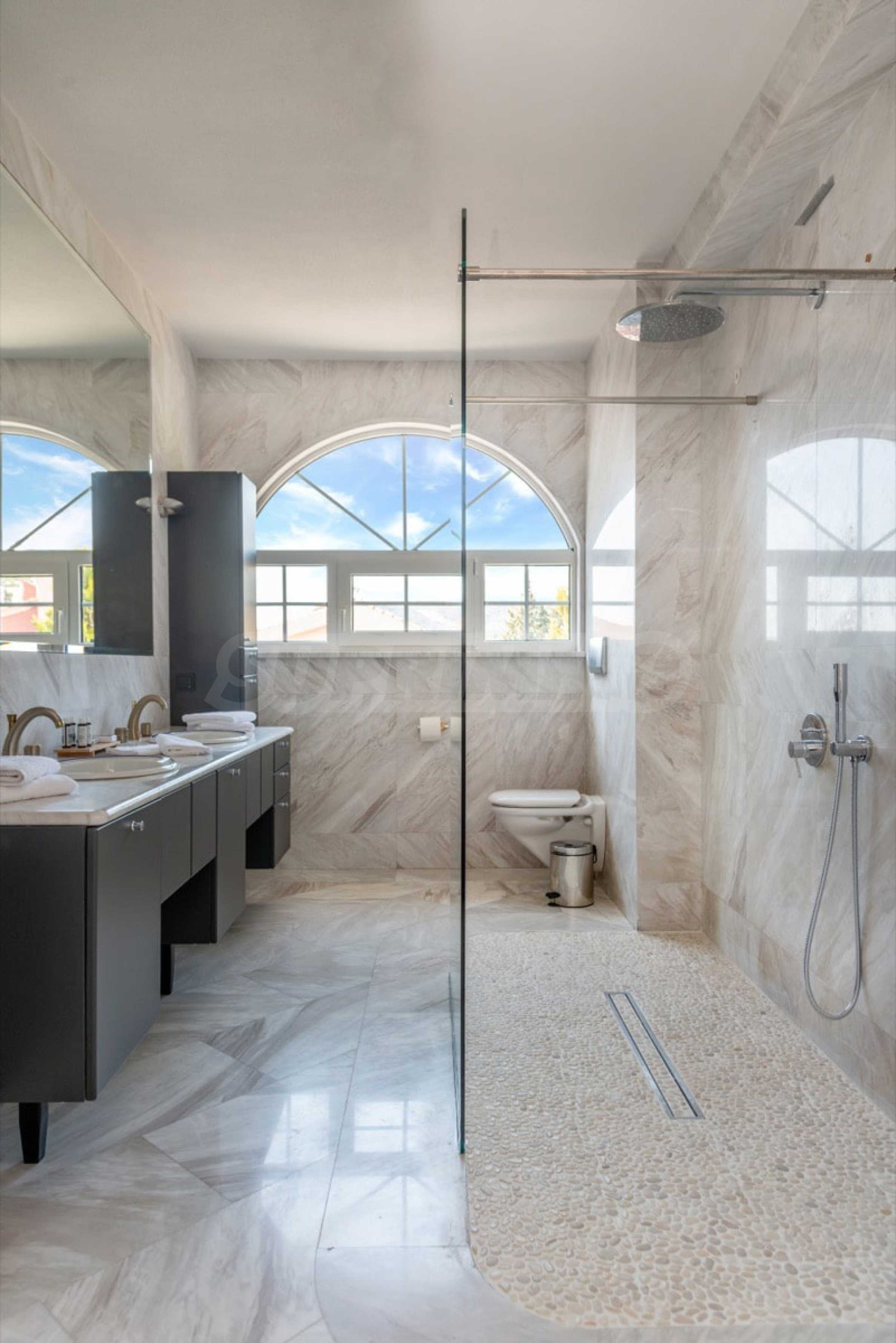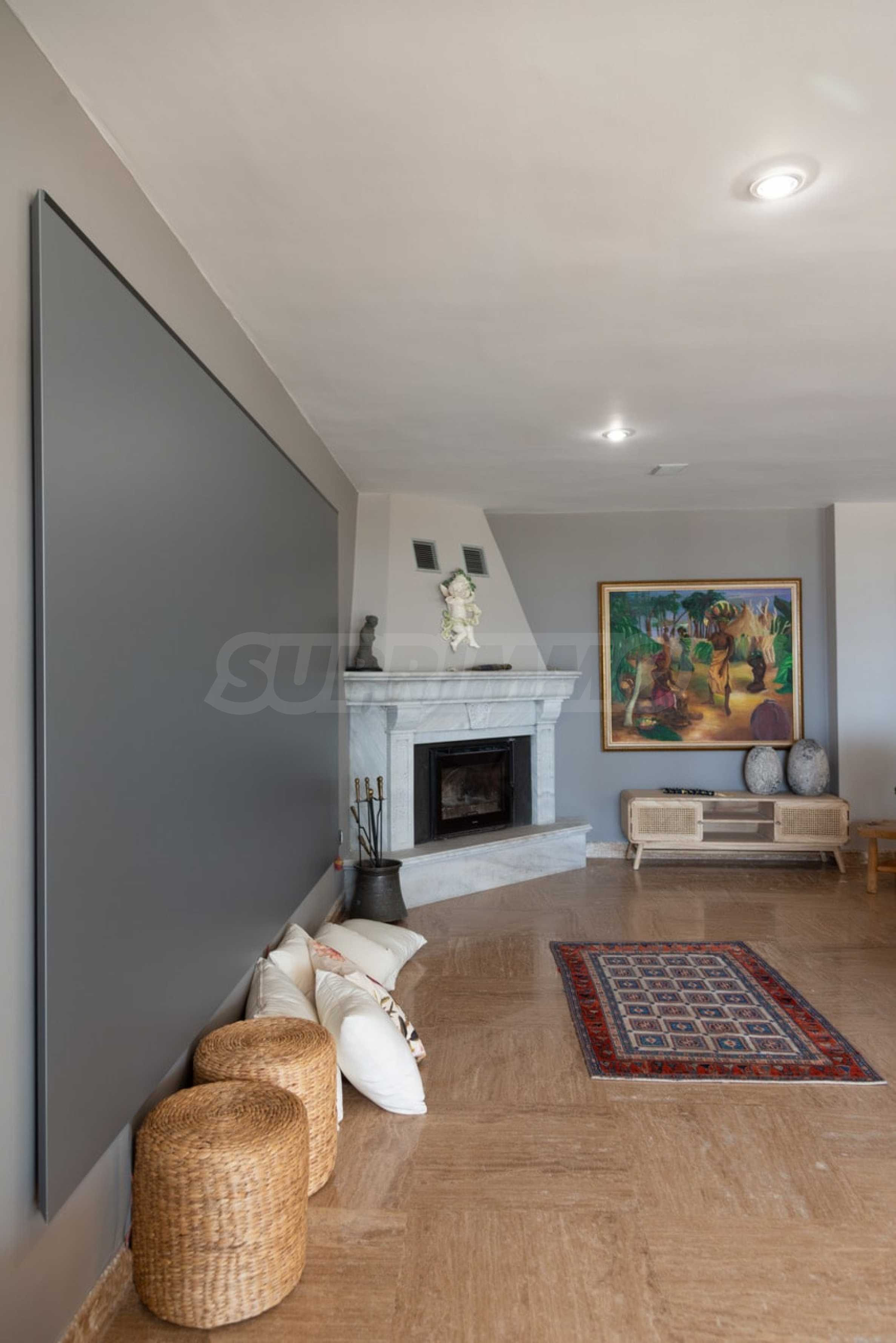 Kommen Sie und genießen Sie dieses herrliche Anwesen mit 6 Schlafzimmern, 8 Badezimmern, 2 Wohnzimmern und 2 voll ausgestatteten Küchen sowie einem Spielzimmer im Souterrain. Fünf der Schlafzimmer verfügen über ein eigenes Bad sowie einen Ruhebereich im Freien, eine Terrasse oder Veranda. Im perfekt gepflegten Garten mit verschiedenen Baumarten, Palmen, Pinien, Oliven, Orangen und Zitronen finden Sie einen Swimmingpool, eine Sommerküche mit Pizzaofen und Grill, ein Esszimmer und unzählige Ecken, die zum Genießen einladen die atemberaubende Aussicht auf das Ägäische Meer.