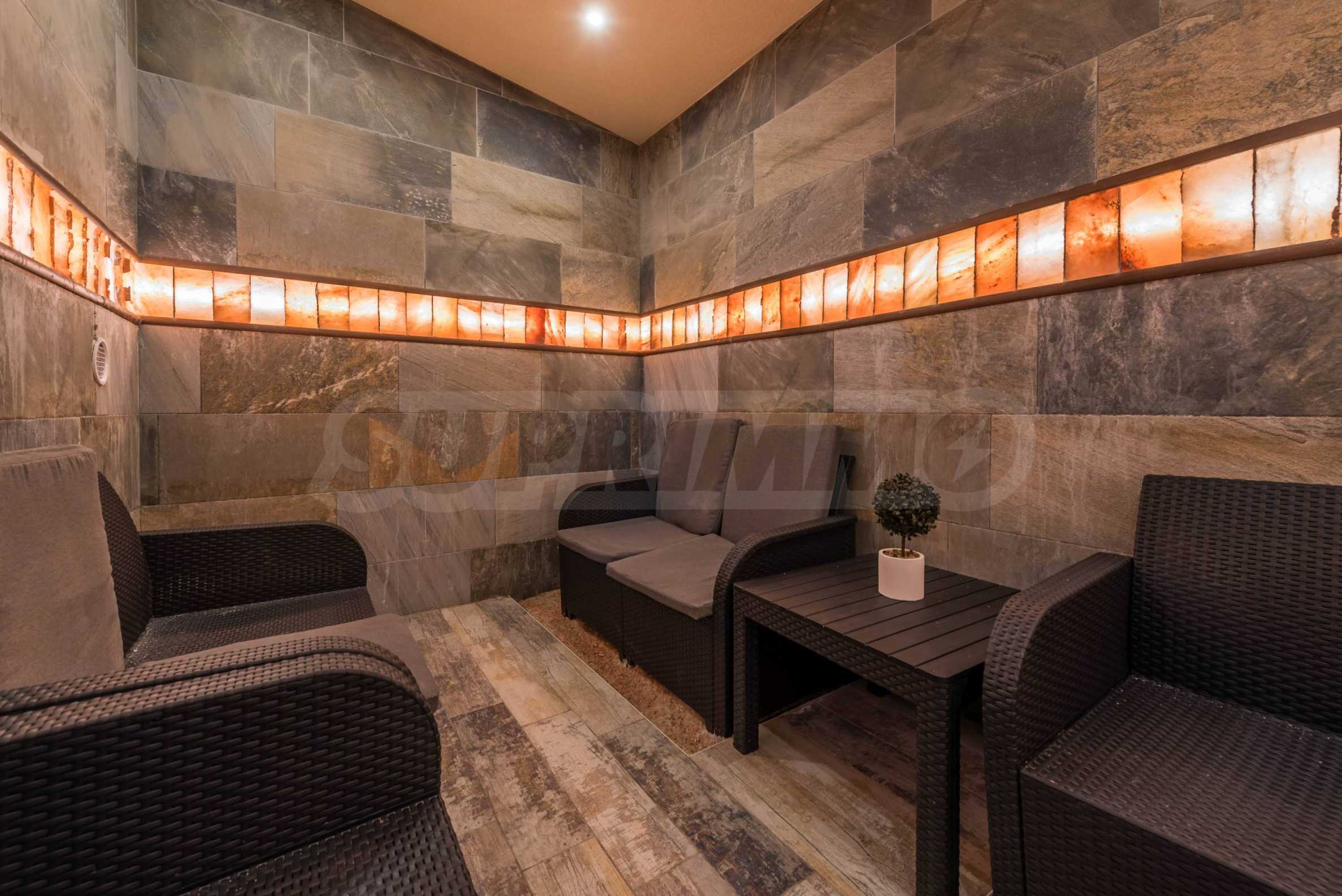 Das Gebäude verfügt über einen eigenen Parkplatz, einen Aufzug, einen Gepäckaufbewahrungsraum, ein Restaurant mit 90 Sitzplätzen, eine Lobbybar, einen Außenpool, einen Wellnessbereich mit Sauna, Whirlpool, Dampfbad, Salzraum und Ruhebereich.